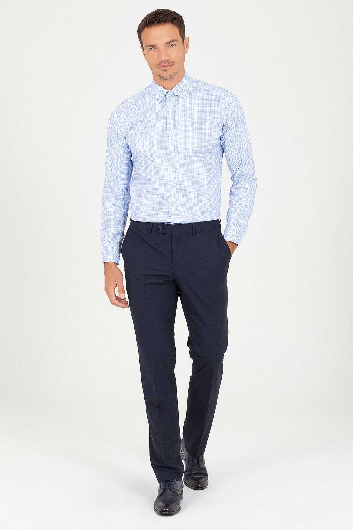 Mavi Slim Fit Kareli 100% Pamuk Uzun Kol Spor Gömlek