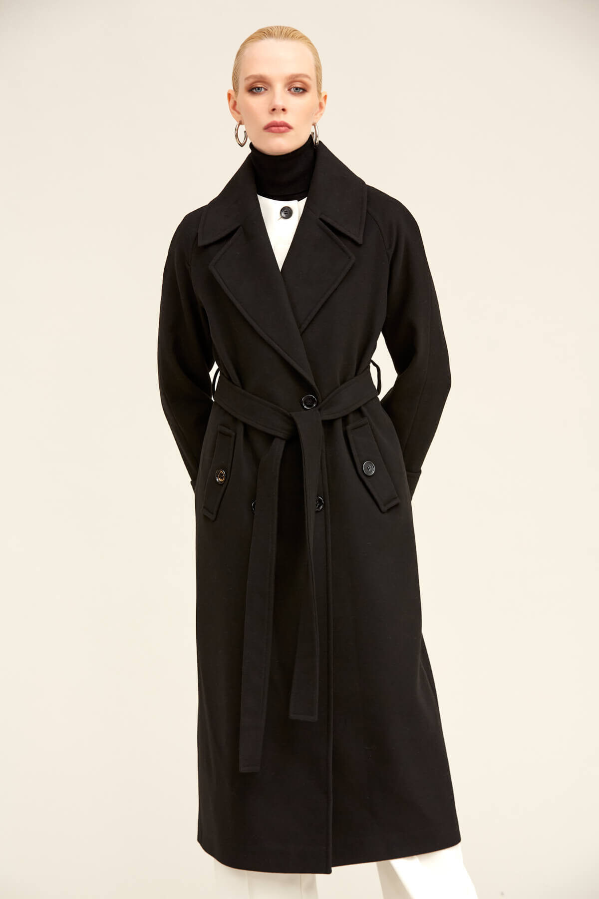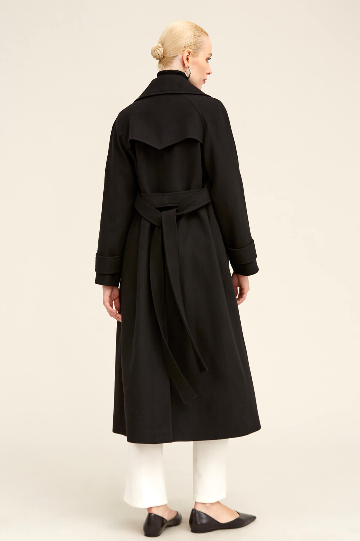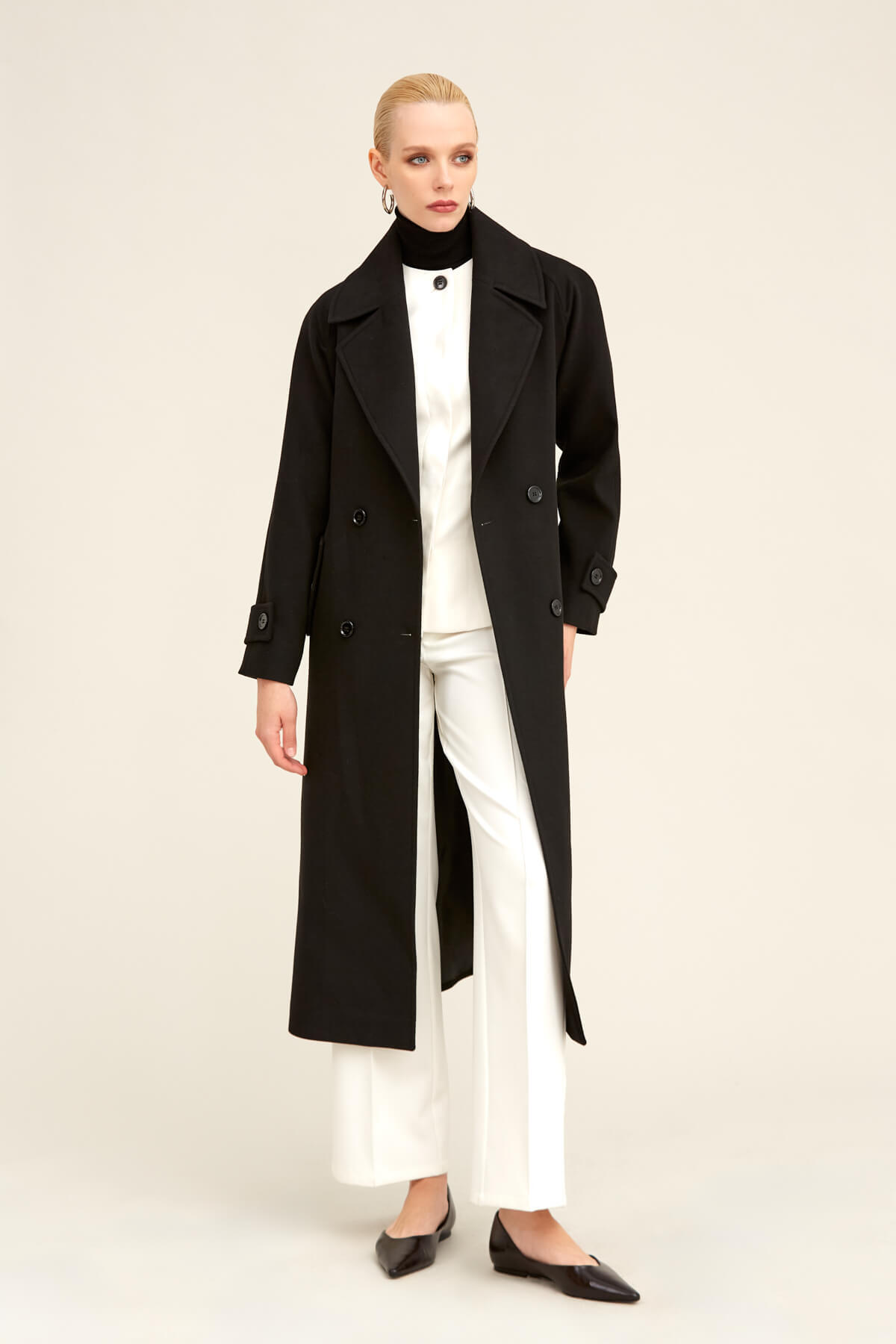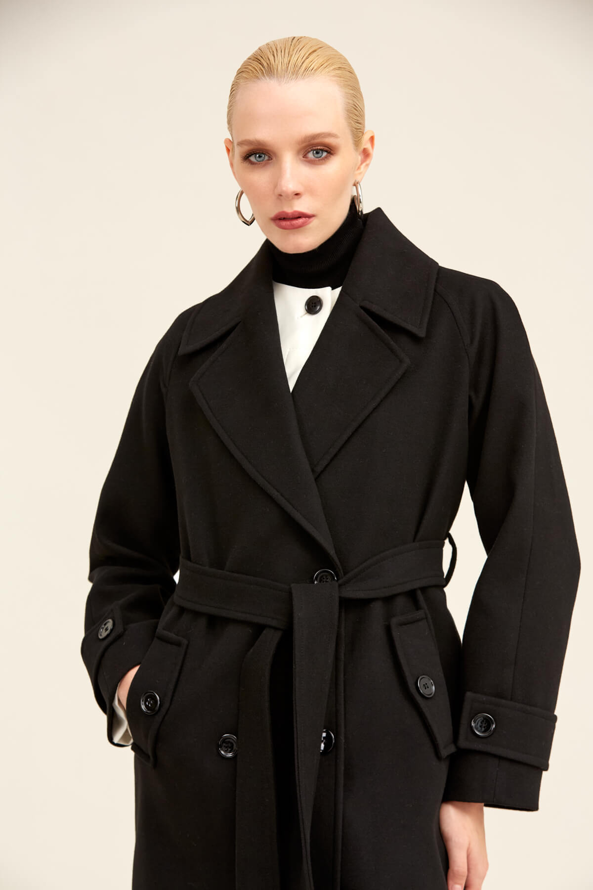 Saykı Woman Siyah Dinamik Fit Ceket Yaka Kaşe Yünlü Manto - 26