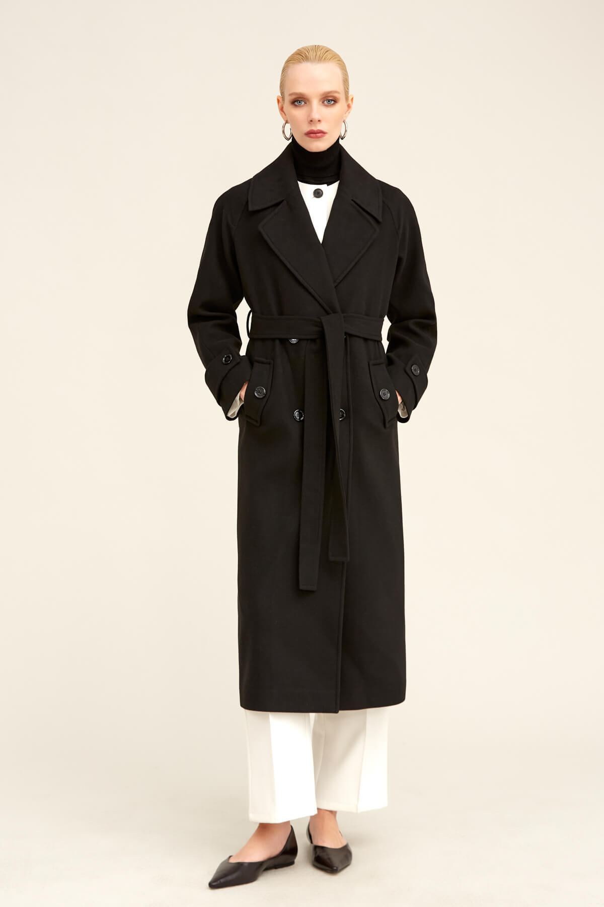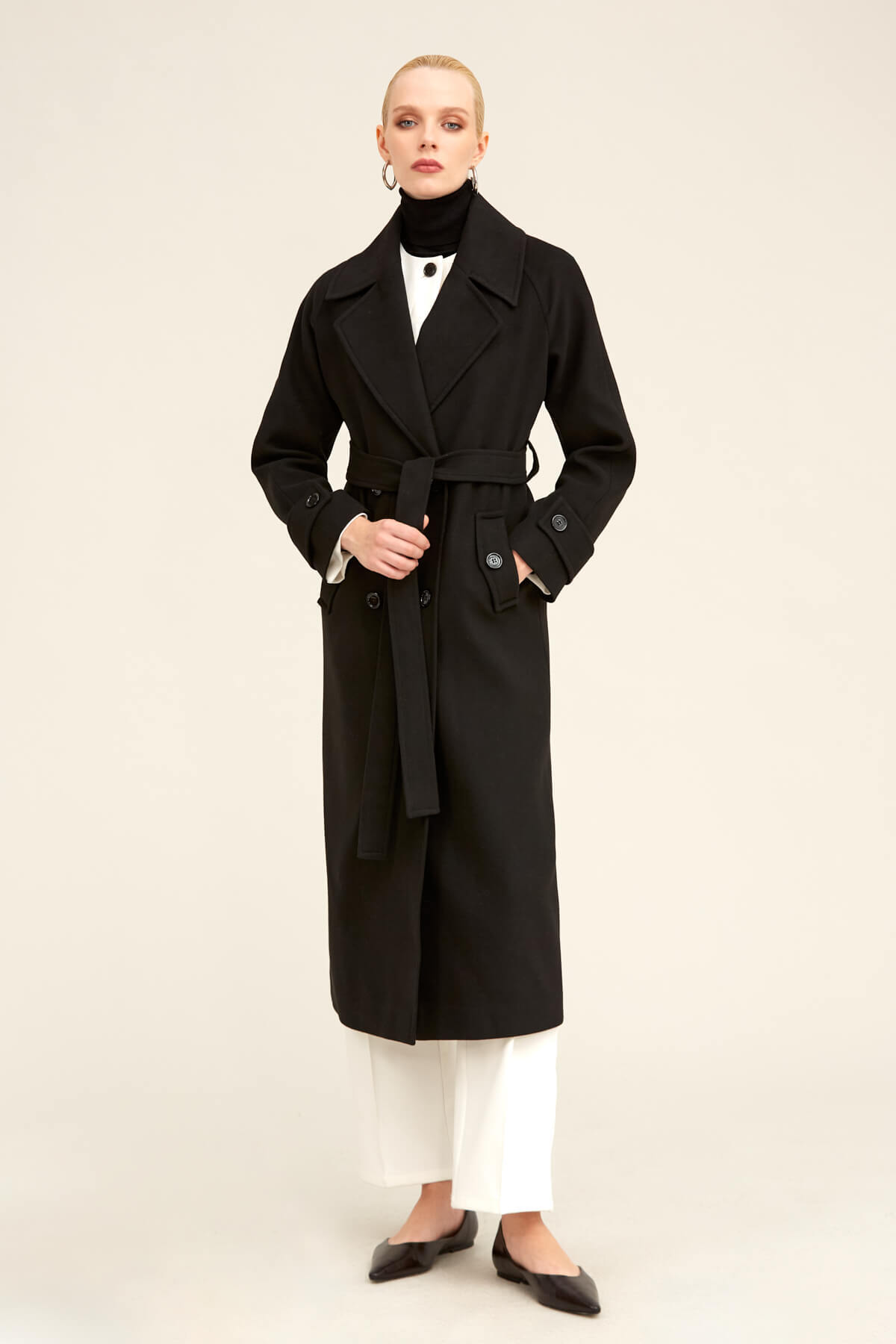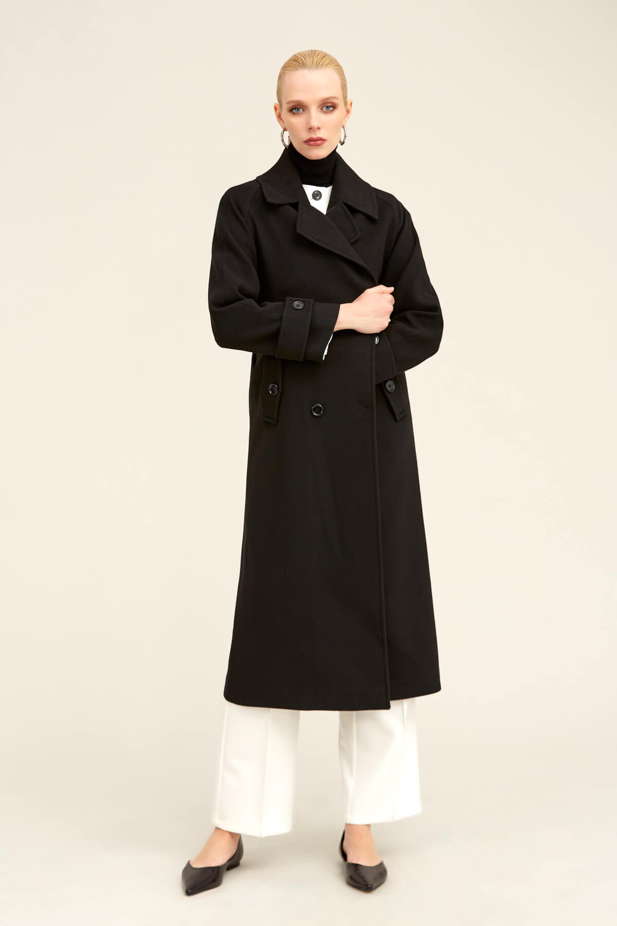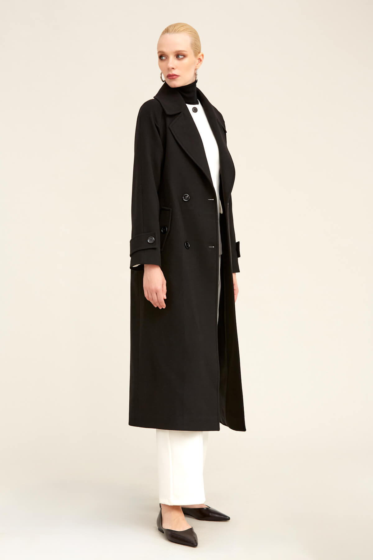Saykı Woman Siyah Dinamik Fit Ceket Yaka Kaşe Yünlü Manto - 26