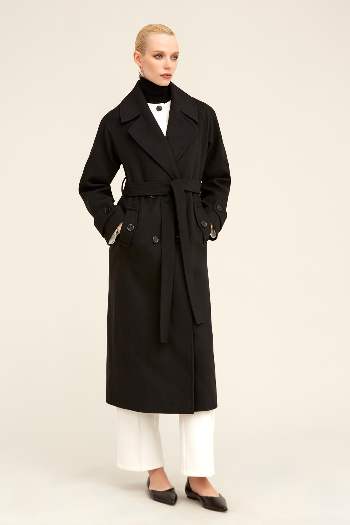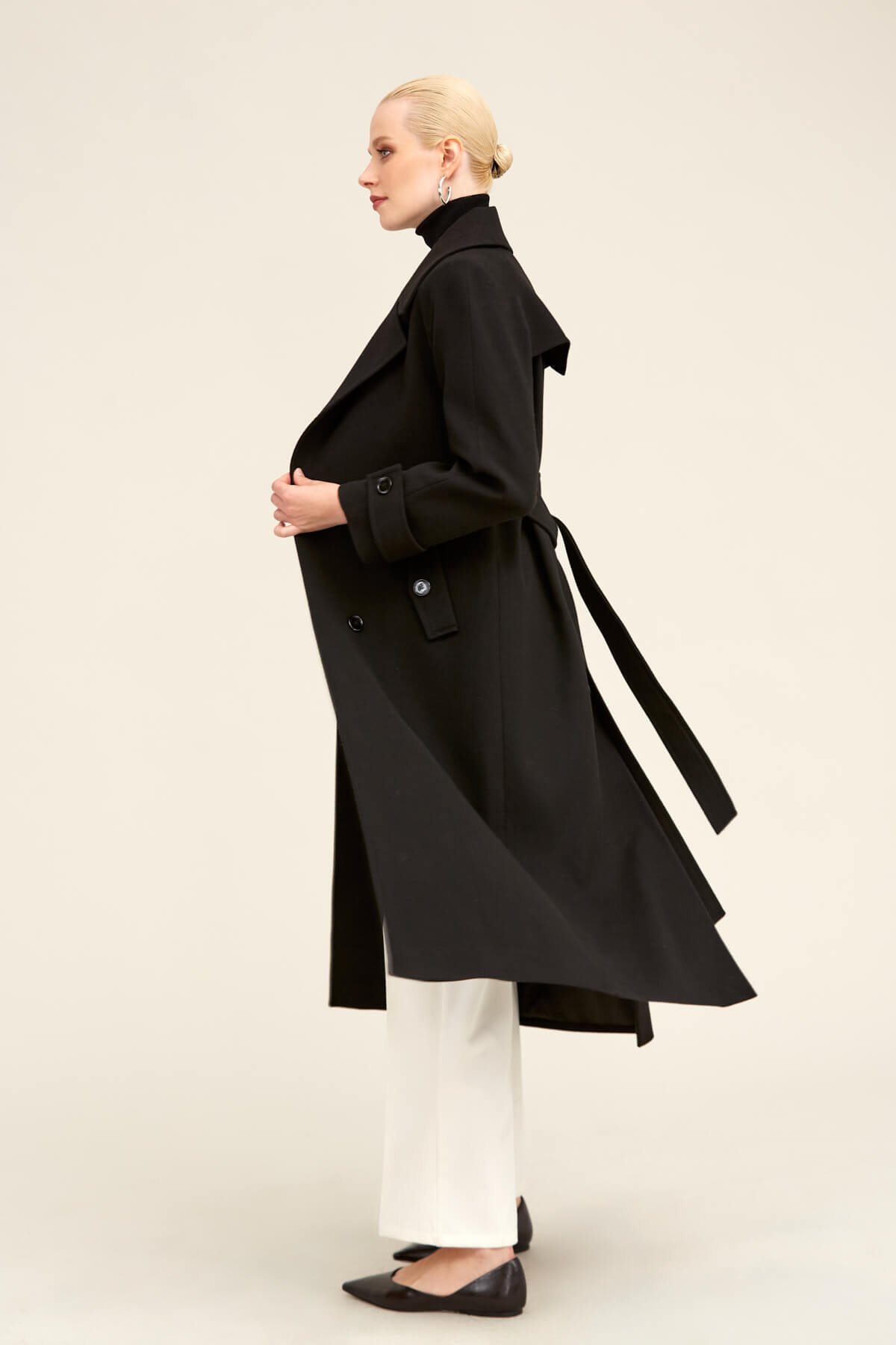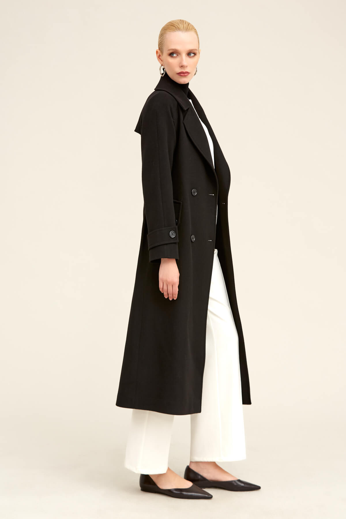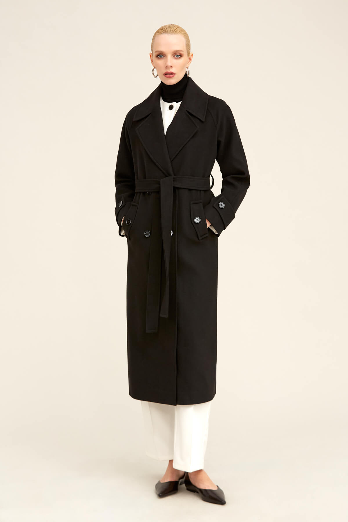 Saykı Woman Siyah Dinamik Fit Ceket Yaka Kaşe Yünlü Manto - 26