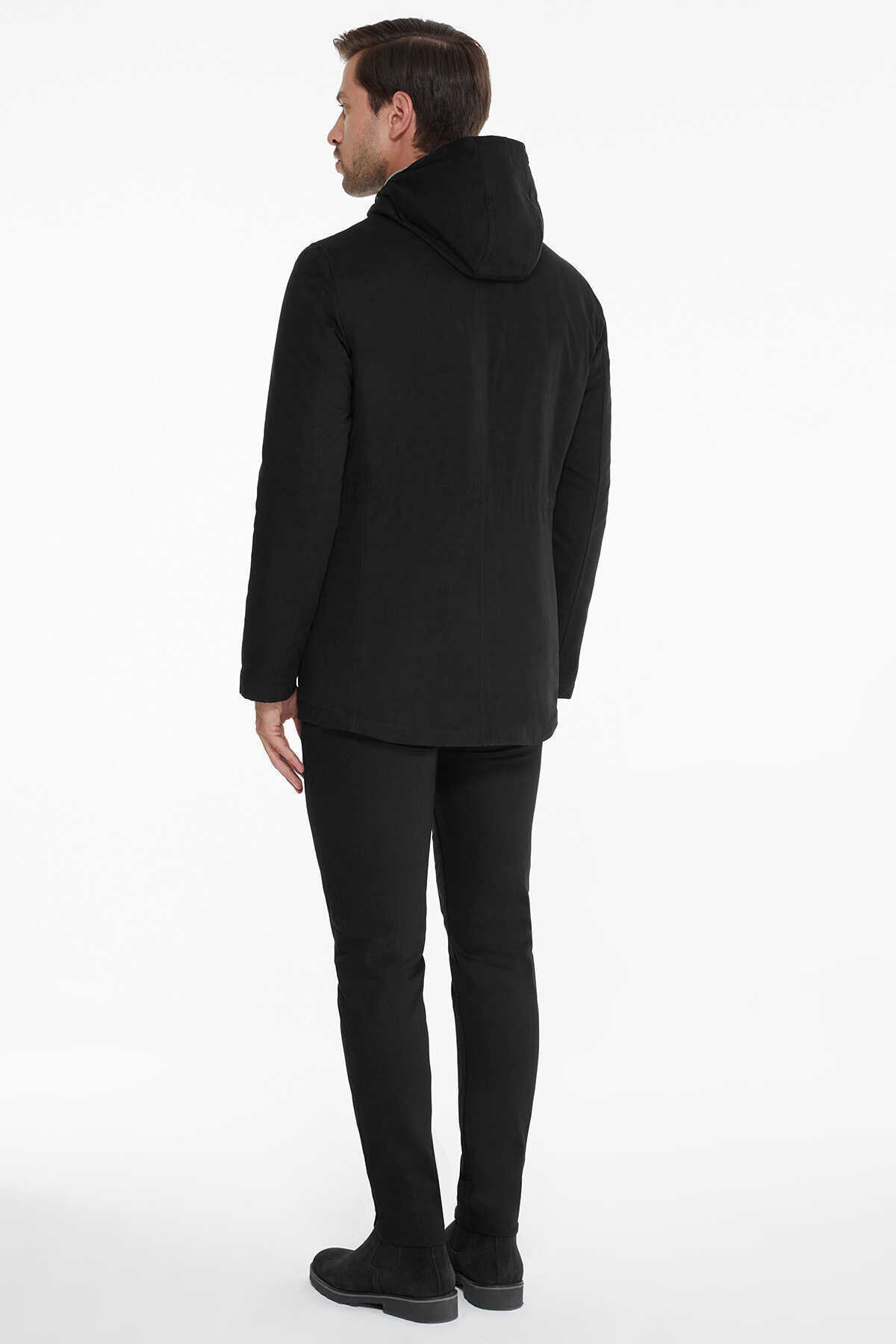 Siyah Boeno Kapüşonlu Hakim Yaka Kaban