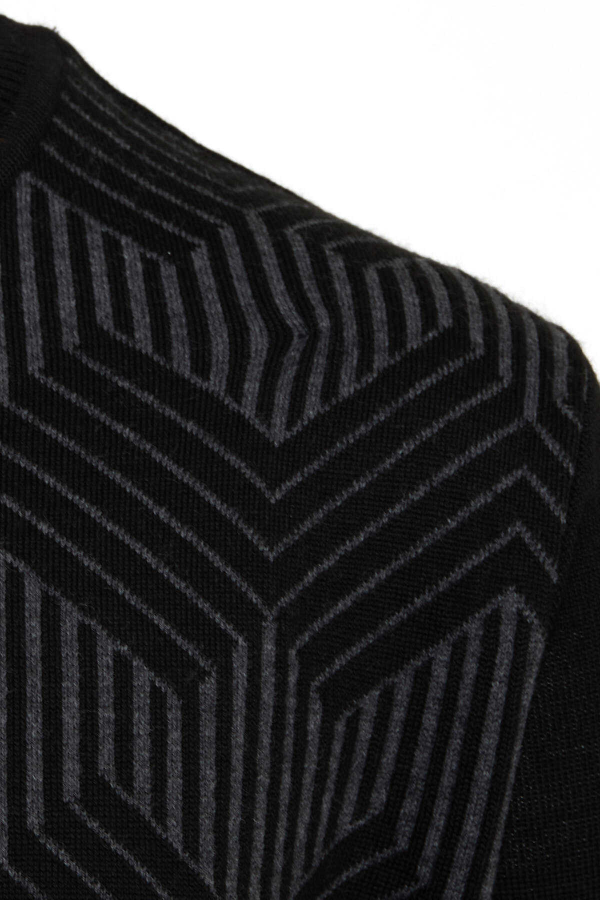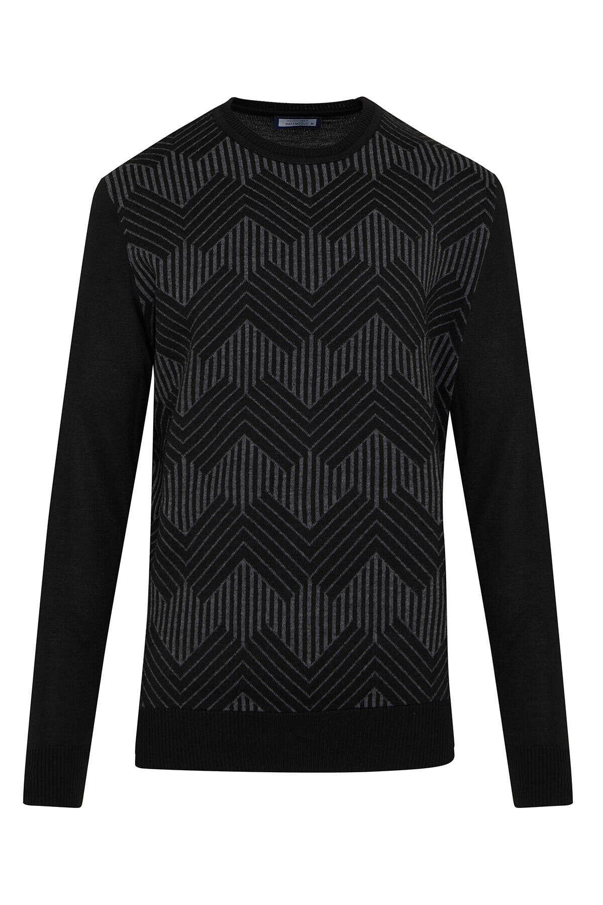 Siyah Regular Fit Desenli Bisiklet Yaka Yünlü Kazak
