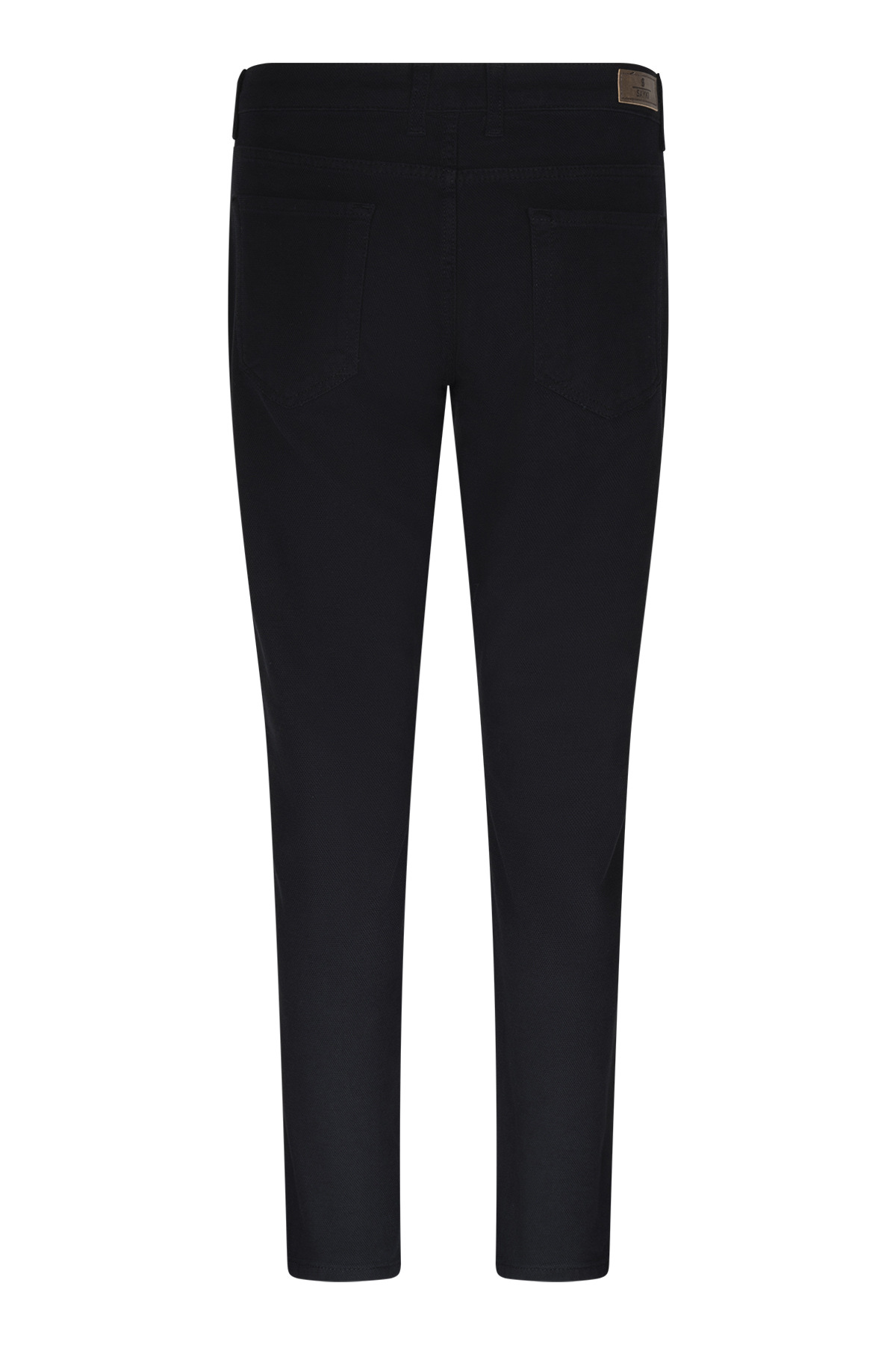 Siyah Rahat Kesim 5 Cep Pamuklu Kanvas Pantolon, şıklığı ve günlük konforu birleştiren modern bir parçadır. %83 pamuk, %15 polyester ve %2 elastan karışımı sayesinde, hem pamuğun doğal yumuşaklığını ve nefes alabilirliğini sunar hem de elastanın esnekliğiyle hareket özgürlüğü sağlar. "Dinamik Fit" kalıbı, vücuda oturan ancak hareketleri kısıtlamayan bir kesim sunar. 5 cep detayı ise, pantolona klasik ve fonksiyonel bir görünüm kazandırır.