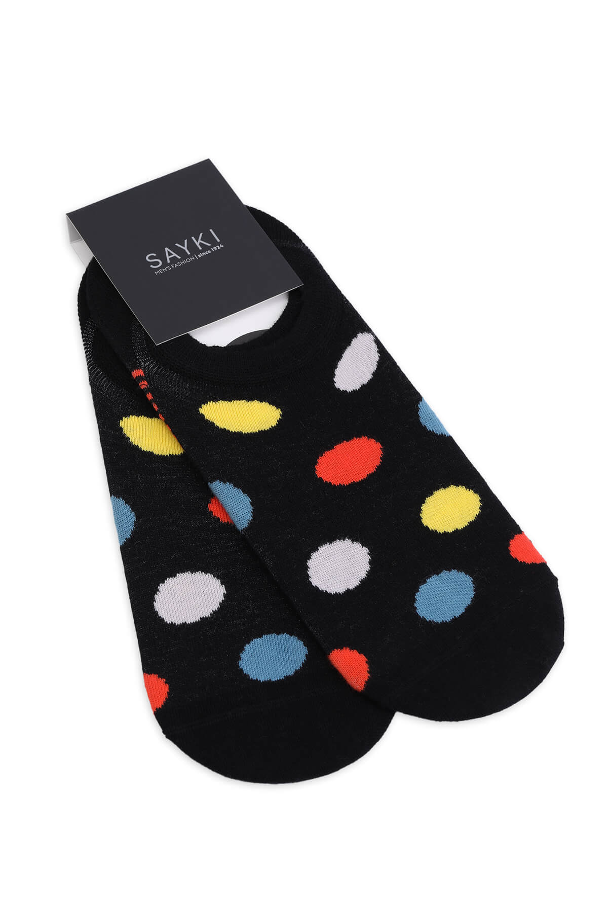 Siyah İkili Puantiyeli Pamuklu Babet Çorap - 1