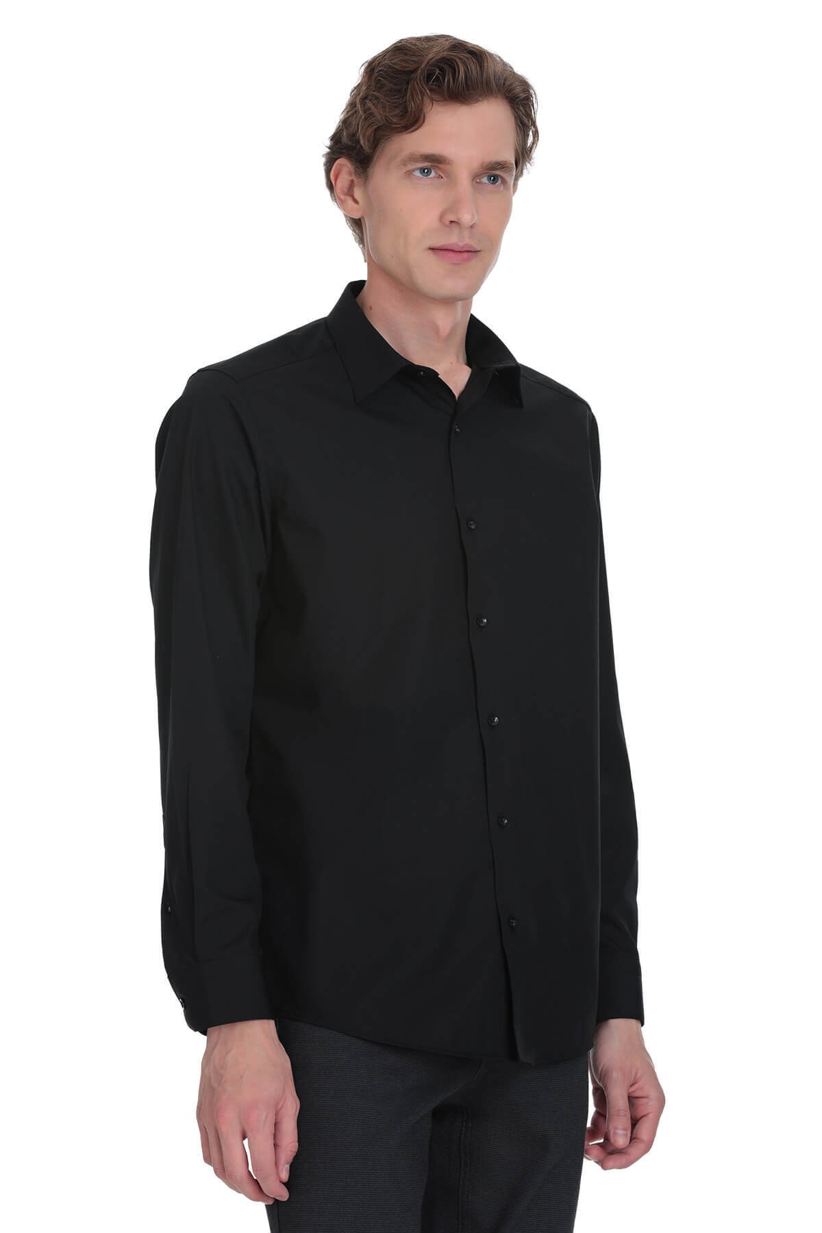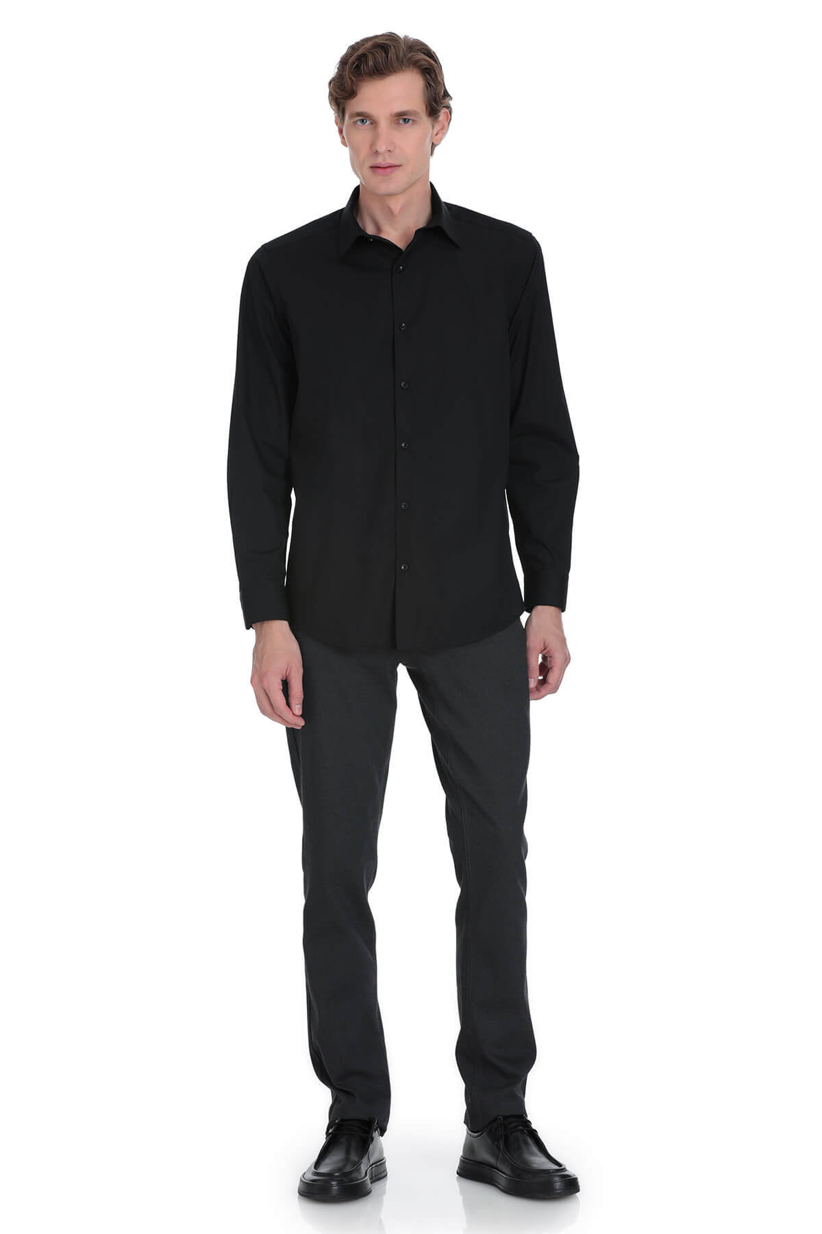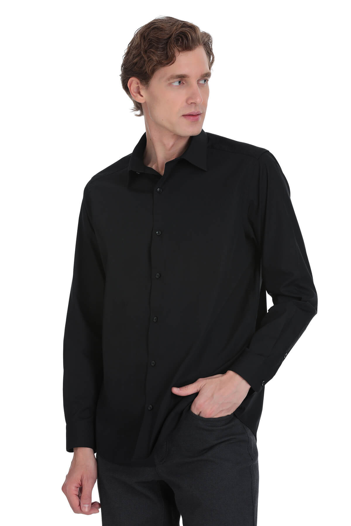 Siyah Klasik Fit Slim Yaka Pamuklu Uzun Kollu Gömlek