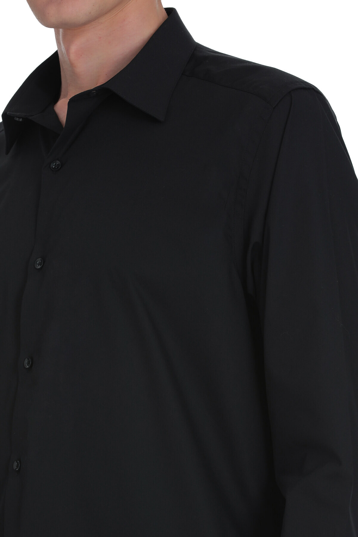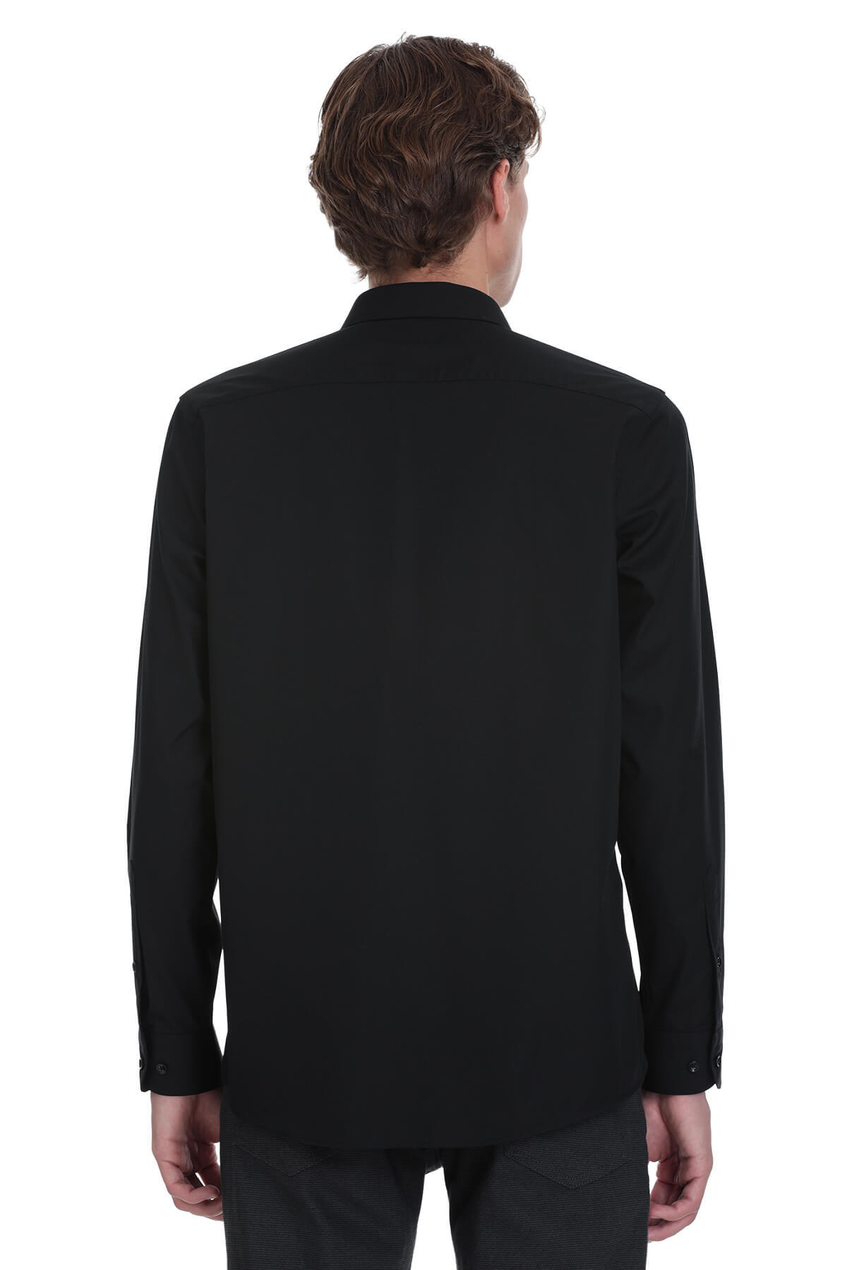 Siyah Klasik Fit Slim Yaka Pamuklu Uzun Kollu Gömlek - 5