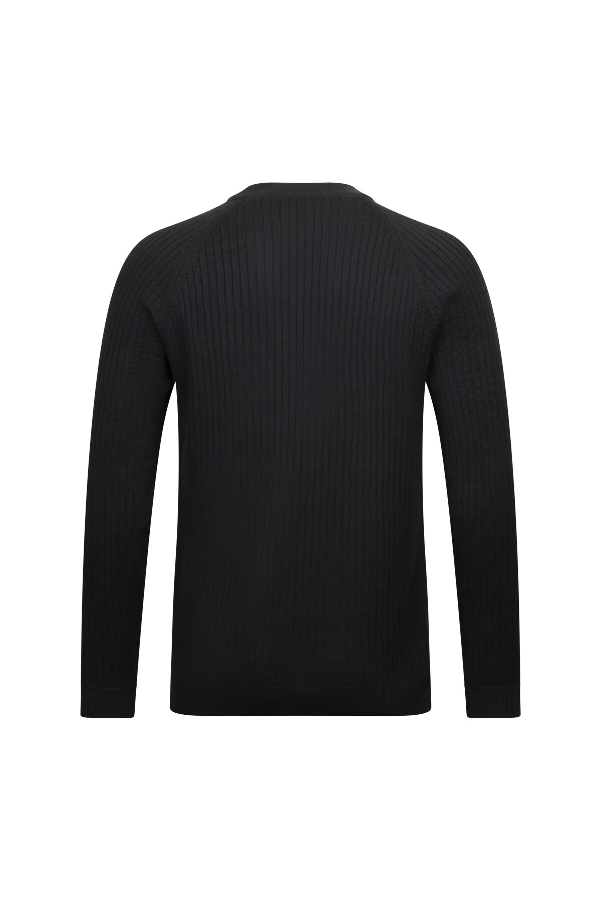 Siyah Regular Fit Fitilli Çeyrek Balıkçı Yaka Pamuklu Triko Kazak