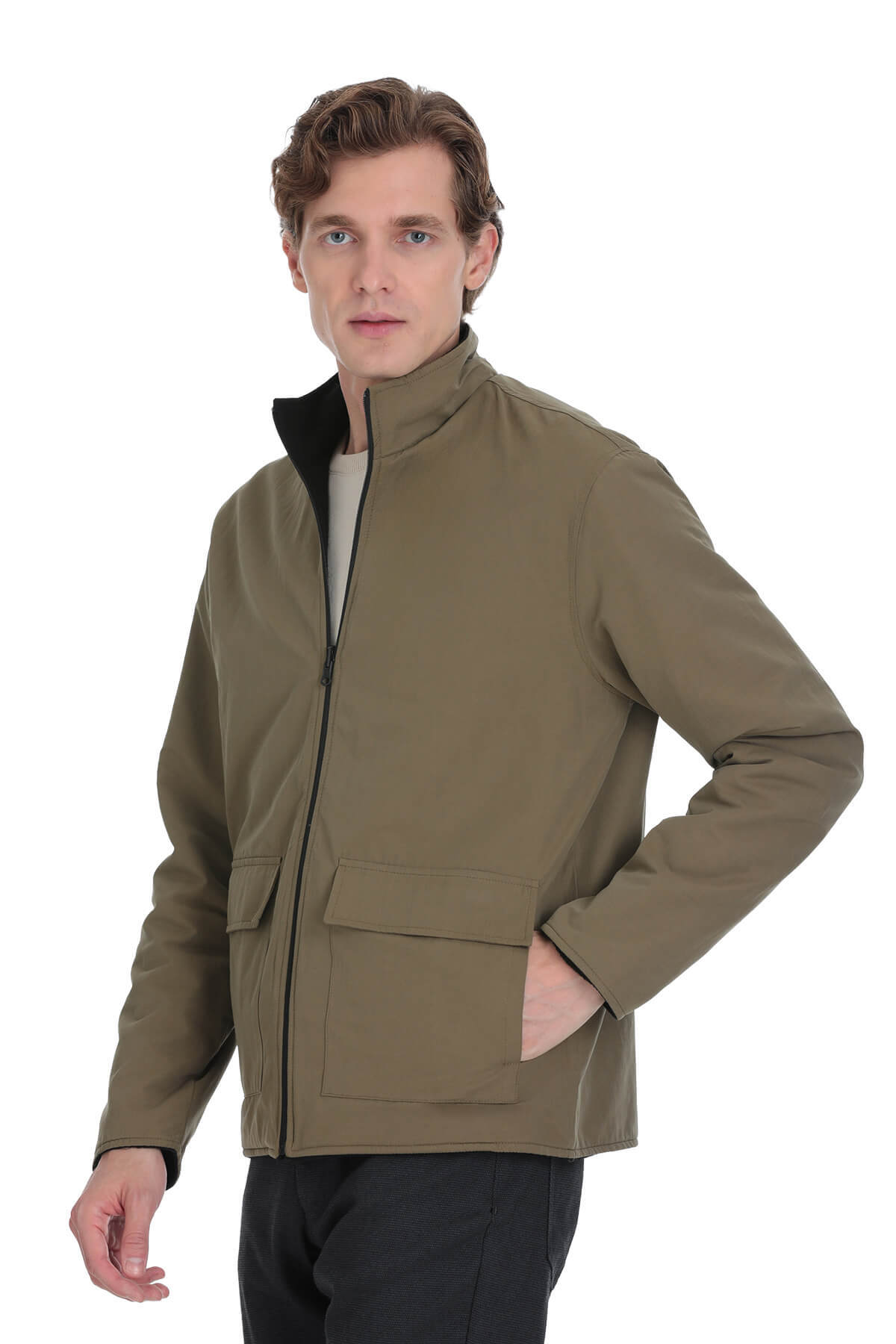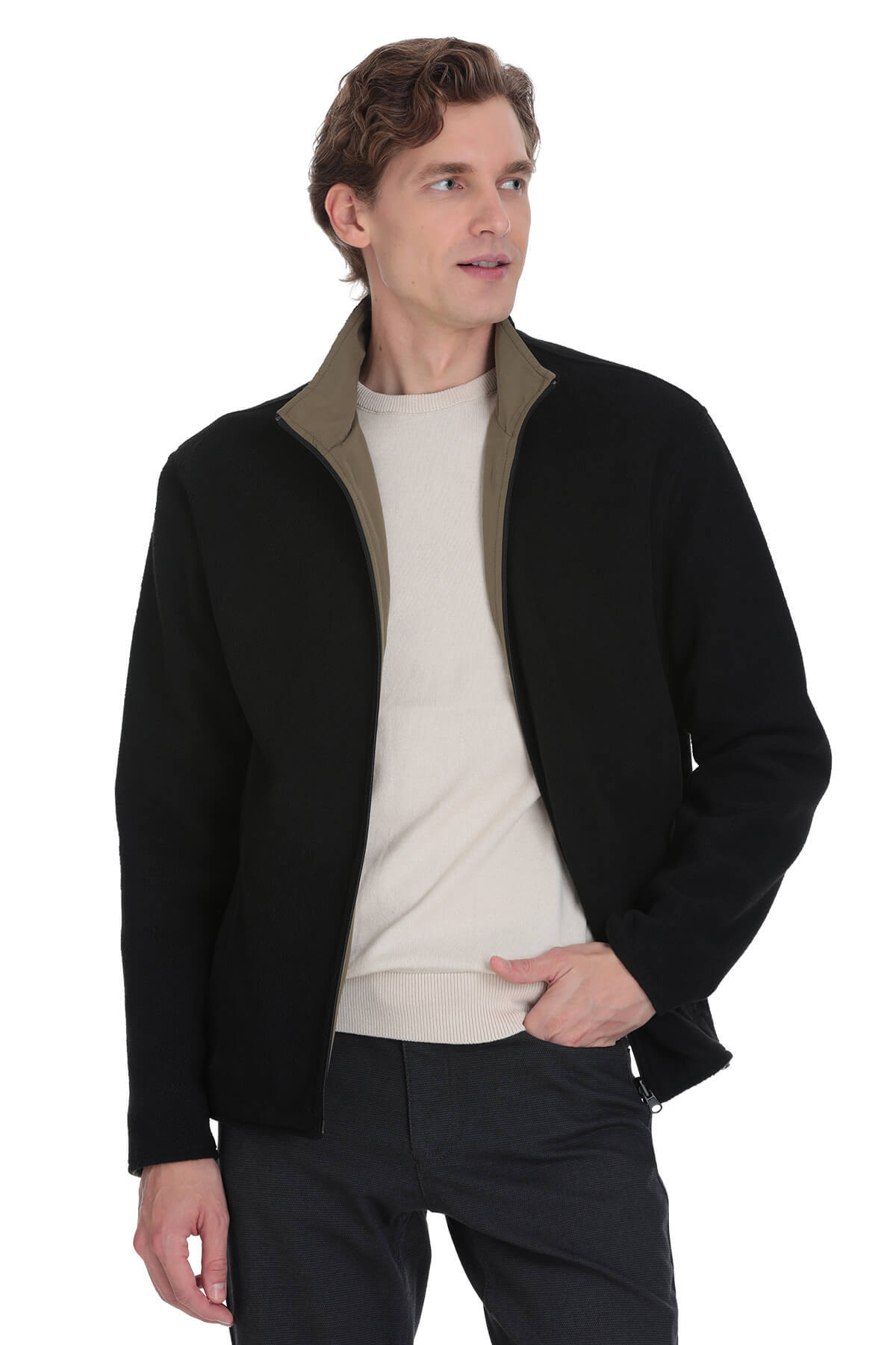 Siyah Regular Fit Yarım Balıkçı Yaka Baharlık Mont