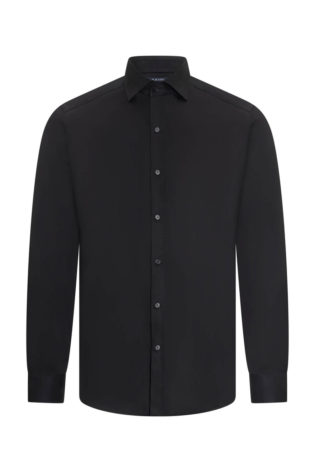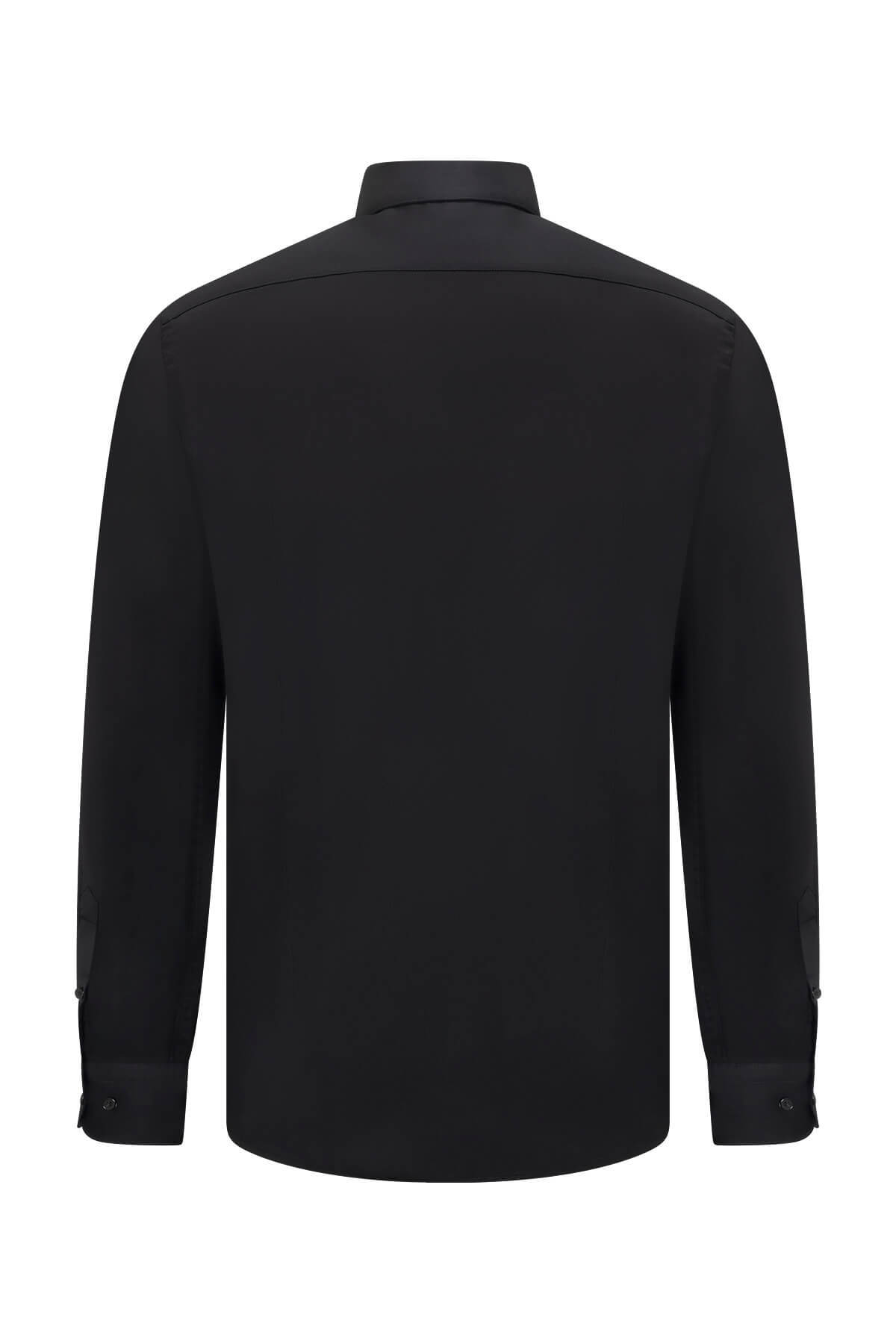 Siyah Slim Fit Açık İtalyan Yaka Gömlek, modern ve zamansız bir tarz sunar. %97 pamuk ve %3 elastan kumaş karışımı sayesinde hem rahat hem de esnek bir kullanım sağlar. Slim Fit kalıbı ve cepsiz tasarımıyla sade ve şık bir görünüm sunar.