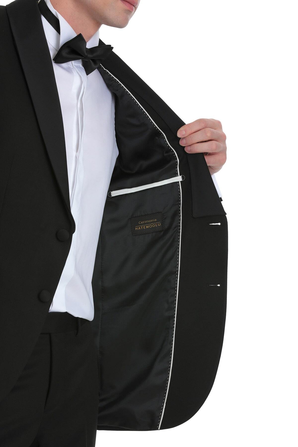 Siyah Slim Fit Çıkma Şal Yaka Klasik Damatlık - 10
