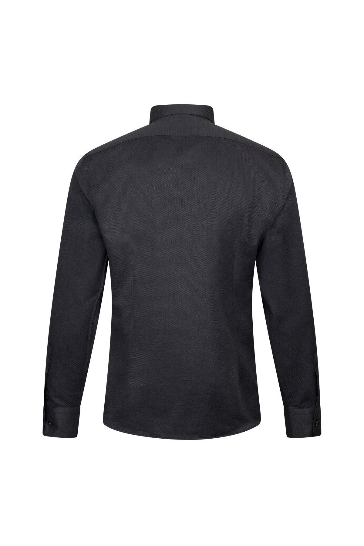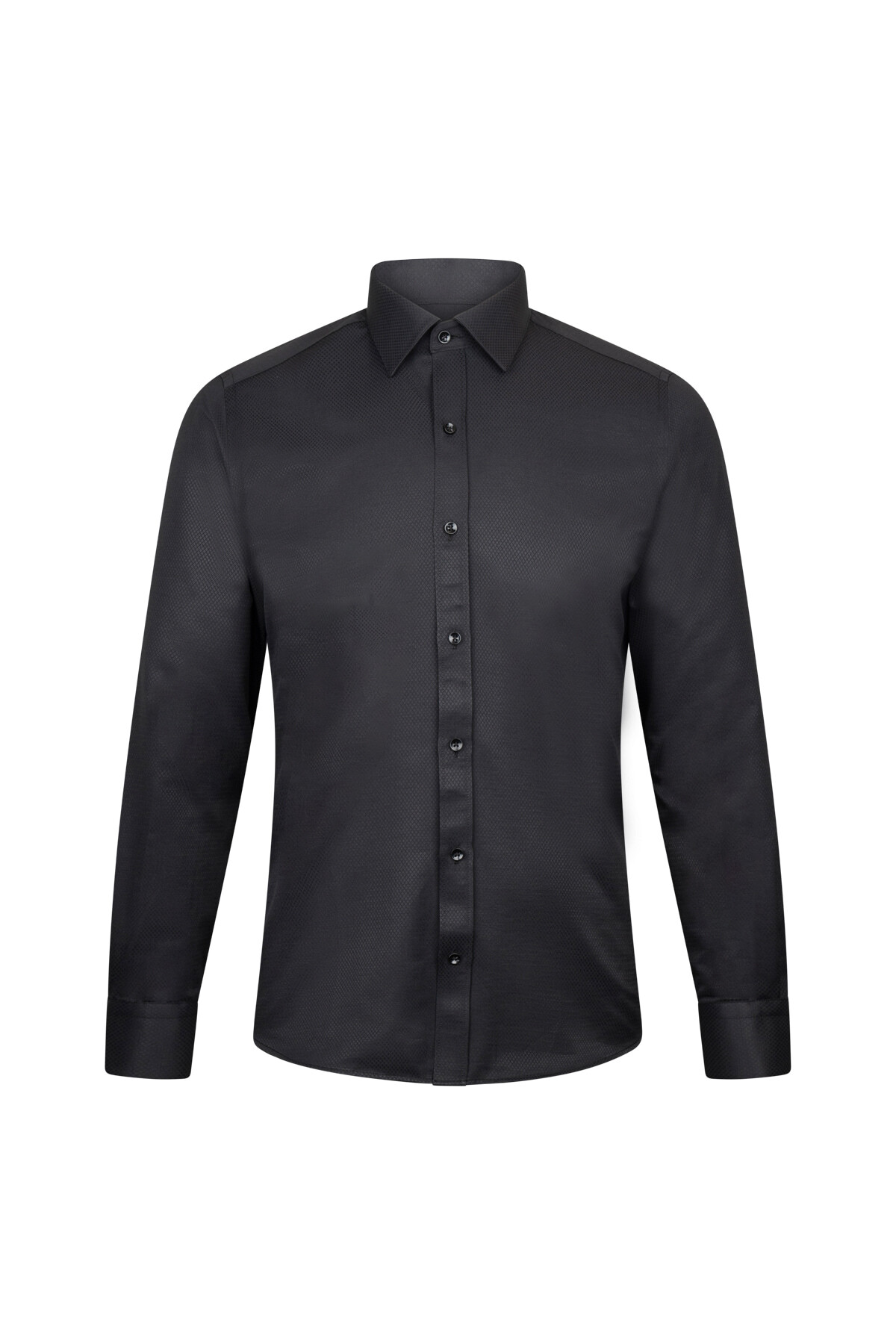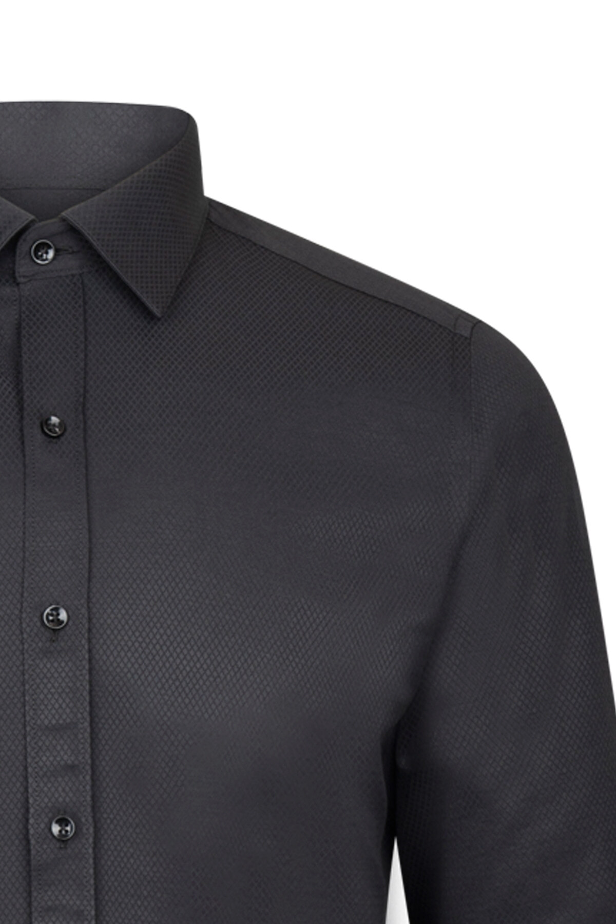 Siyah Slim Fit Slim Yaka Uzun Kollu Pamuklu Gömlek