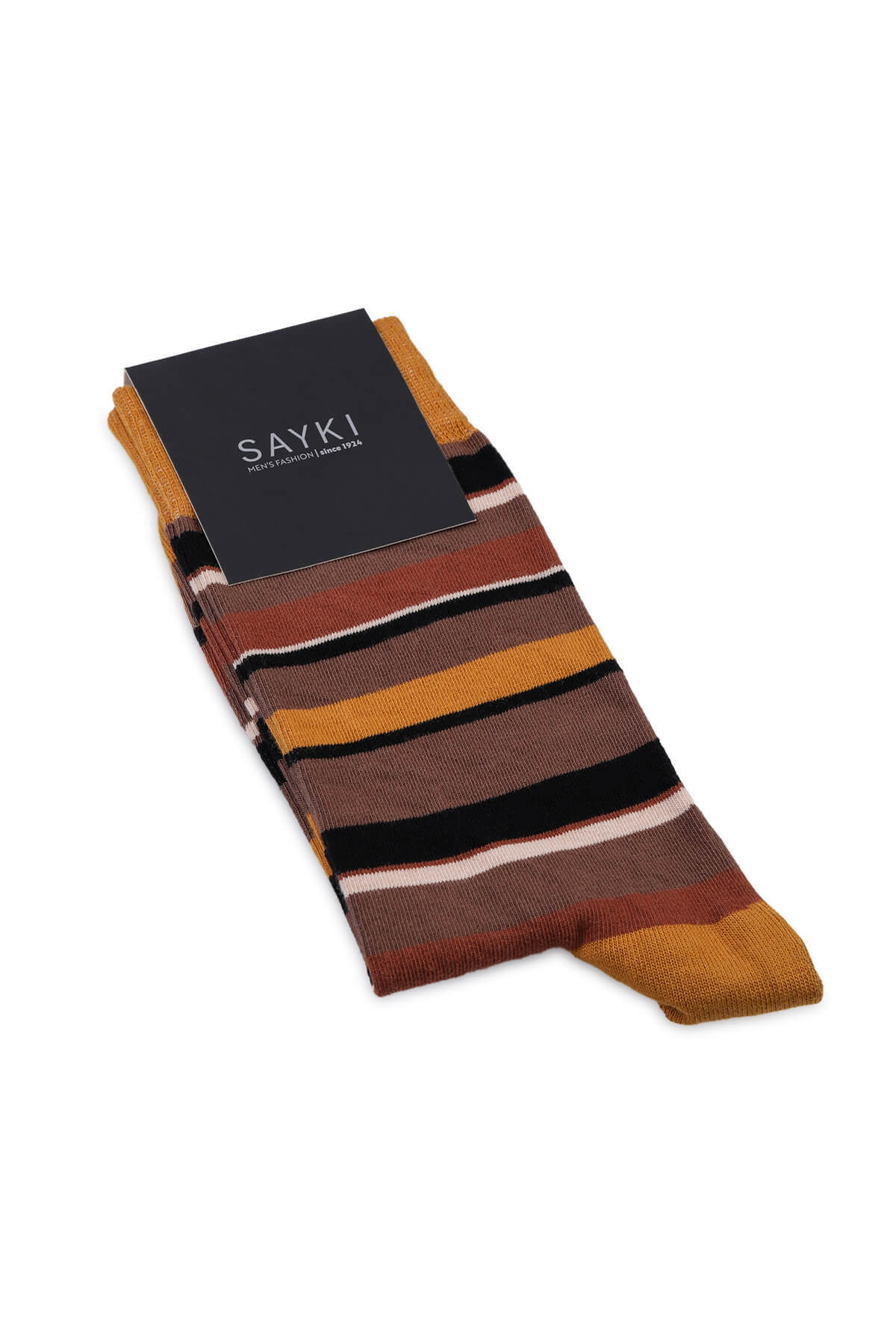 Turuncu Desenli Pamuklu Soket Çorap - 1