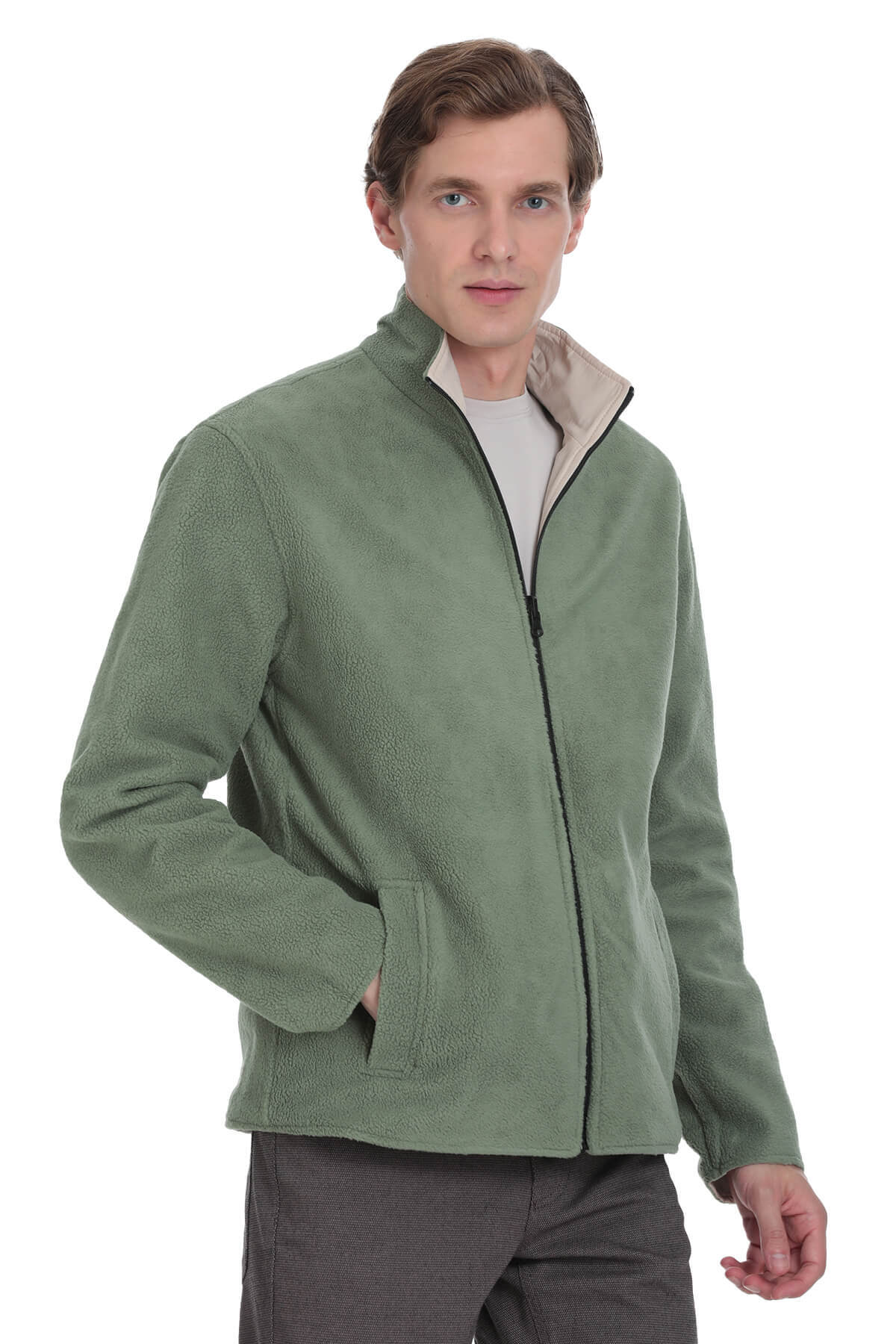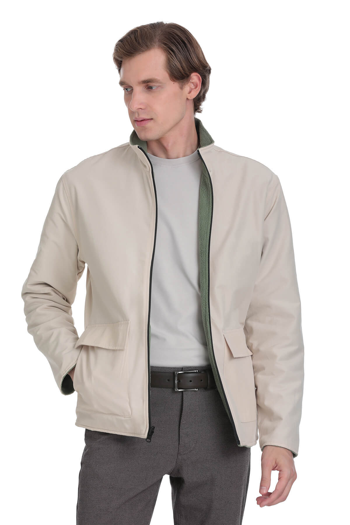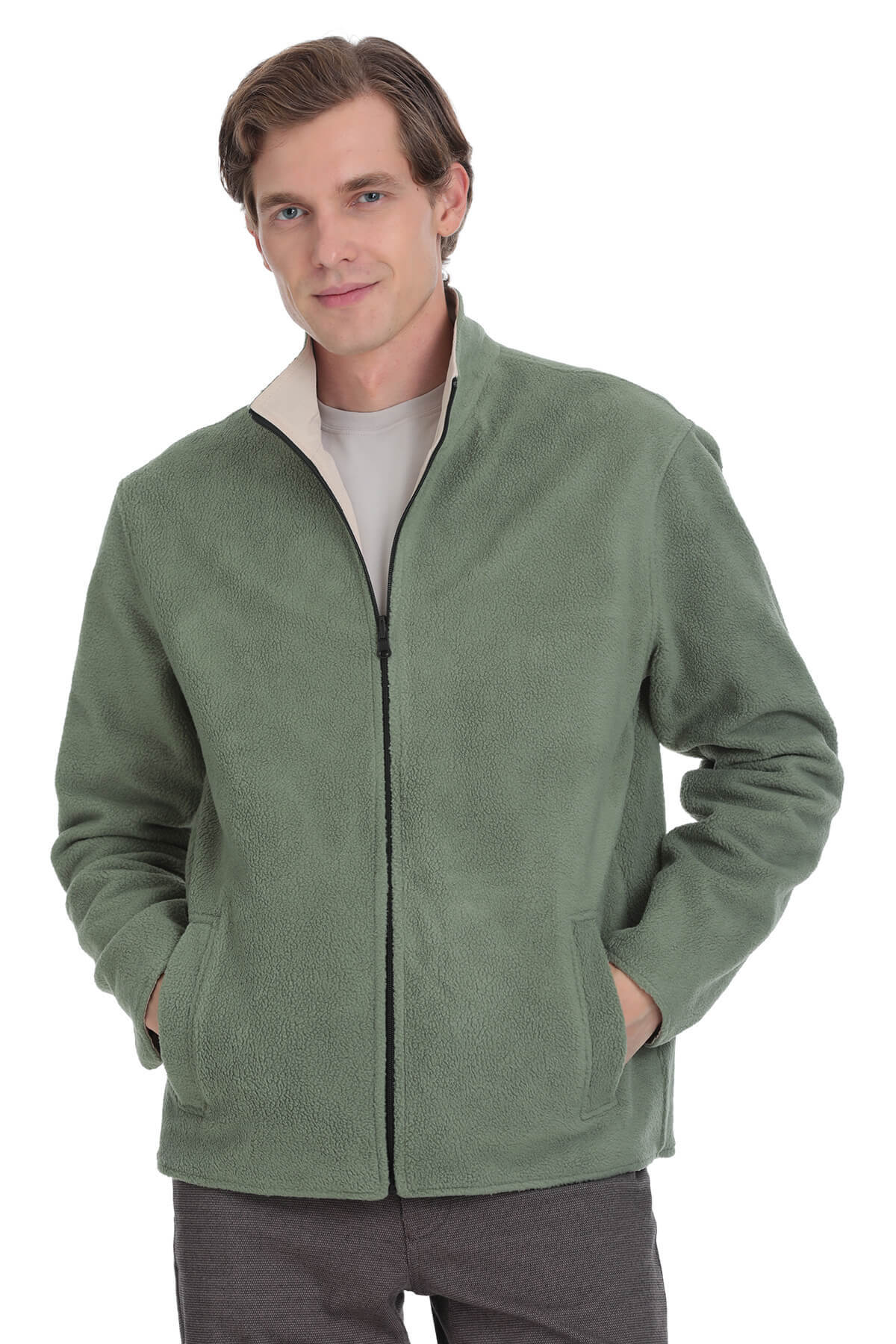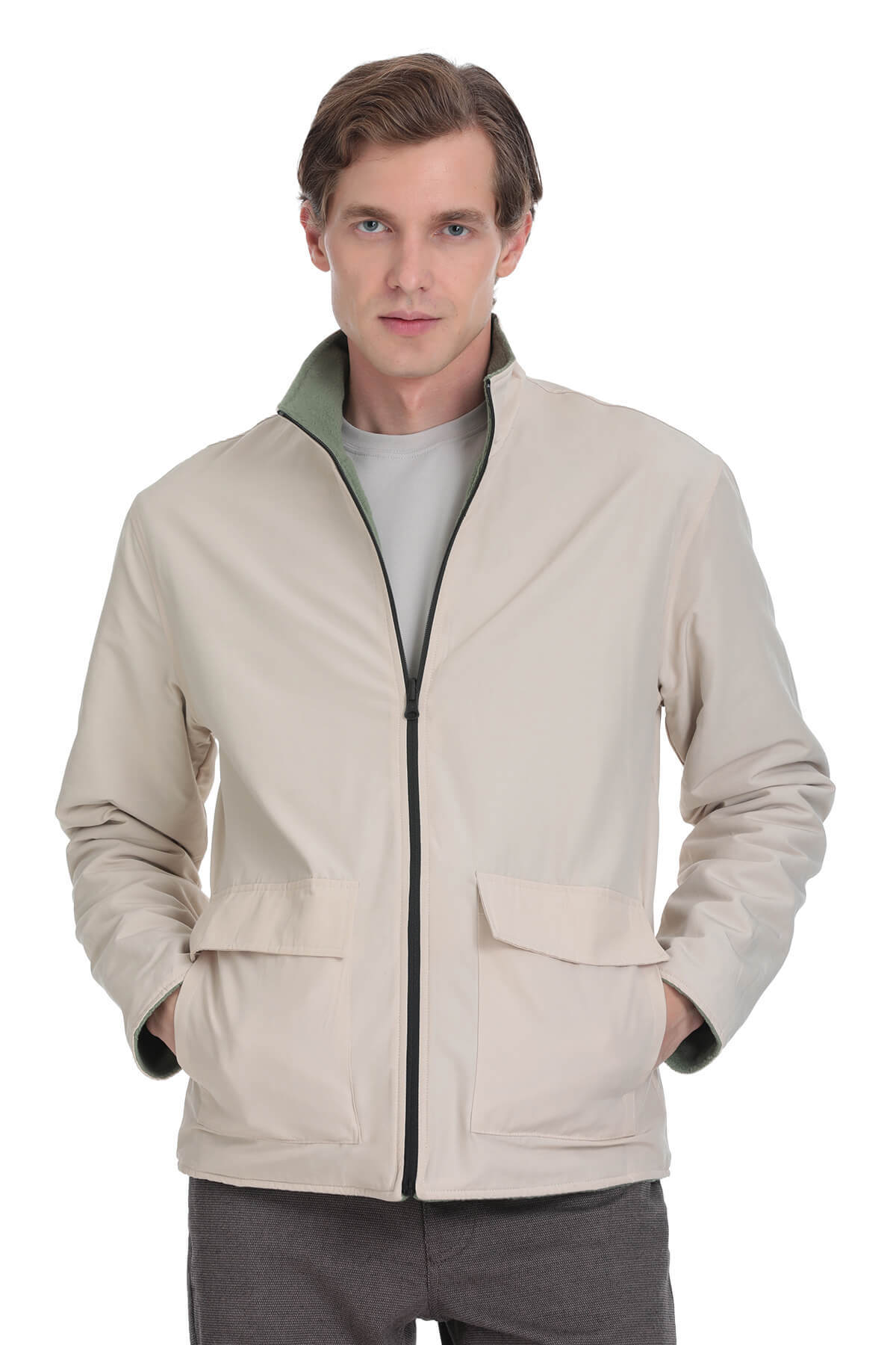 Yeşil Regular Fit Yarım Balıkçı Yaka Baharlık Mont