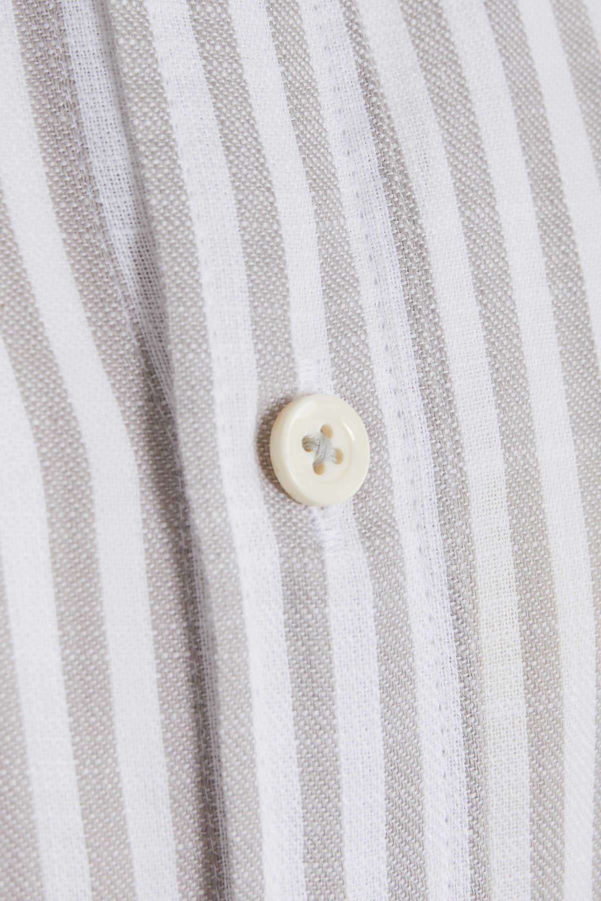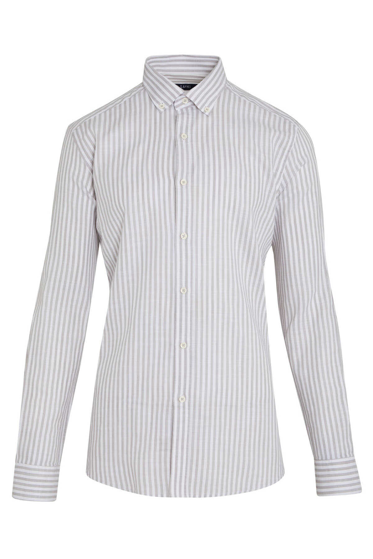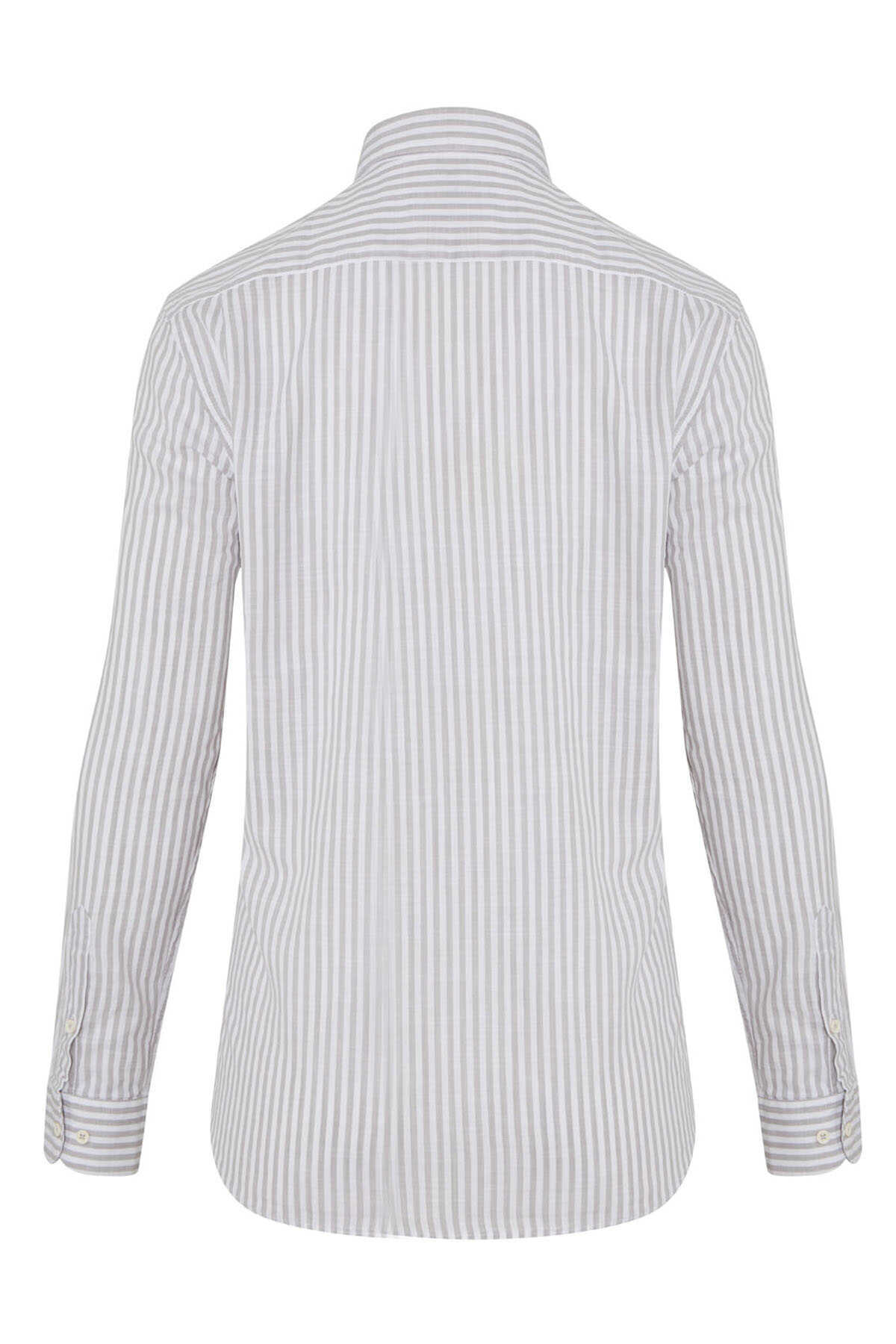 Gri Slim Fit Çizgili 100% Pamuk Uzun Kol Gömlek