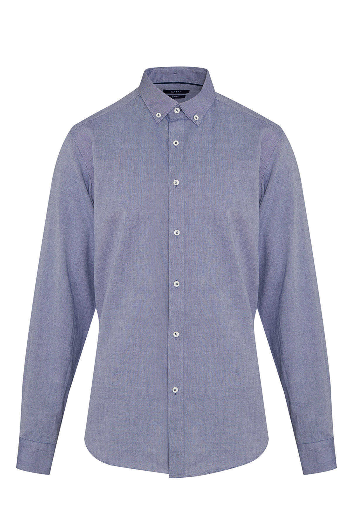 Lacivert Slim Fit 100% Pamuk Düğmeli Yaka Uzun Kollu Casual Gömlek