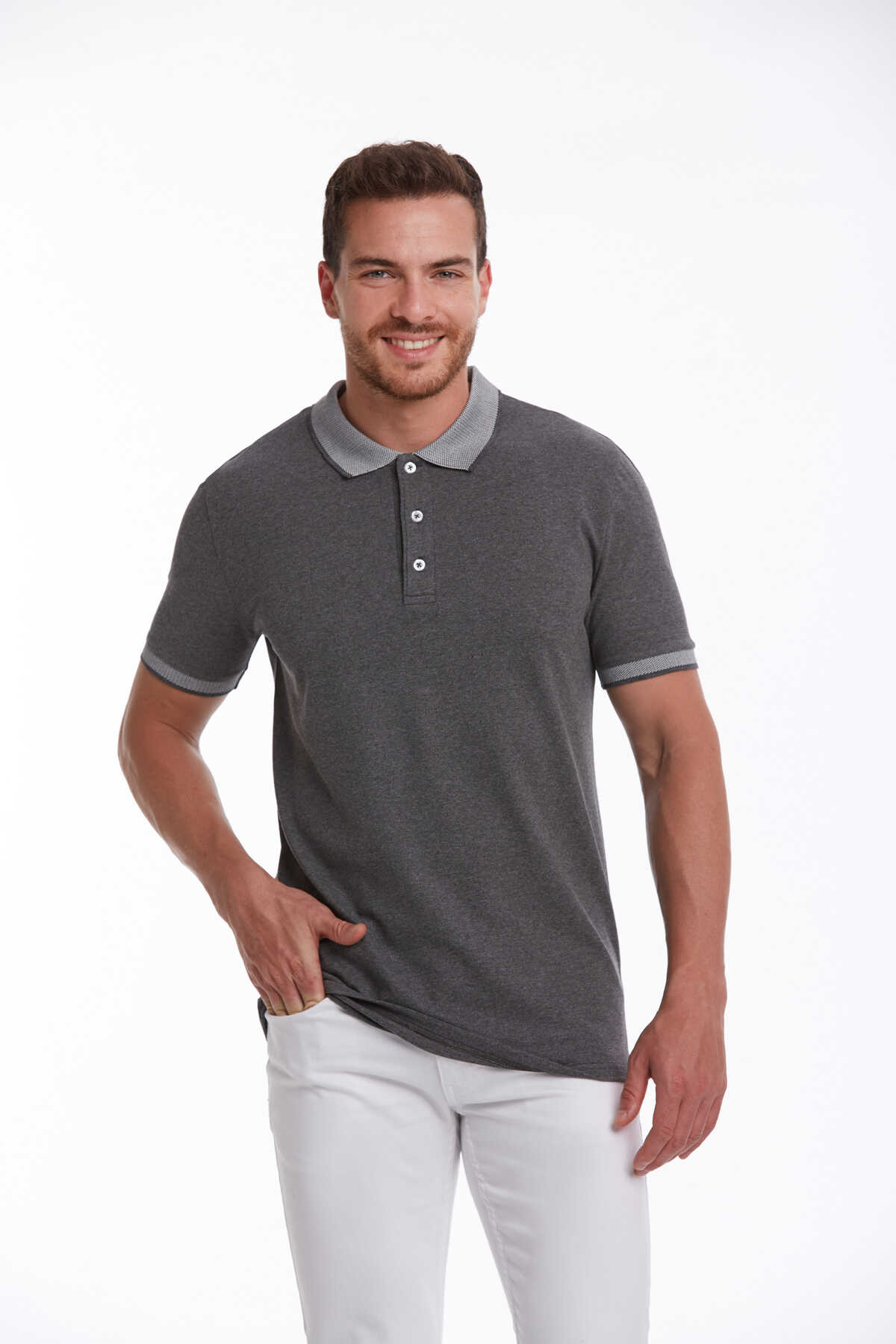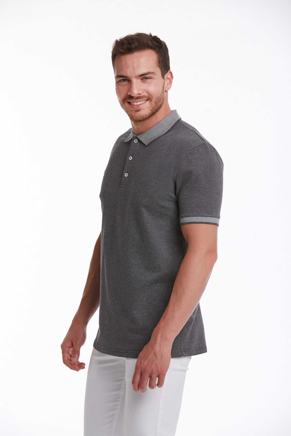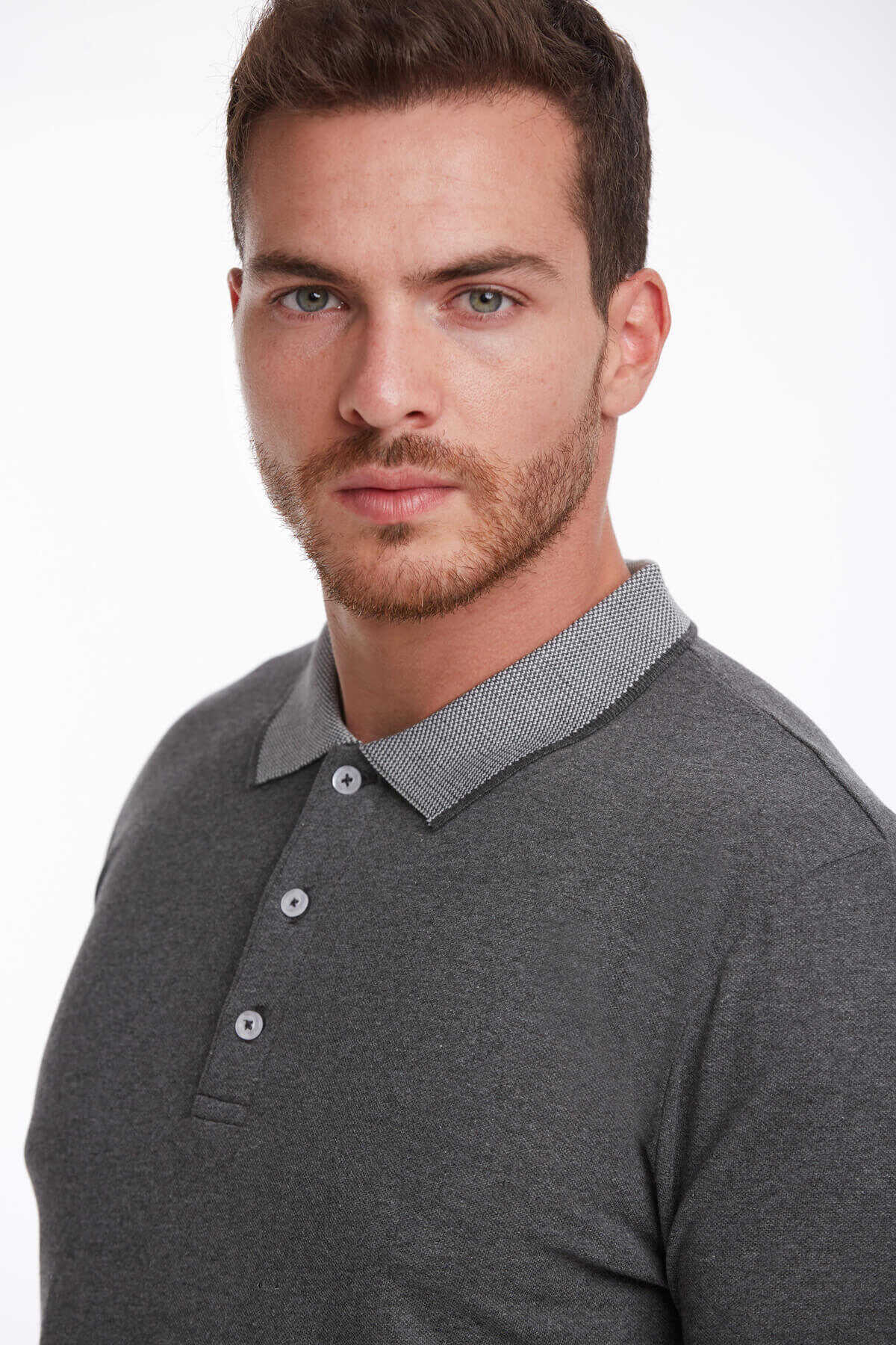 Antrasit Regular Fit 100% Pamuk Polo Yaka Tişört