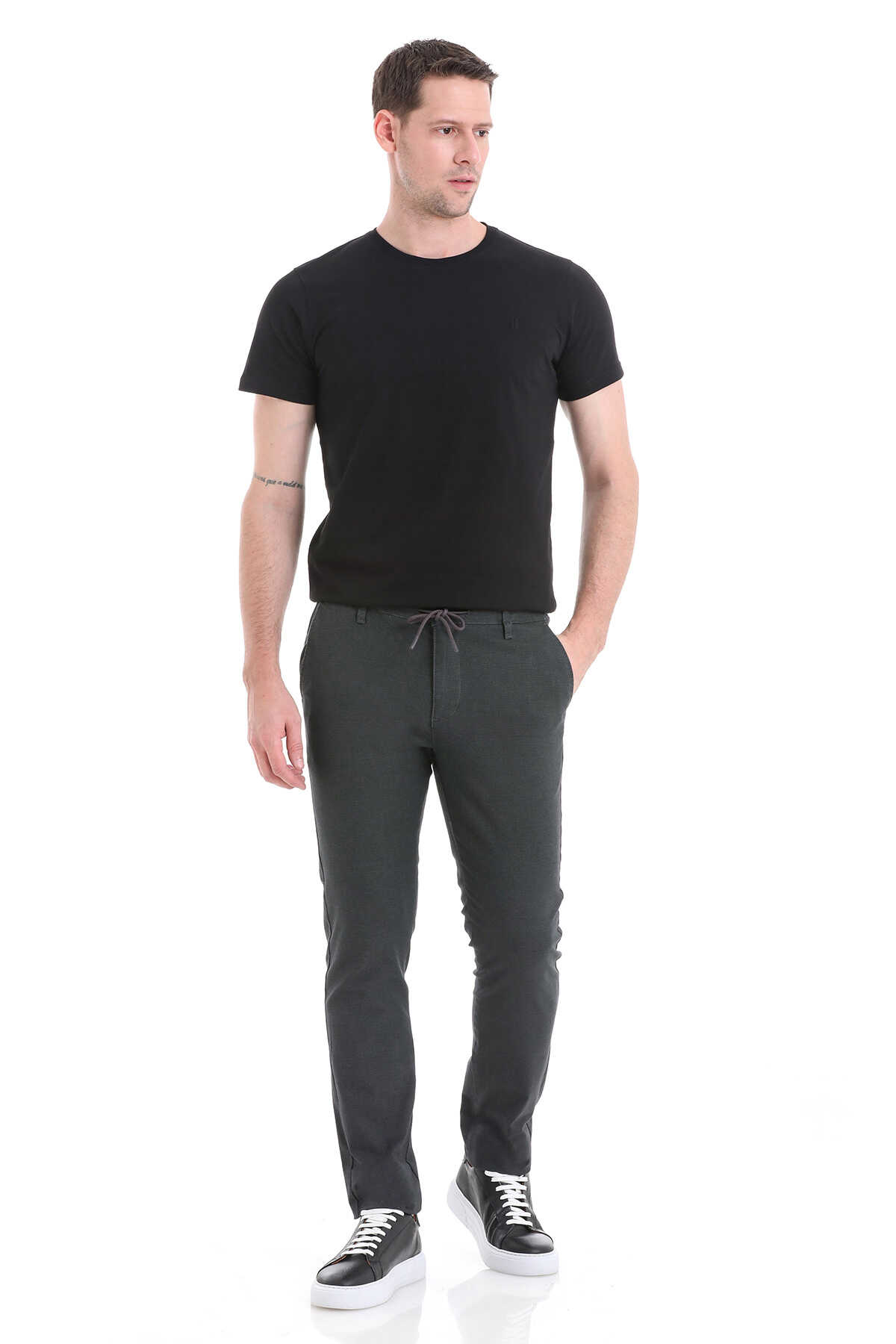 Antrasit Dinamik Fit Düz Yandan Cepli Pamuklu Jogger Kanvas Pantolon