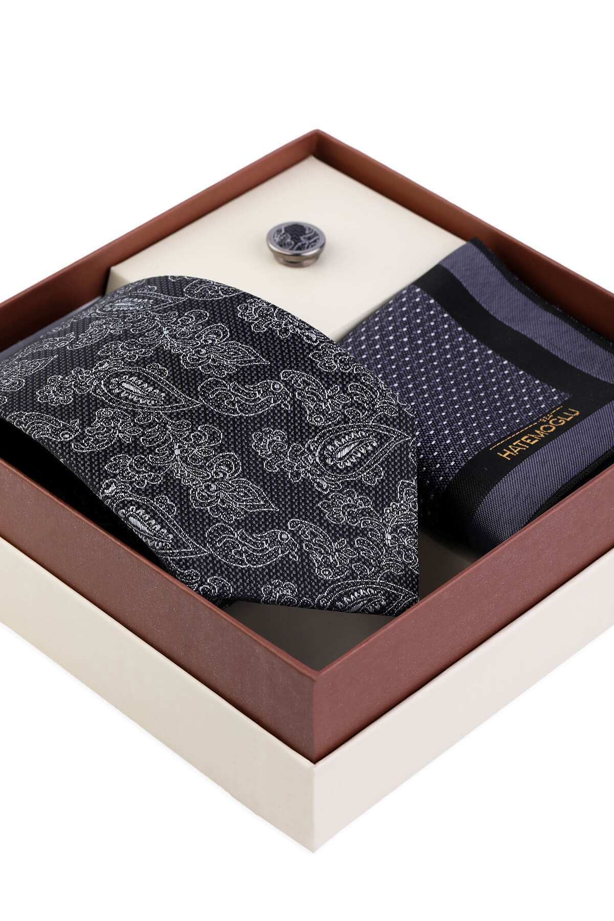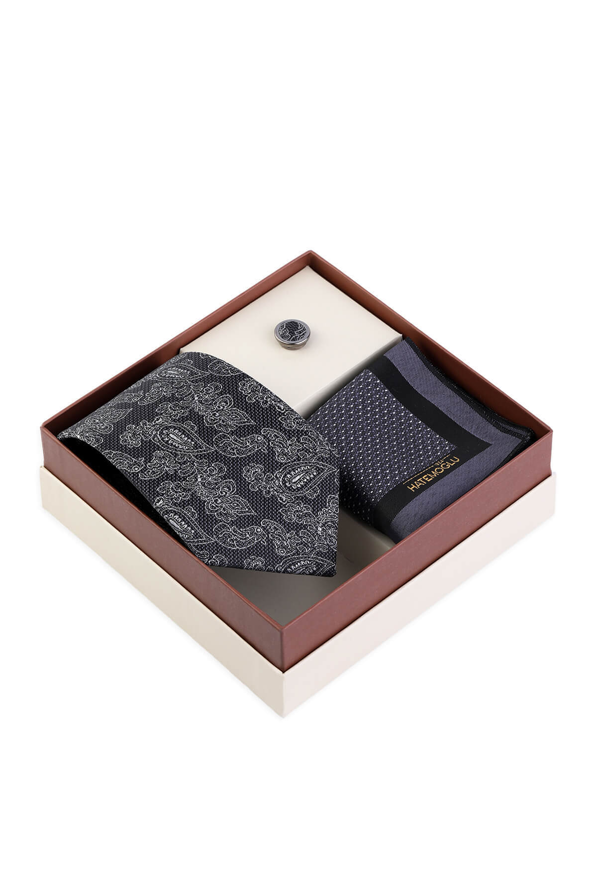 Antrasit Kravat Mendil ve Yaka Rozeti 3'lü Set