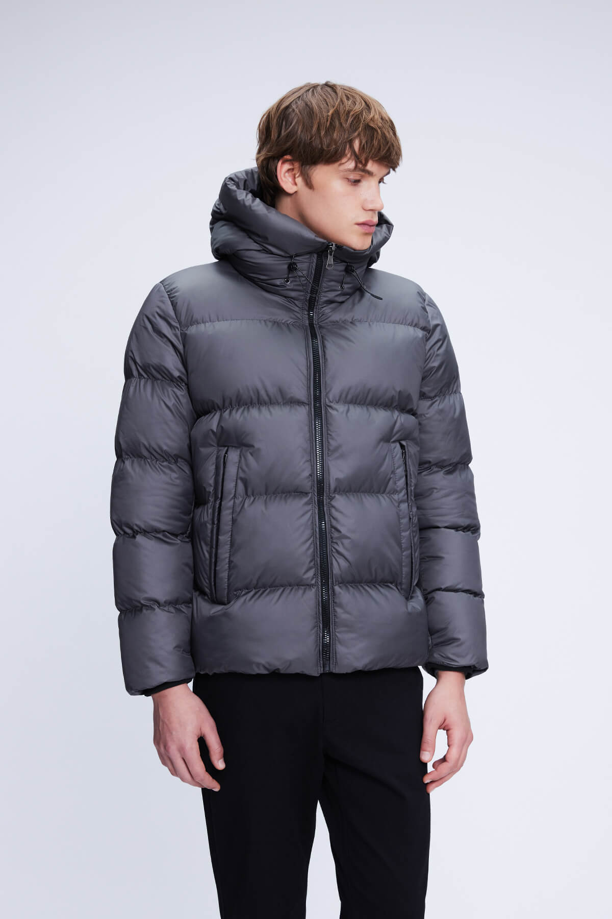 Antrasit Regular Fit Hakim Yaka Kapüşonlu Şişme Mont