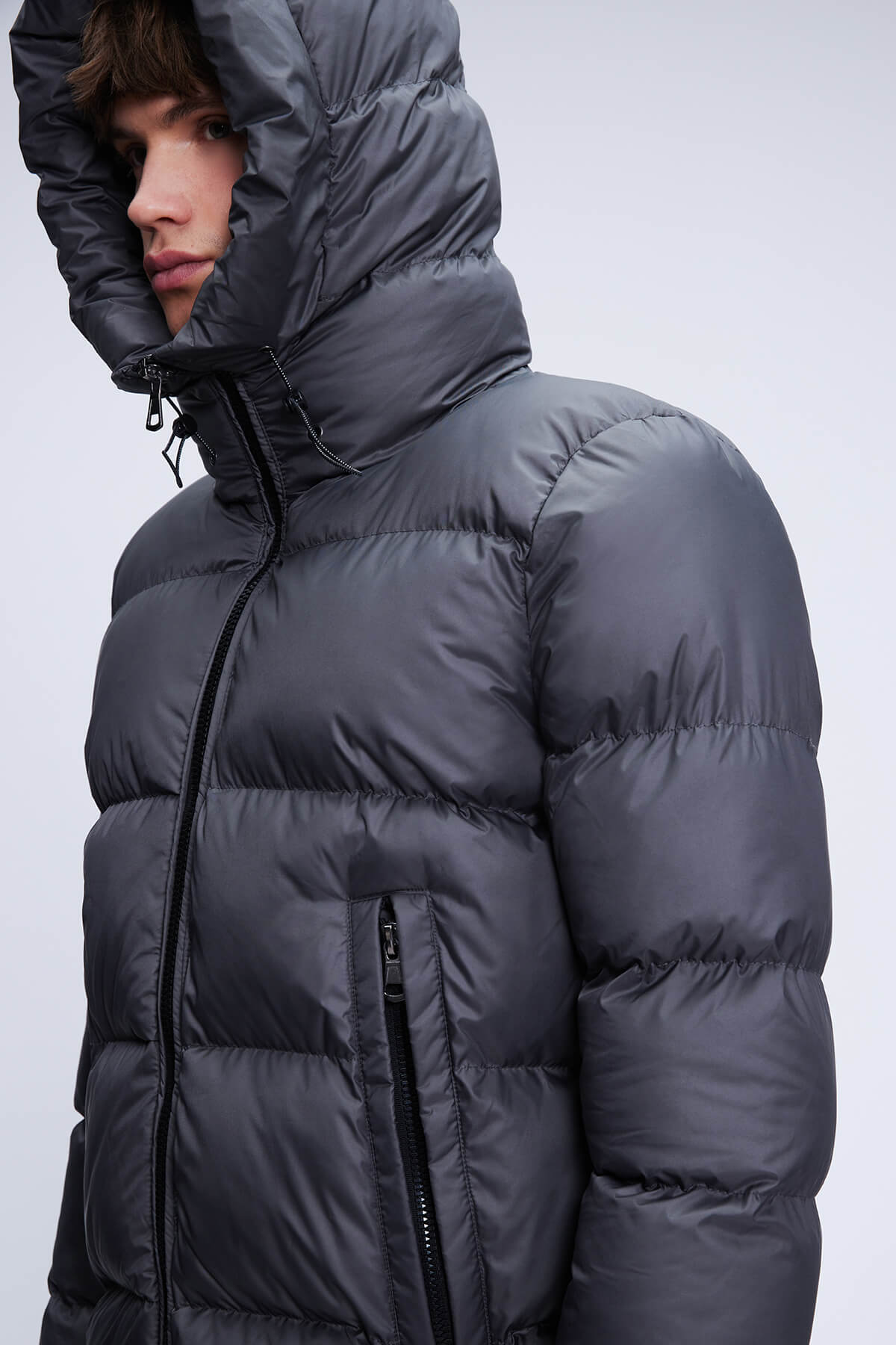 Antrasit Regular Fit Hakim Yaka Kapüşonlu Şişme Mont - 5
