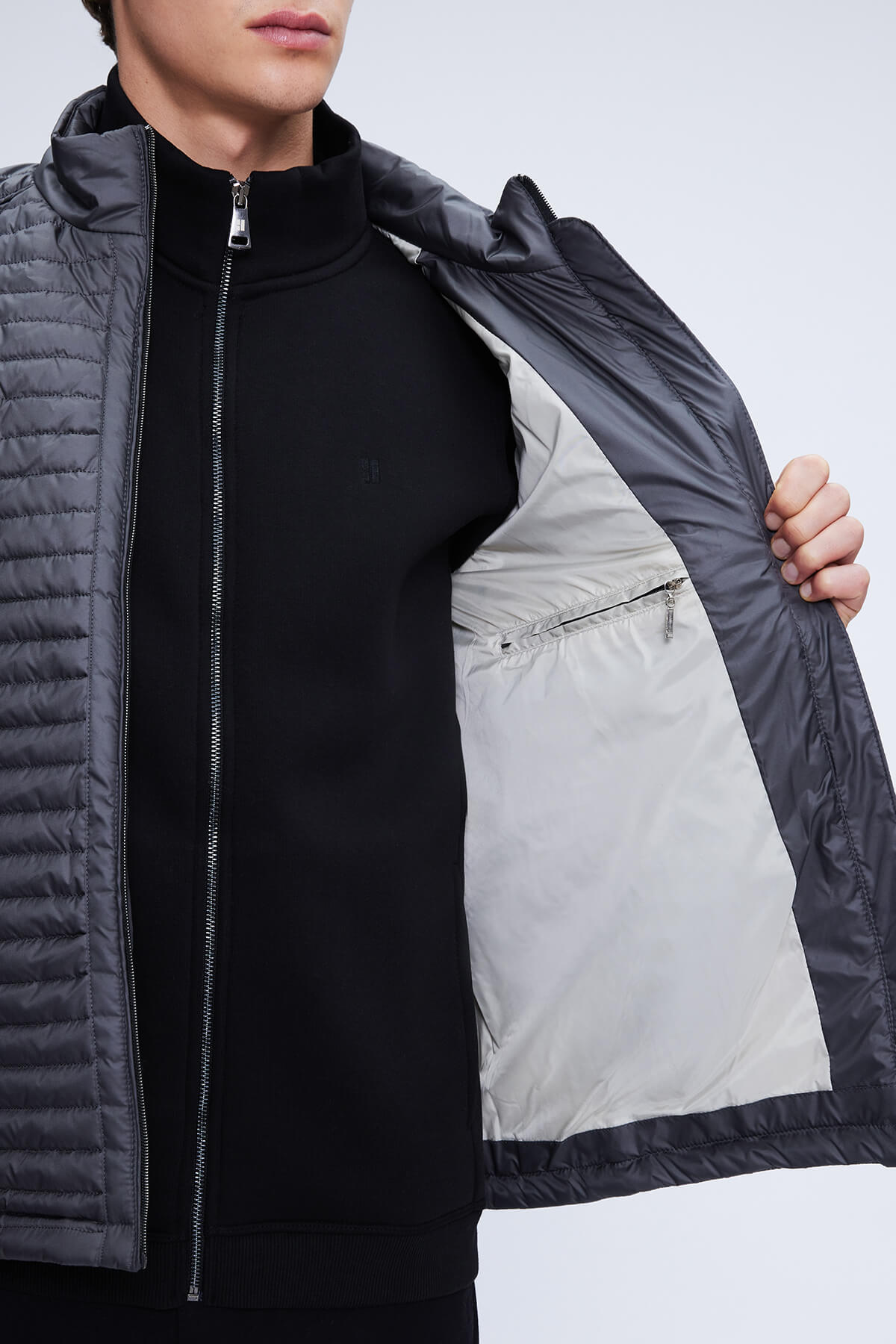 Antrasit Regular Fit Hakim Yaka Şişme Mont