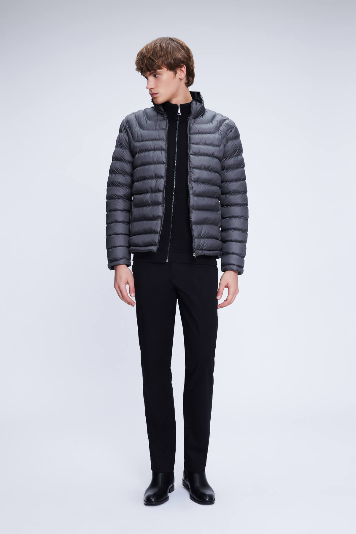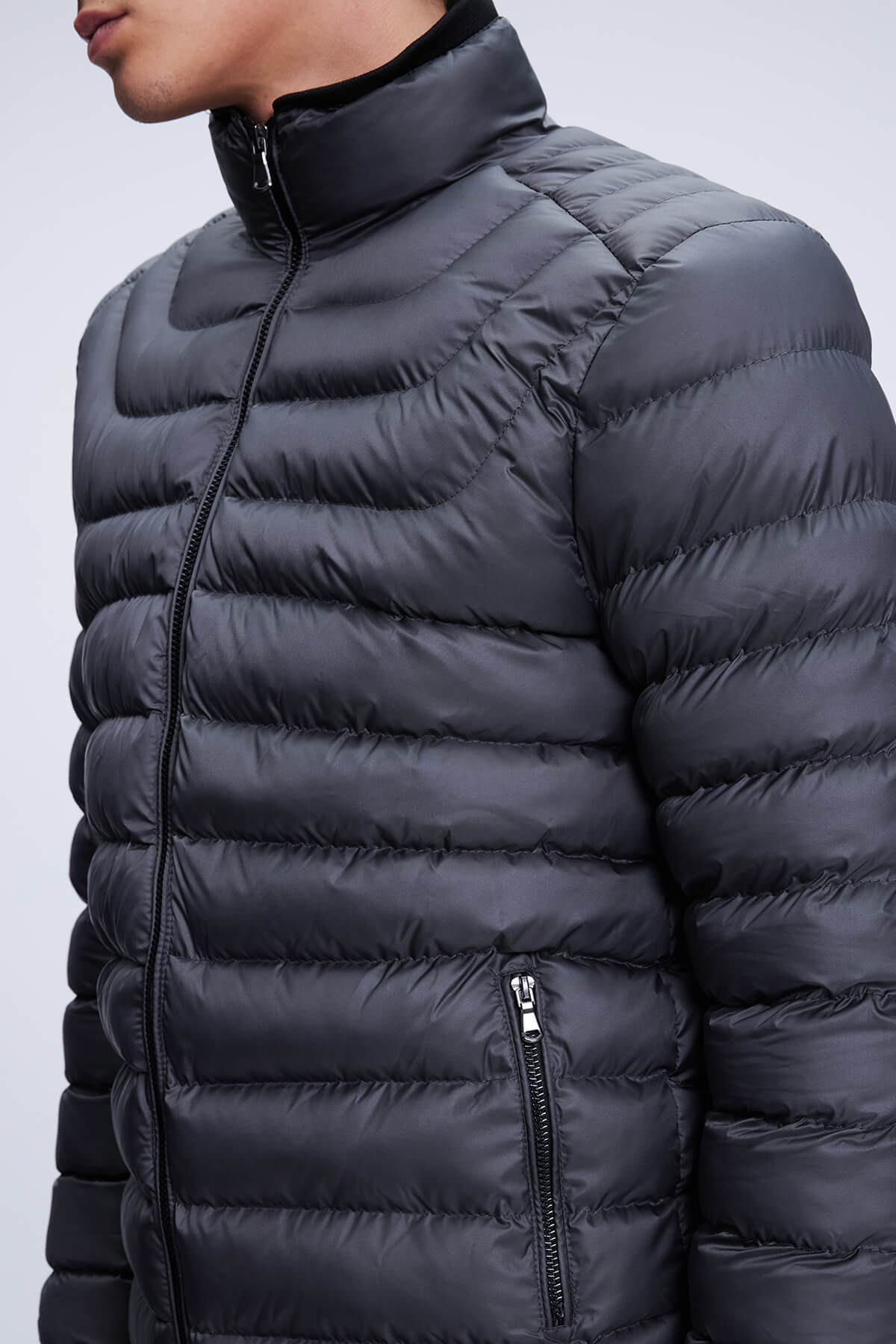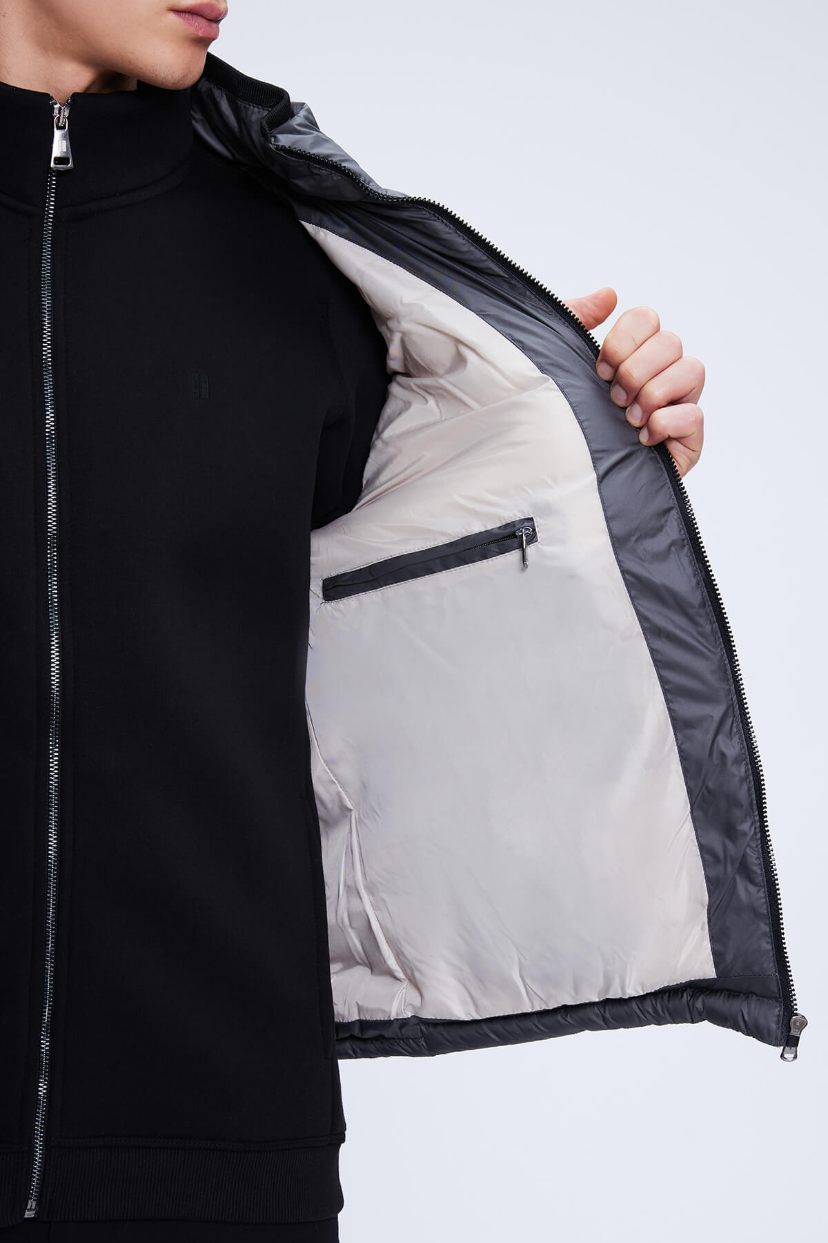 Antrasit Regular Fit Hakim Yaka Şişme Mont