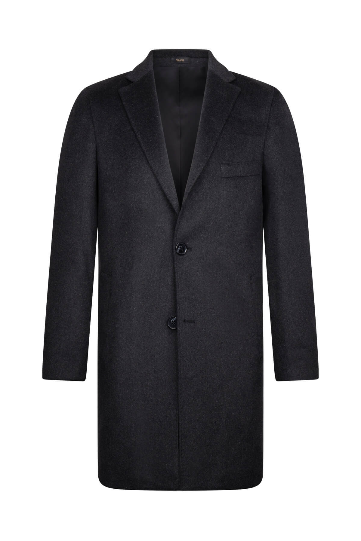 Antrasit Slim Fit Ceket Yaka Yünlü Kaşe Palto
