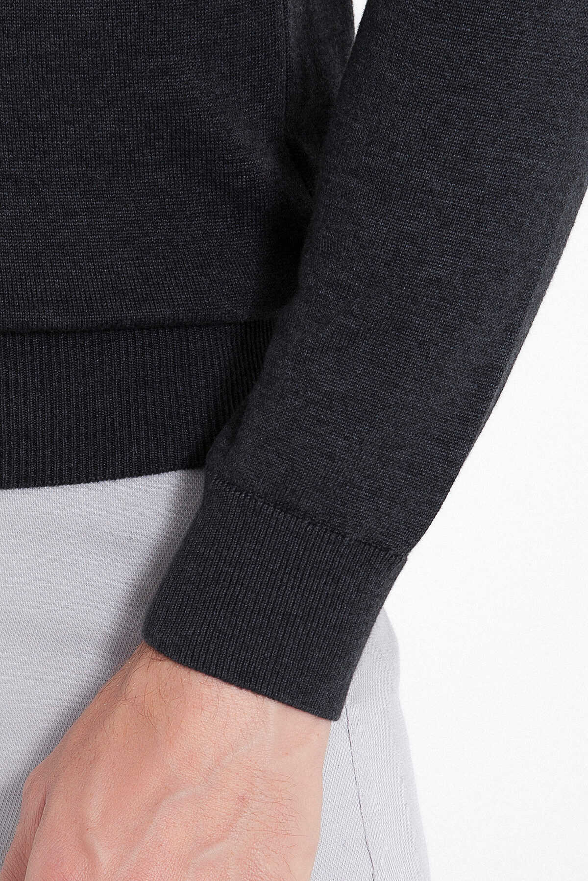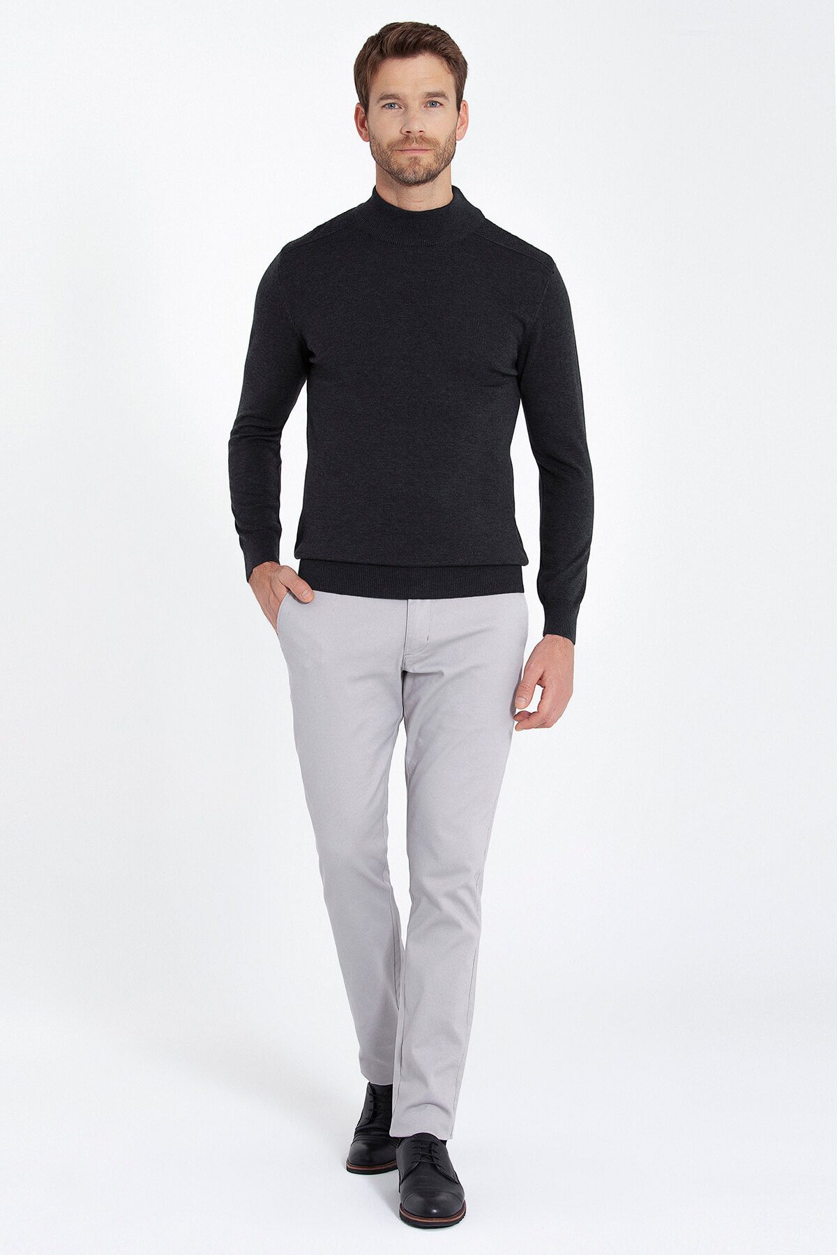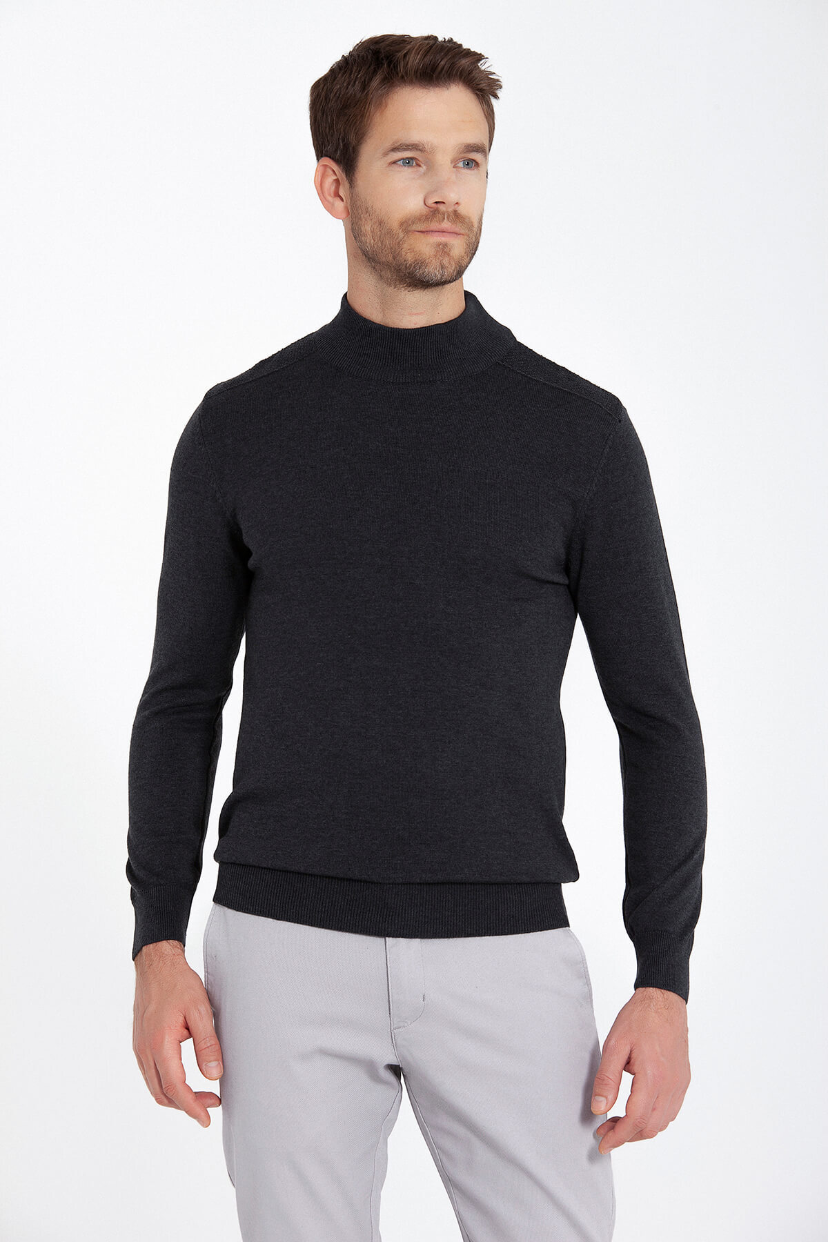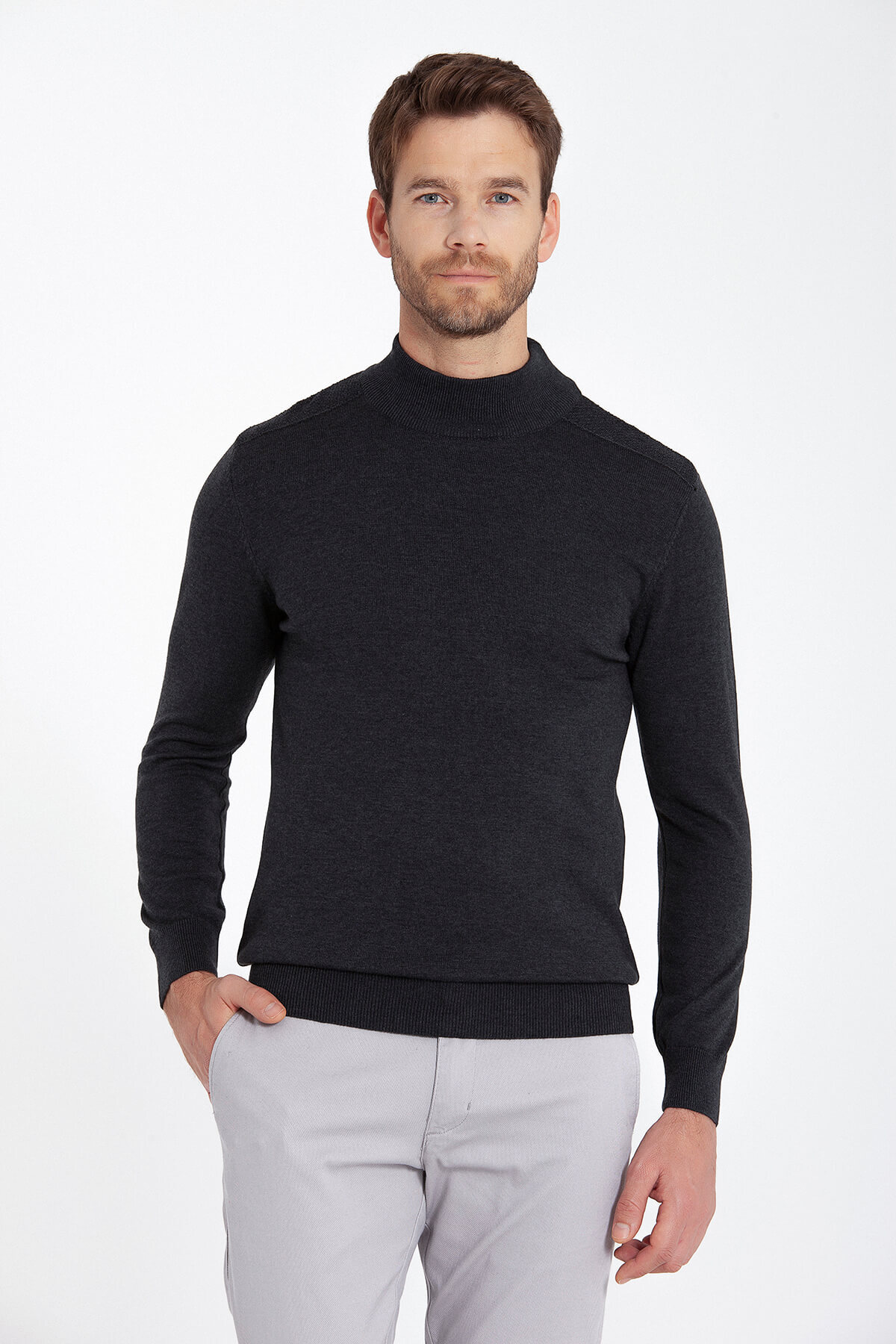 Antrasit Regular Fit Yarım Balıkçı Yaka Pamuklu Triko Kazak