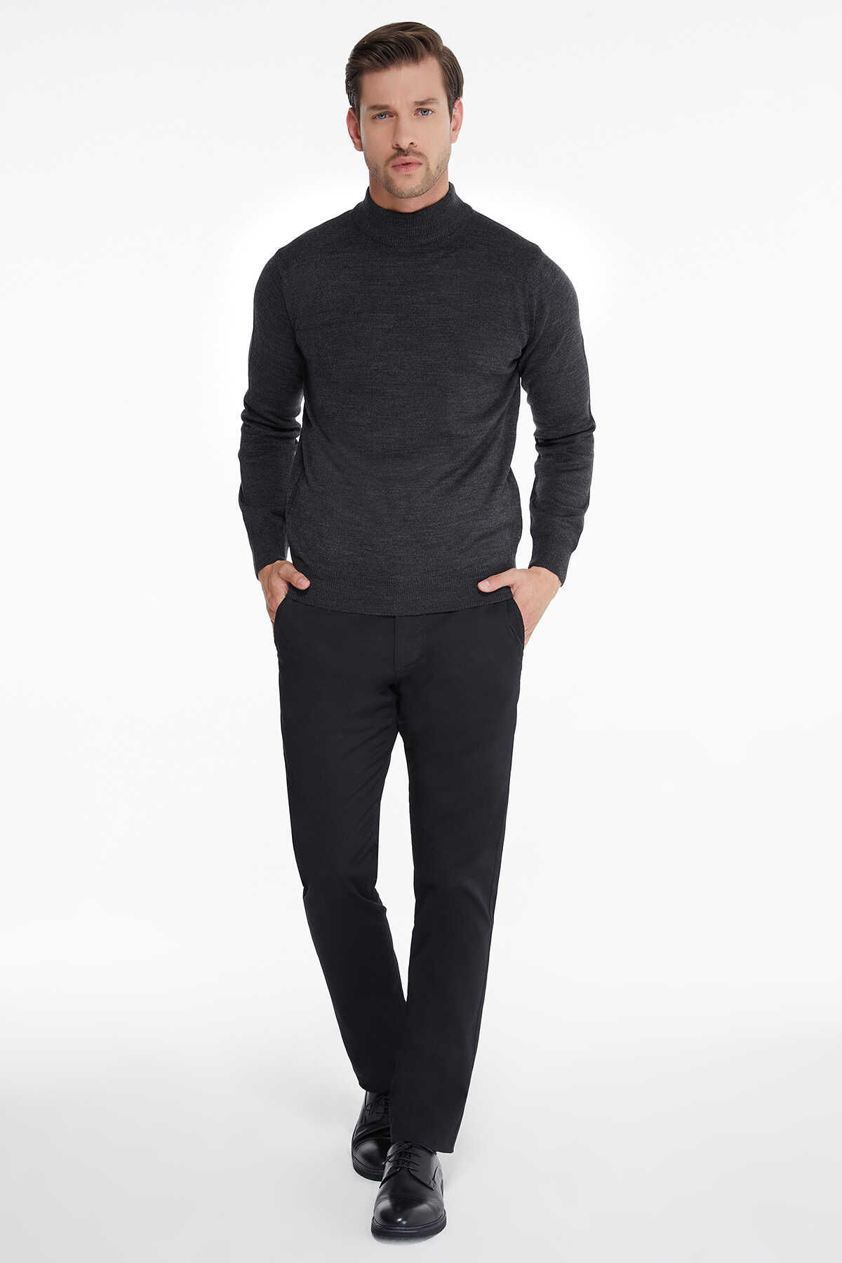 Antrasit Regular Fit Düz Yarım Balıkçı Yaka Triko Kazak