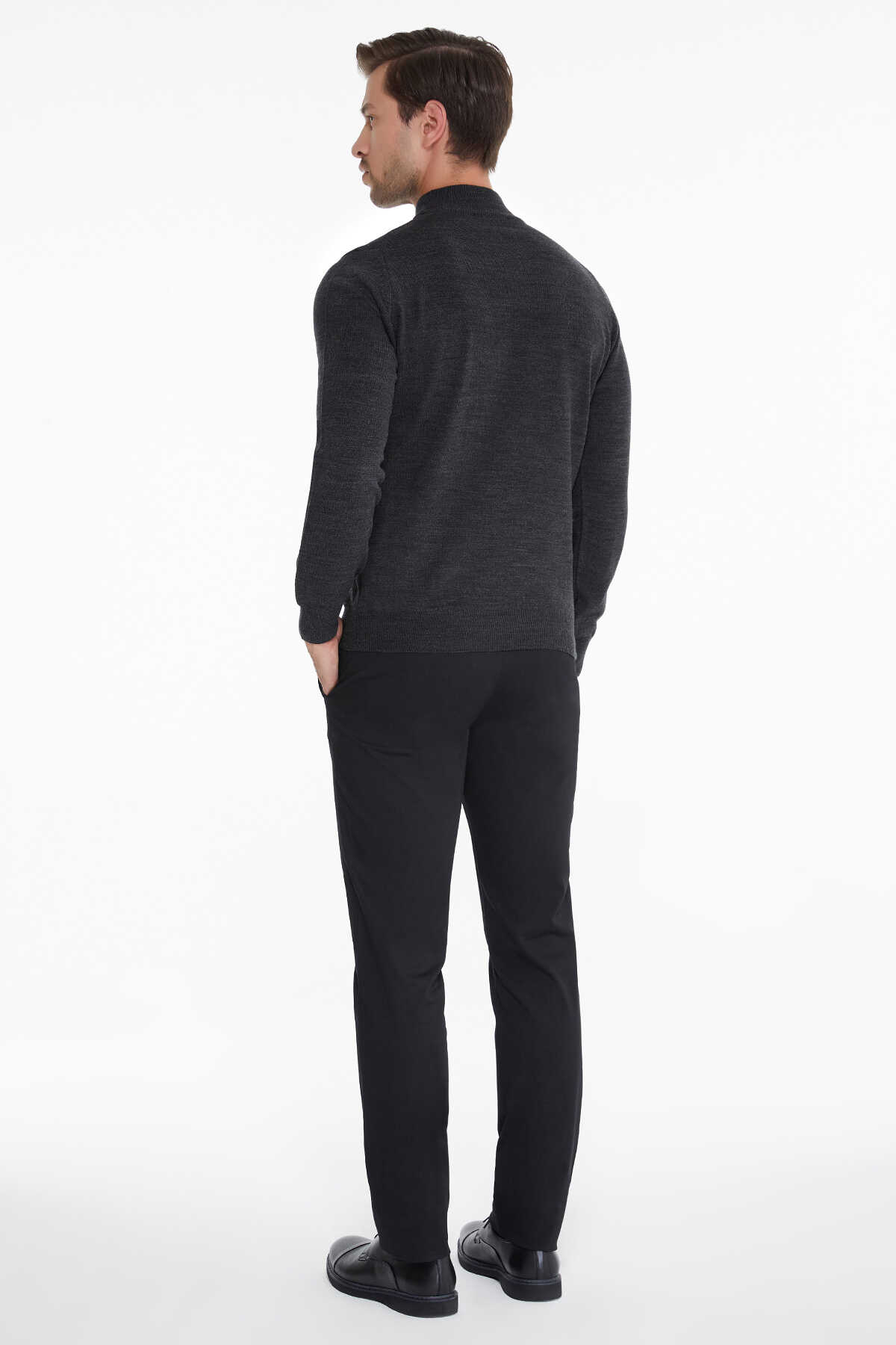 Antrasit Regular Fit Düz Yarım Balıkçı Yaka Triko Kazak - 4