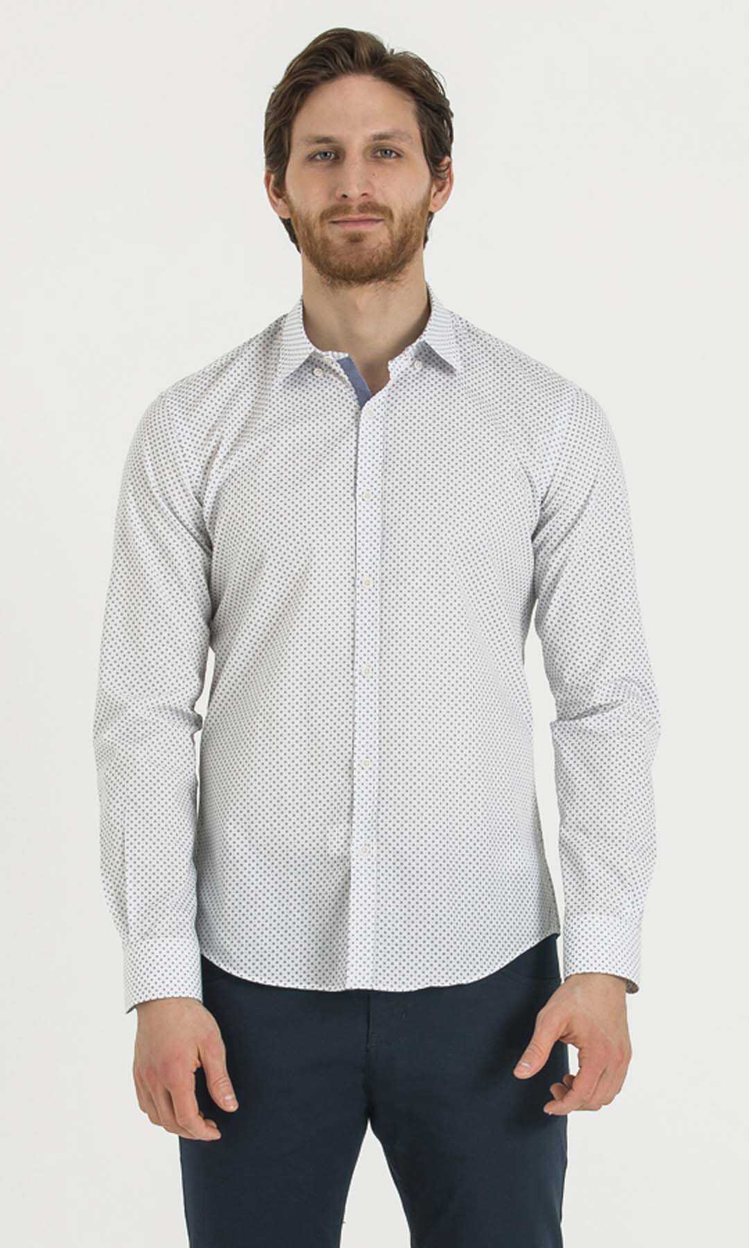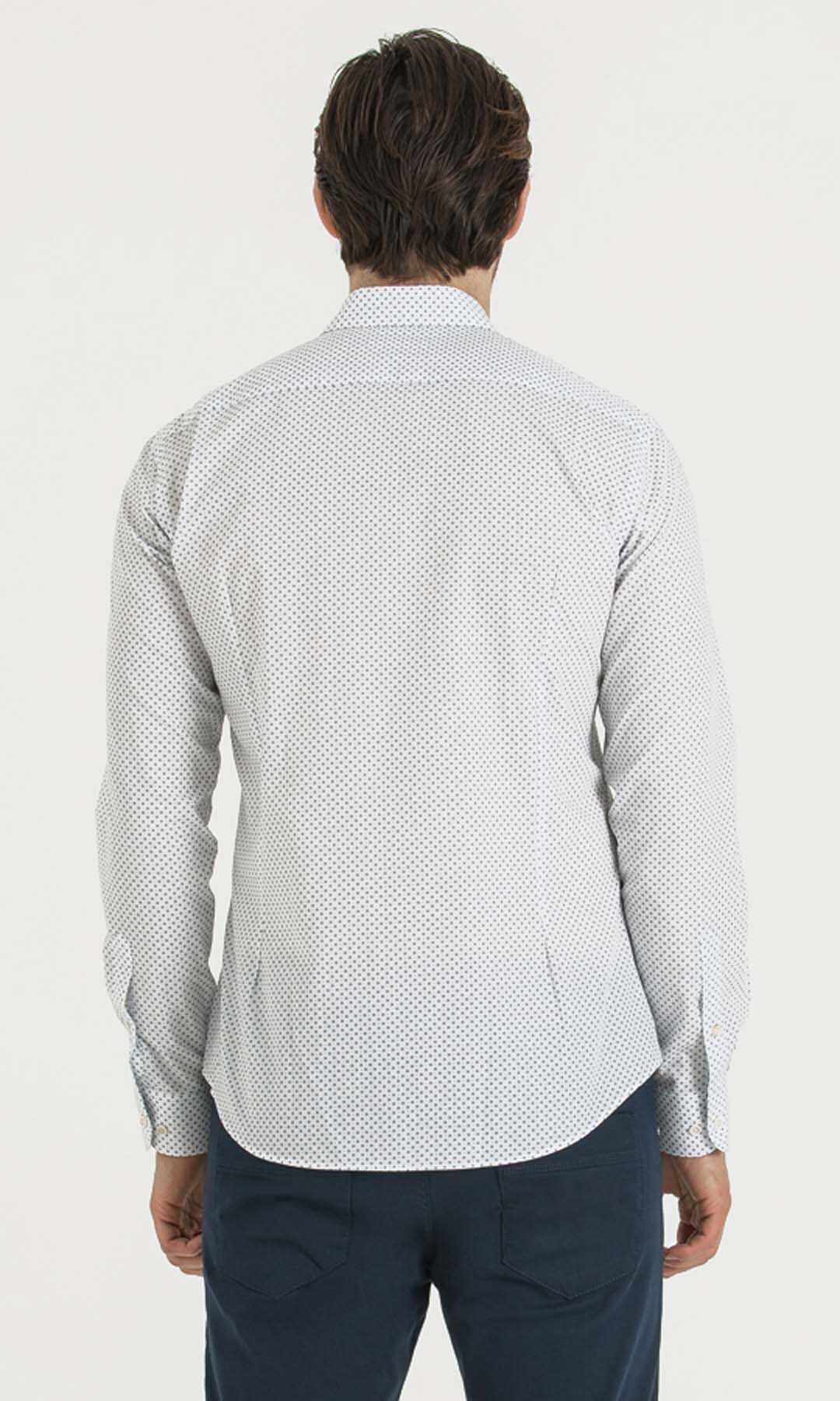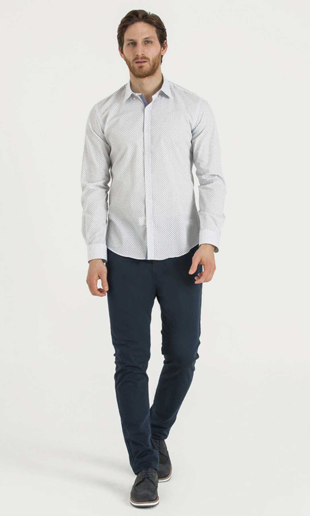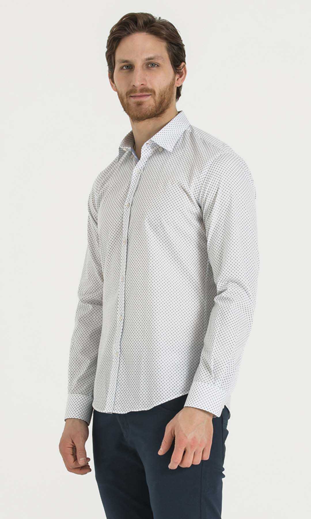 Baskılı Slim Fit Beyaz Gömlek
