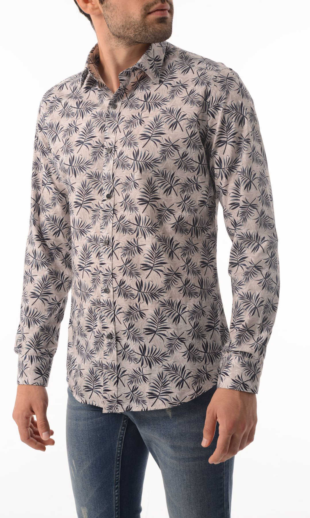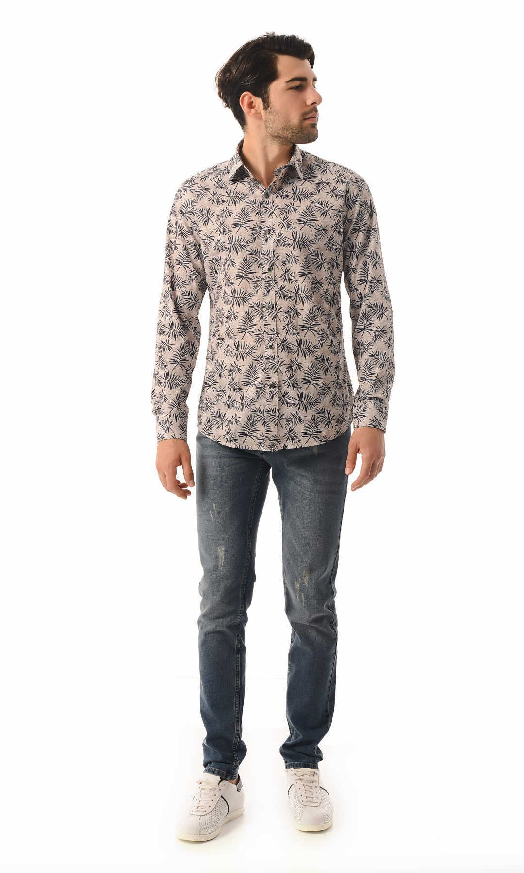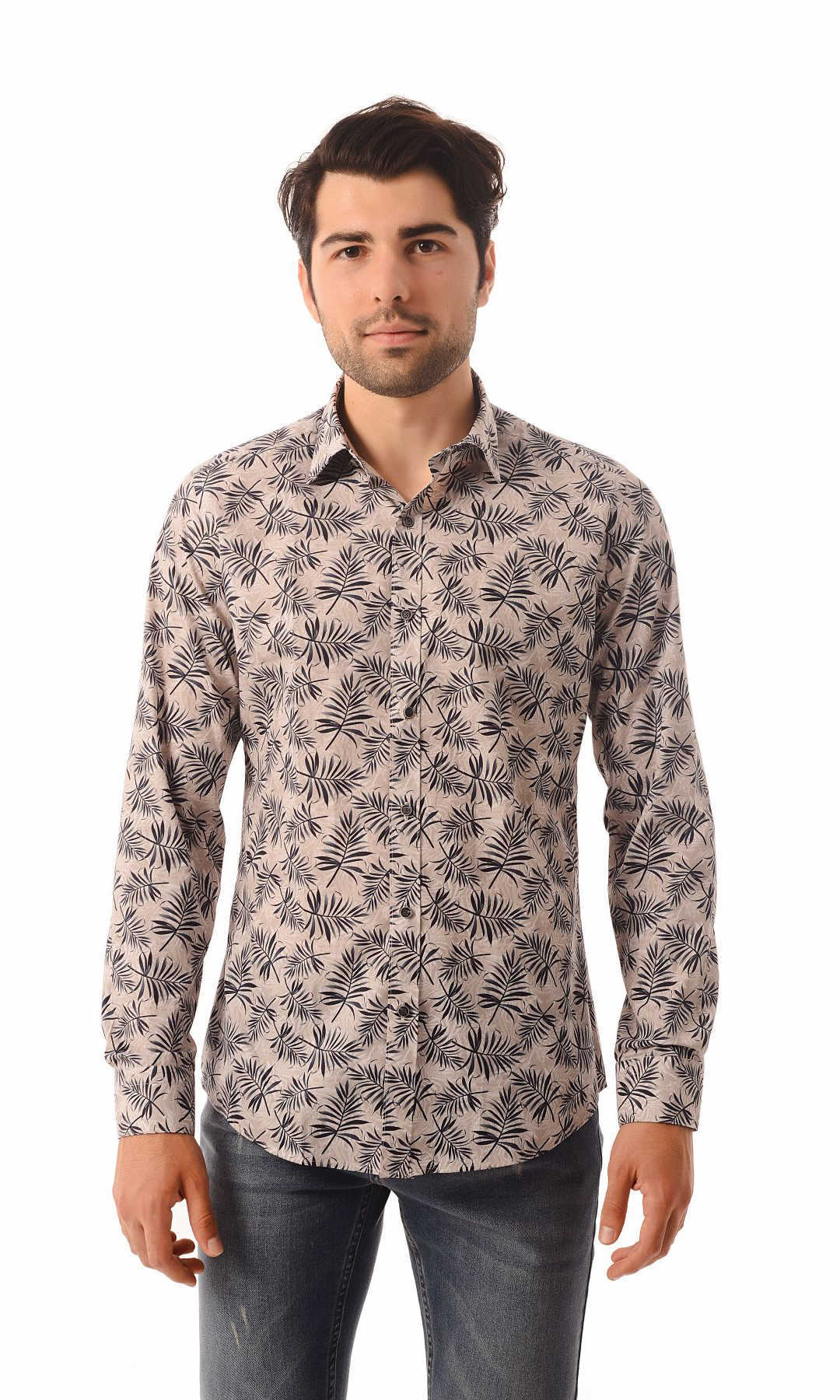 Baskılı Slim Fit Kahverengi Gömlek