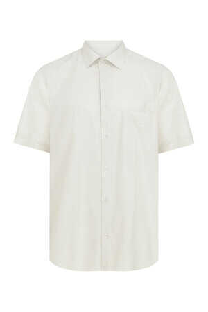 Bej Klasik Fit 100% Pamuk Kısa Kol Klasik Gömlek