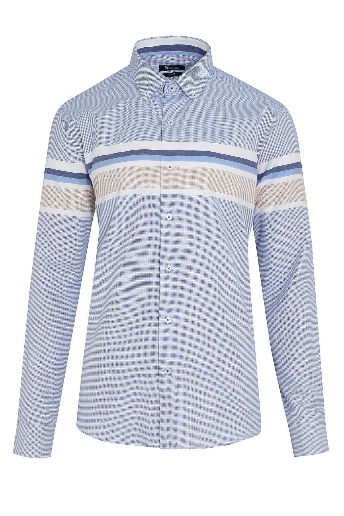Bej Dinamik Fit Uzun Kol Pamuklu Çizgili Gömlek