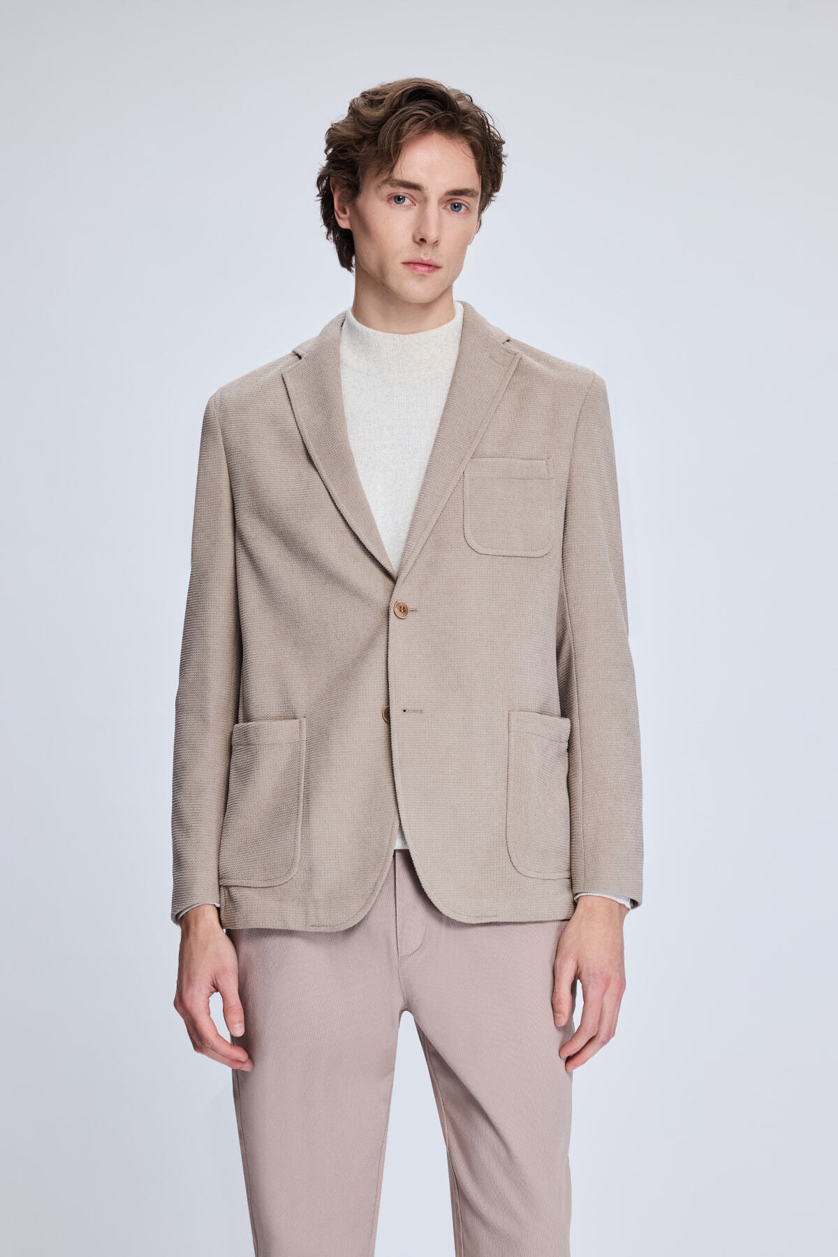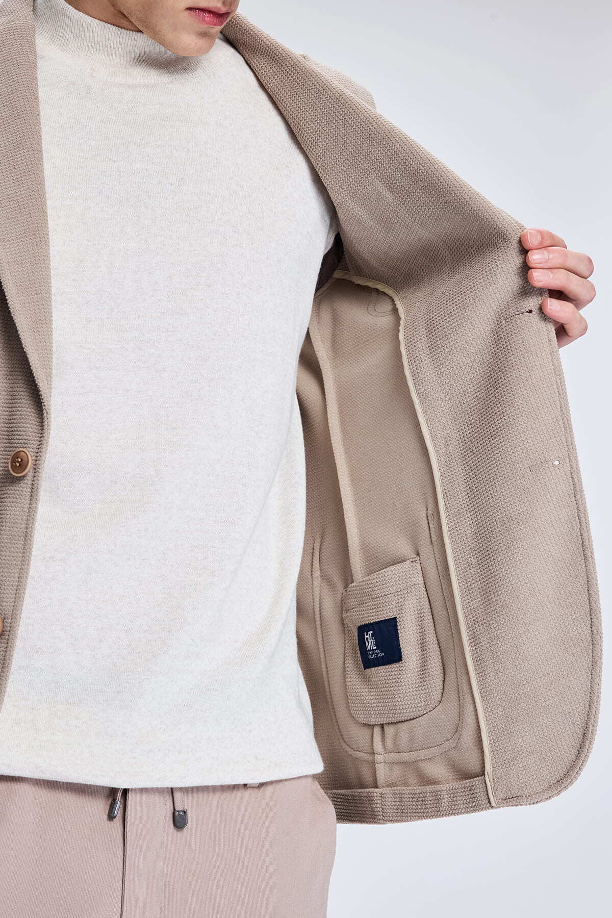 Bej Comfort Fit Desenli Mono Yaka Klasik Ceket