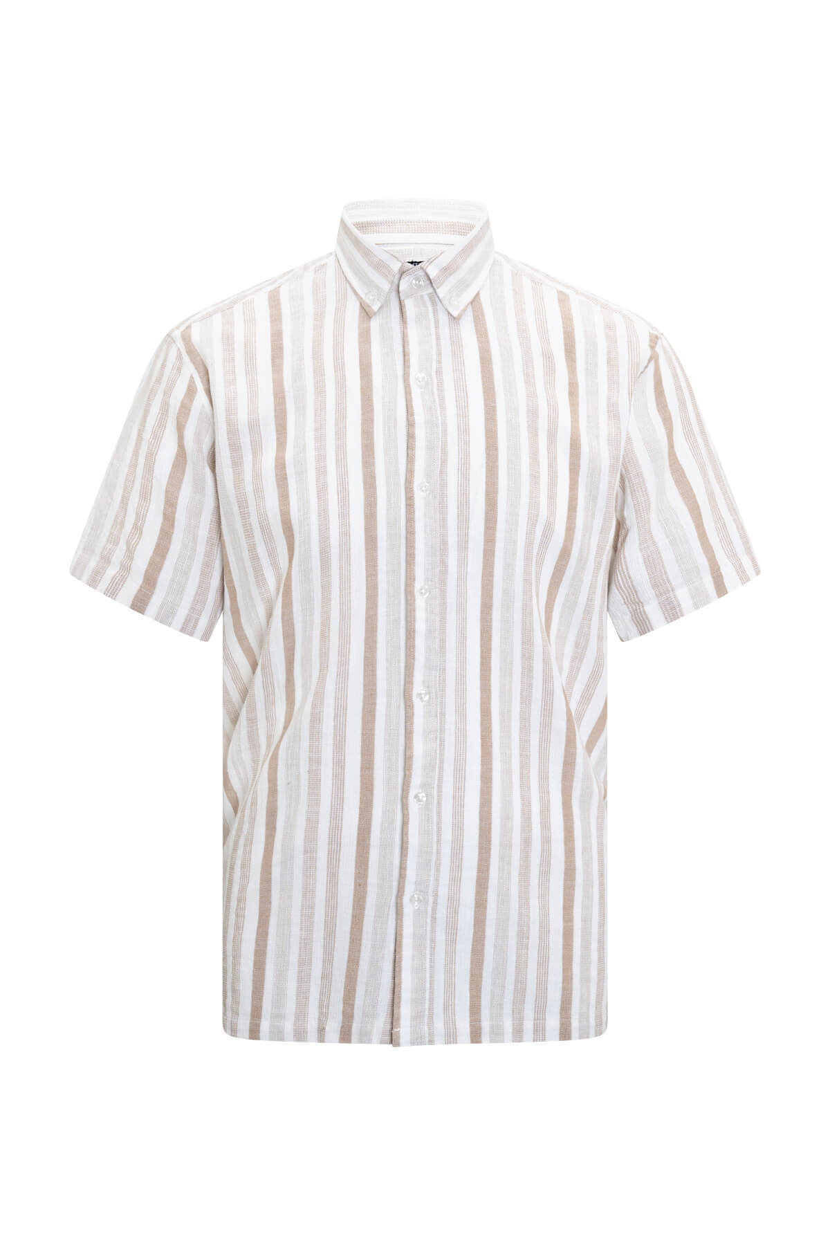 • Bej Çizgili Kısa Kollu Gömlek, yaz aylarının vazgeçilmezi olan bu parça, comfort fit kesimiyle öne çıkar. %100 pamuklu kumaşı sayesinde gün boyu rahatlık ve nefes alabilirlik sunar. Bej ve beyaz çizgili deseniyle dikkat çeken bu gömlek, hem konforlu bir kullanım sunar hem de her kombinle uyum sağlayarak gardırobunuzun temel parçalarından biri olur. Düğmeli yaka detayı, gömleğin klasik ve şık tasarımını tamamlar.