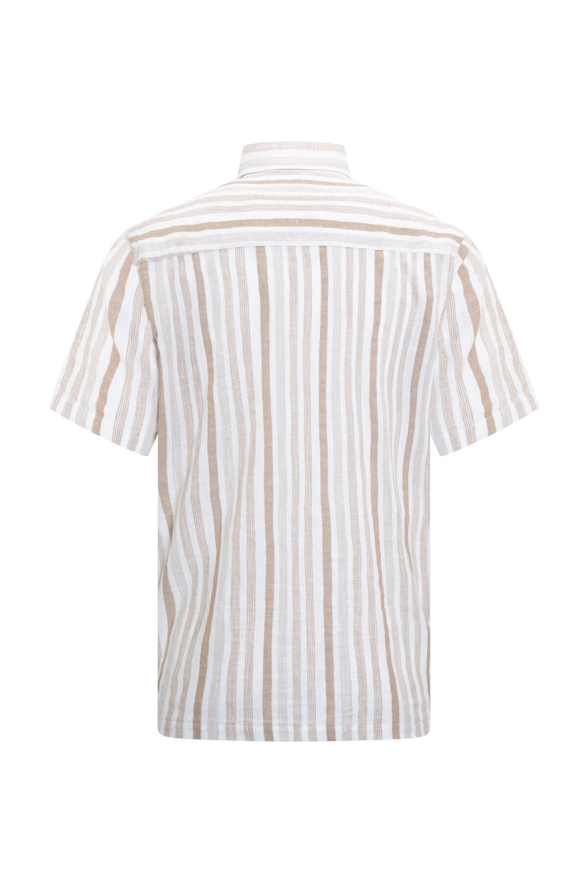 Bej Comfort Fit Düğmeli Yaka 100% Pamuk Kısa Kollu Gömlek - 2