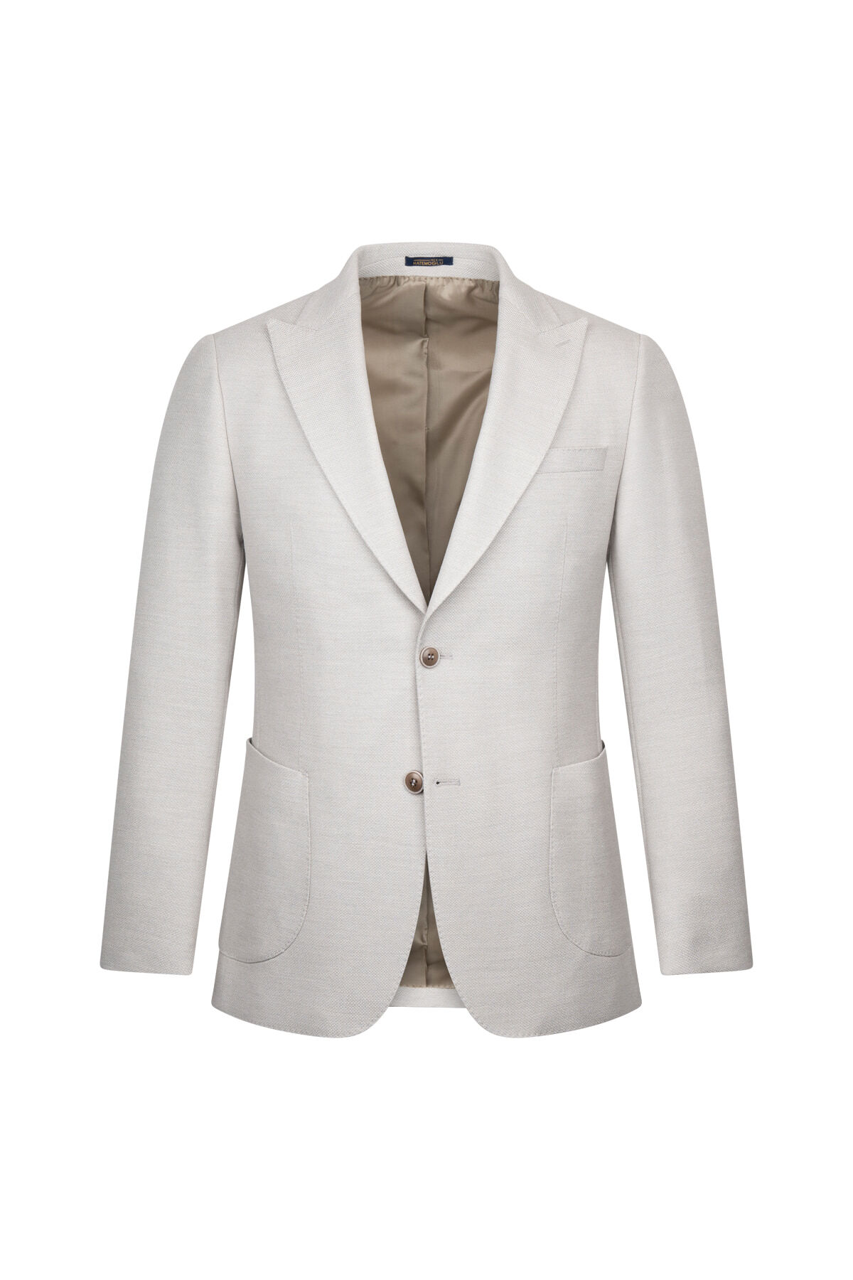 Bej Comfort Fit Sivri Yaka Desenli Klasik Ceket