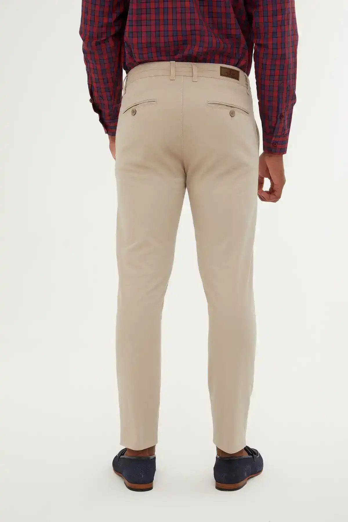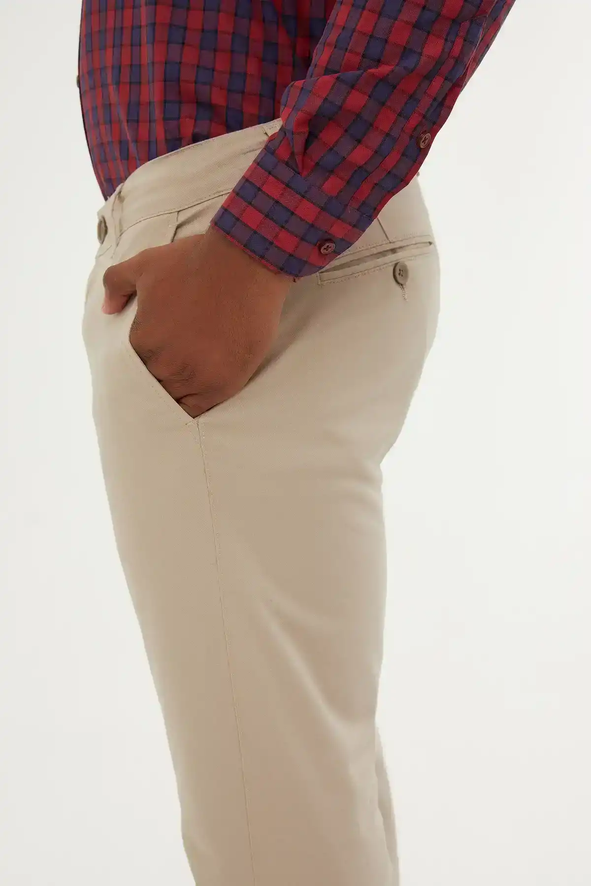 Bej Dinamik Fit Pamuklu Yandan Cep Kanvas Pantolon