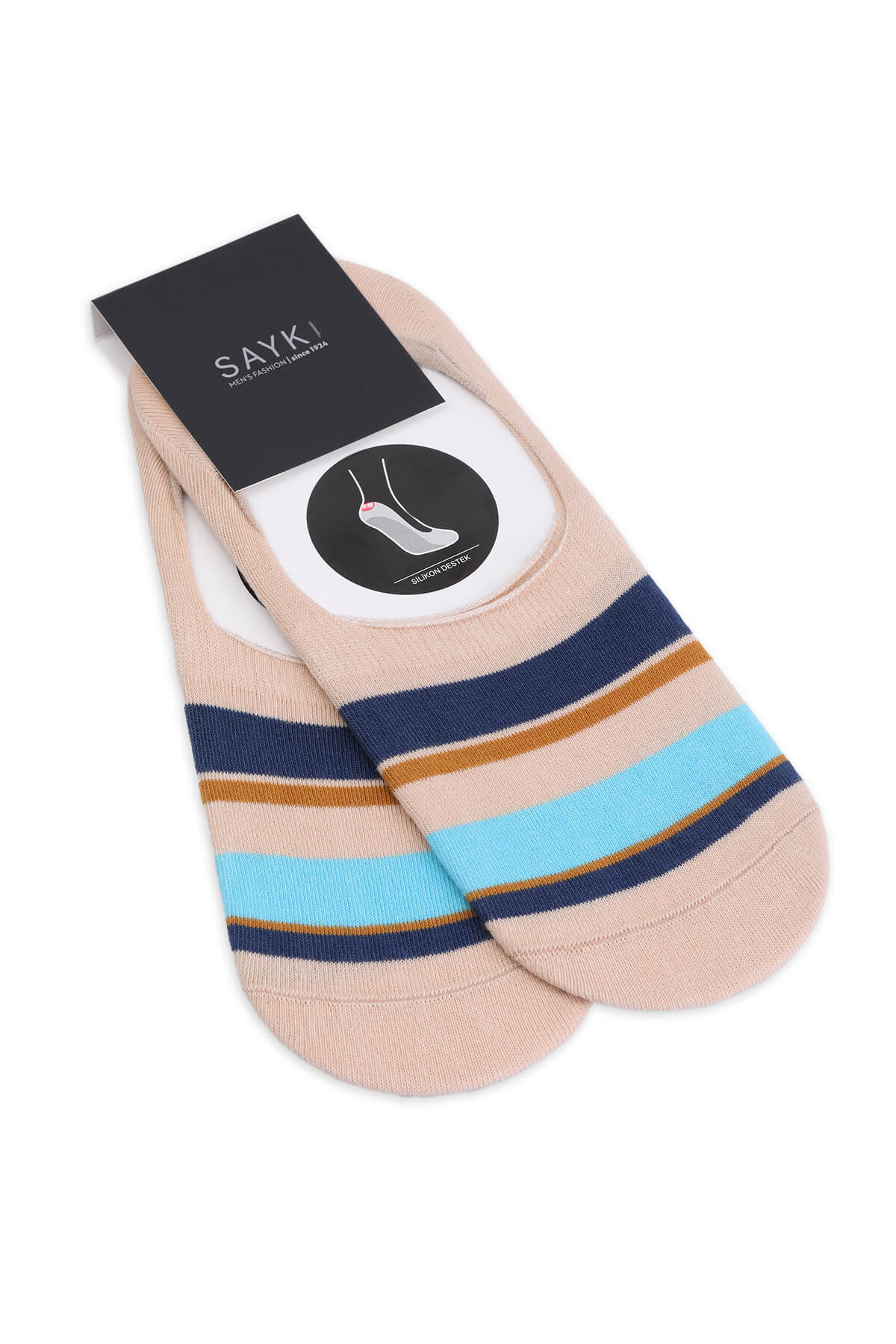 Bej İkili Çizgili Pamuklu Babet Çorap - 1