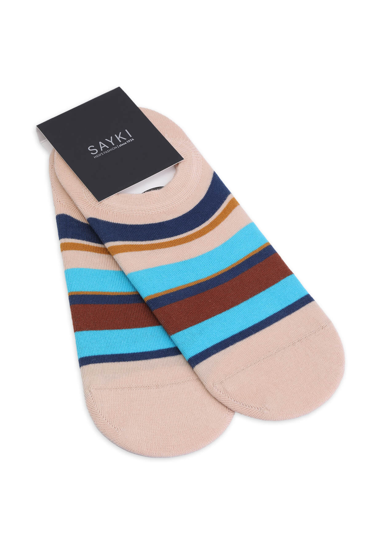 Bej İkili Çizgili Pamuklu Babet Çorap - 1