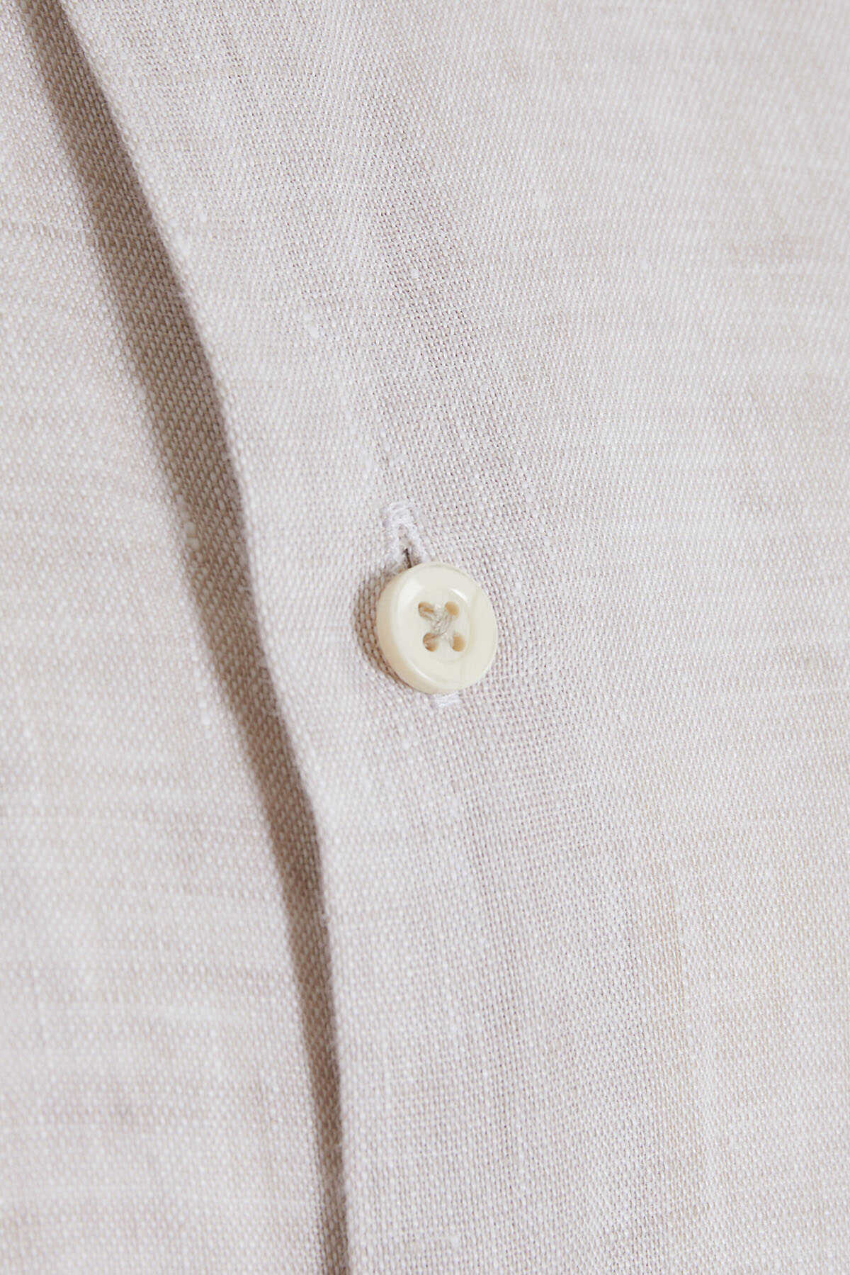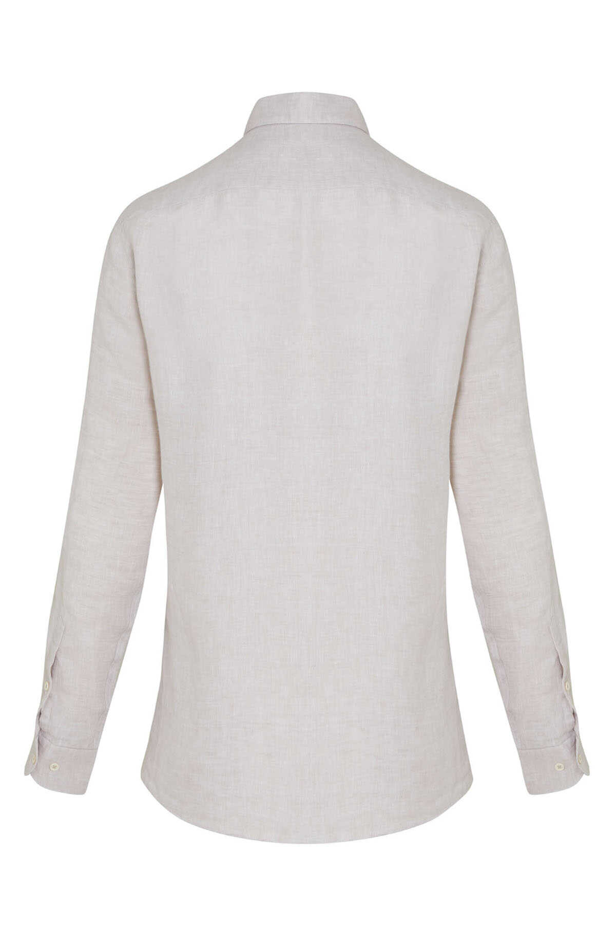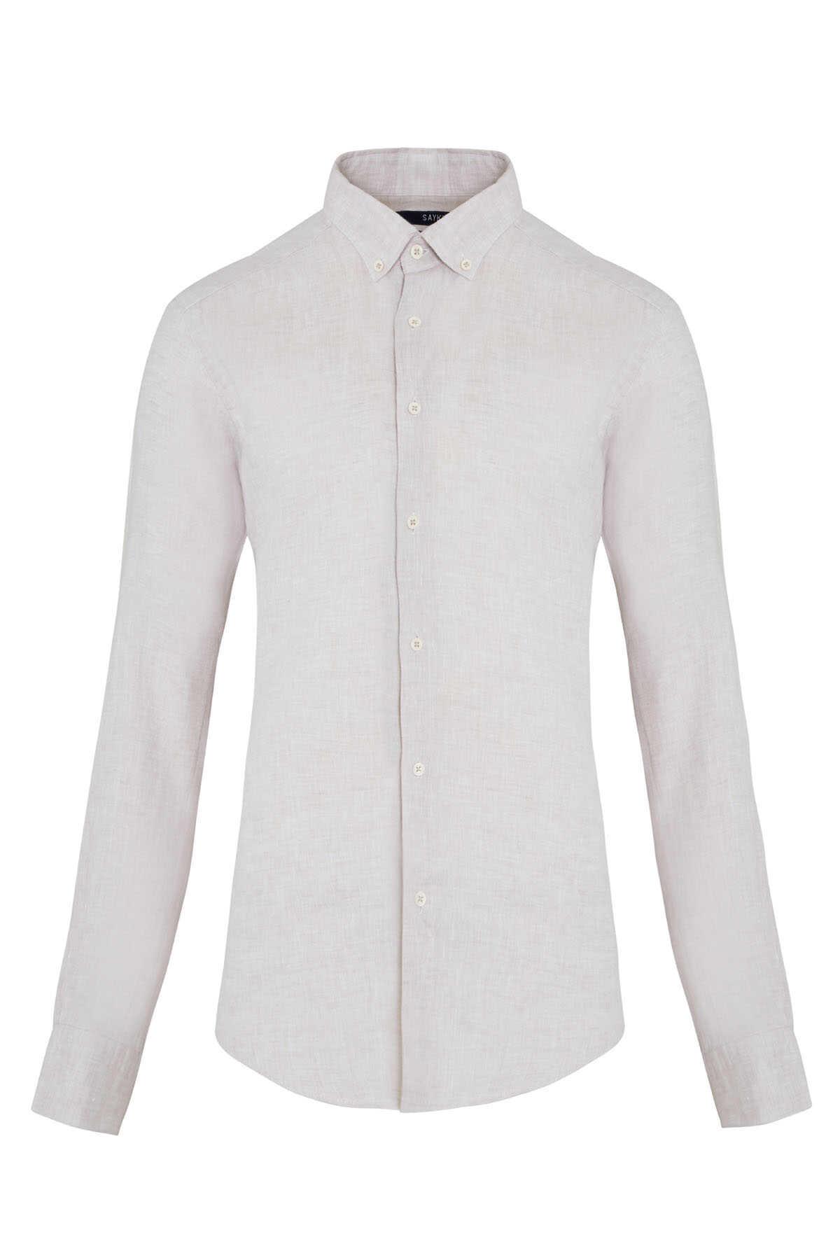 Bej Regular Fit 100% Keten Uzun Kol Gömlek