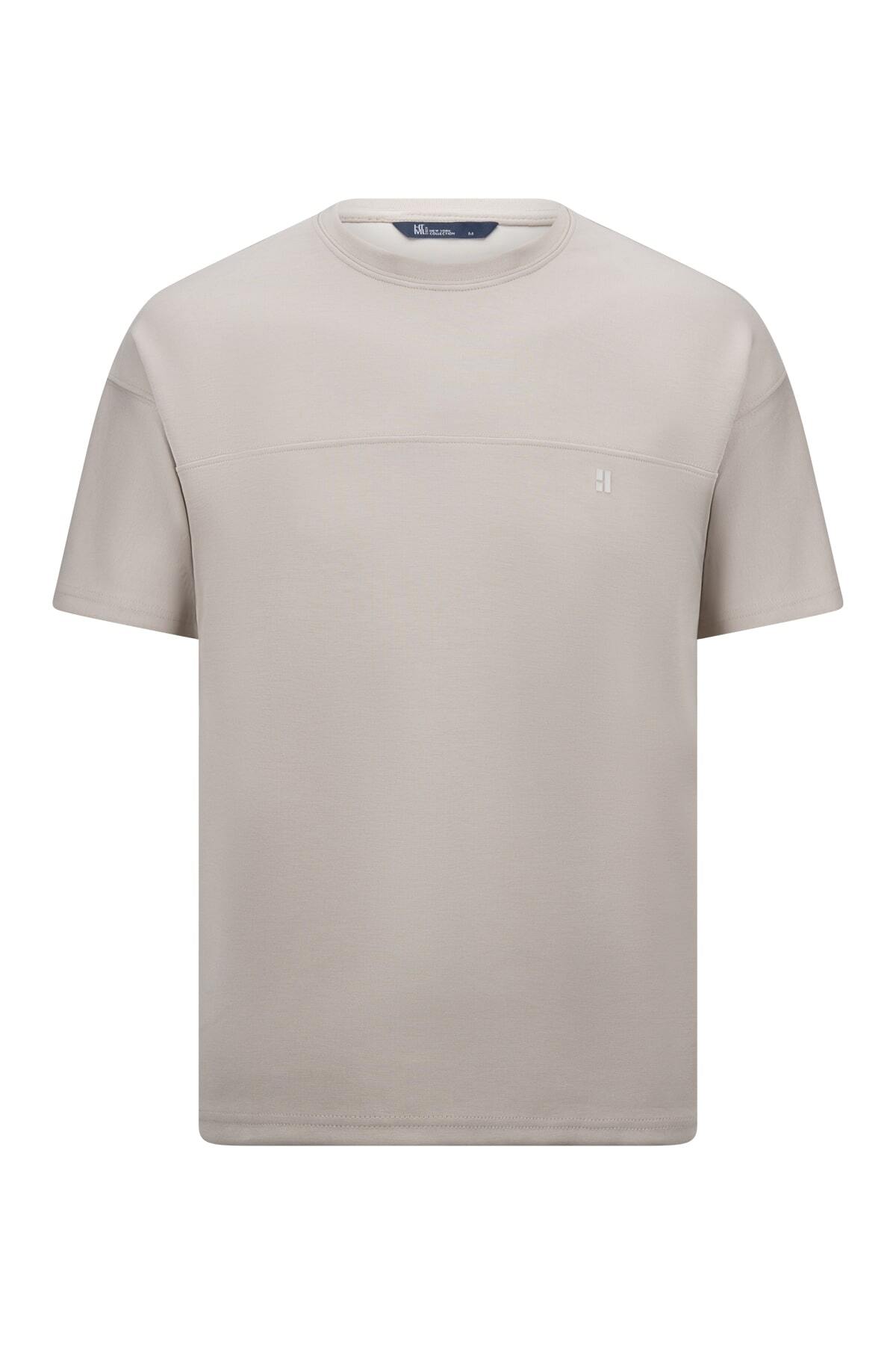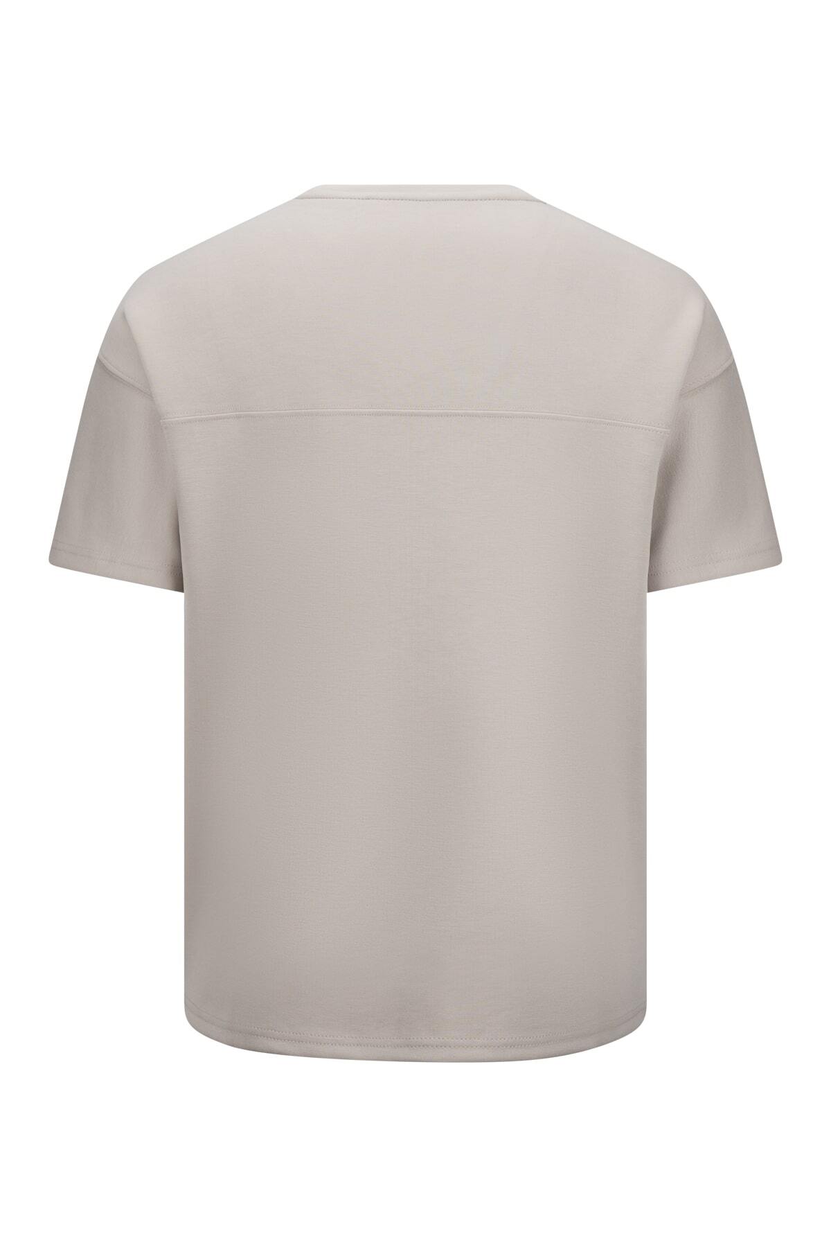 Bej Regular Fit Bisiklet Yaka Oversize Tişört - 2