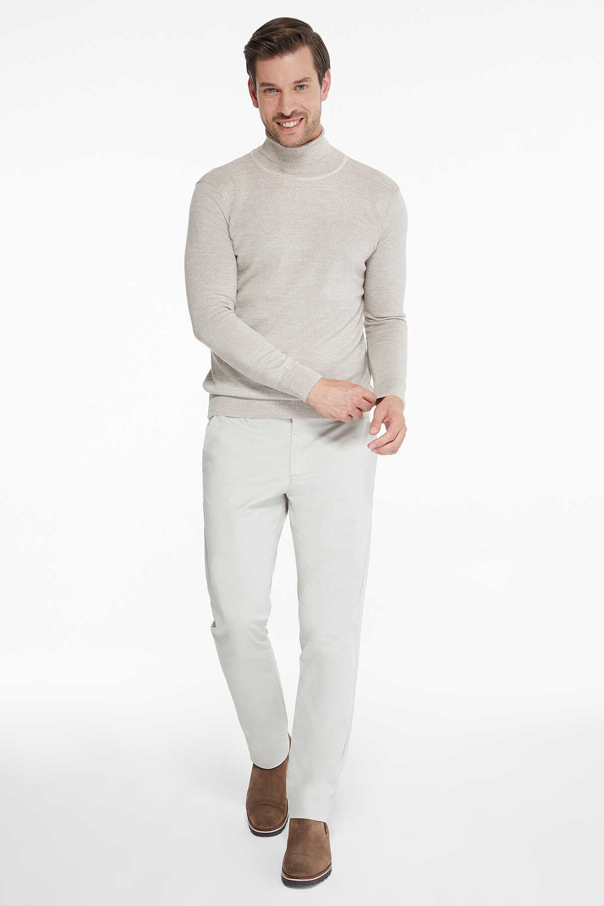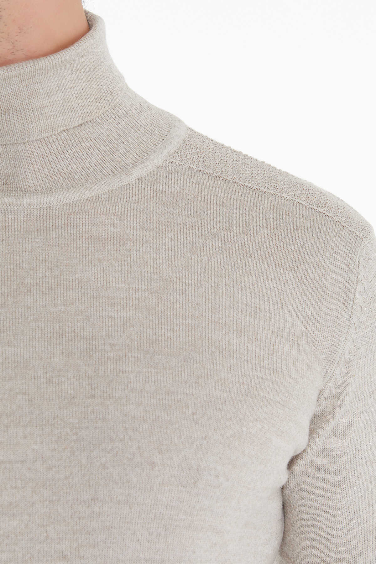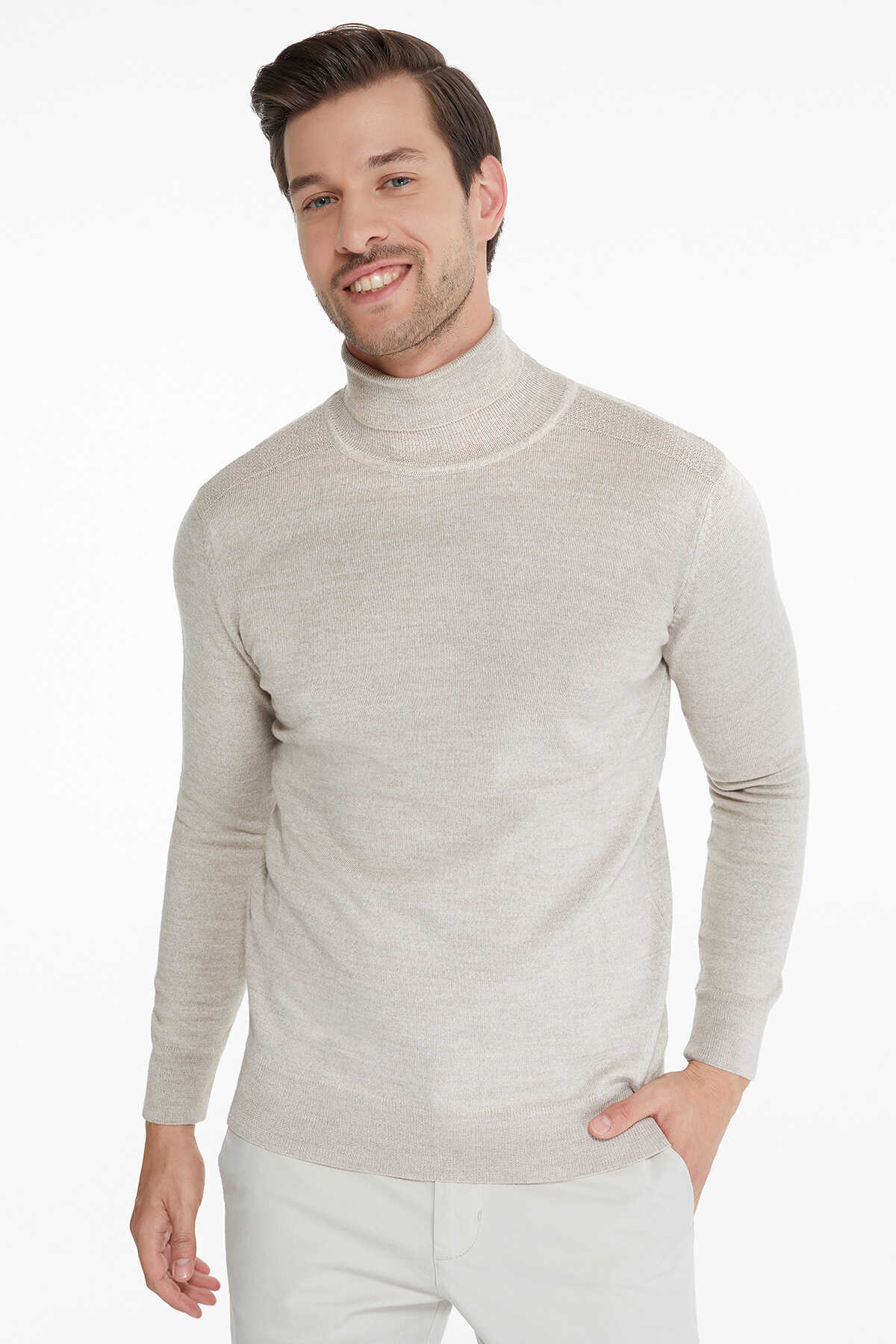 Bej Regular Fit Balıkçı Yaka Triko Yün Kazak
