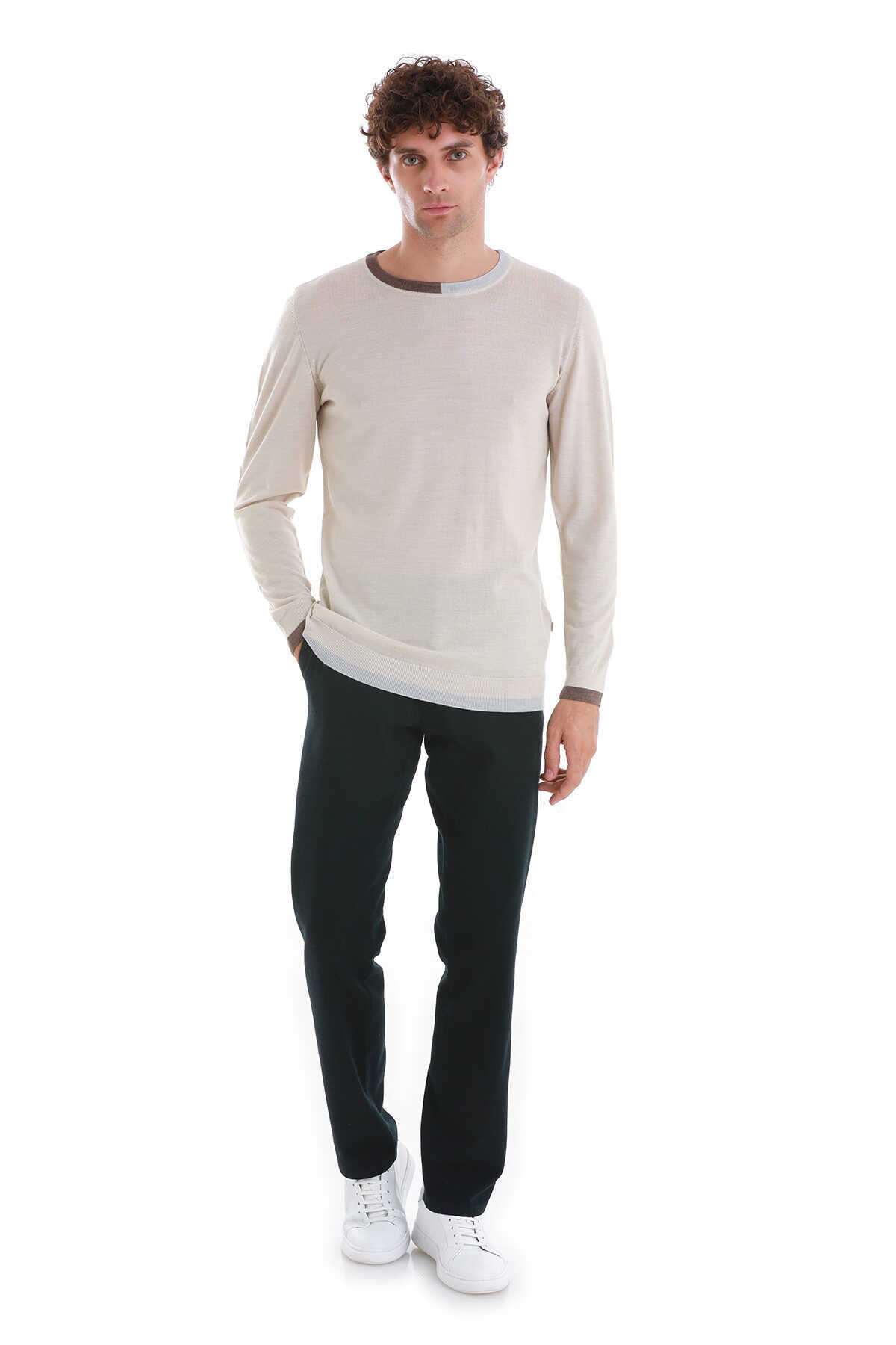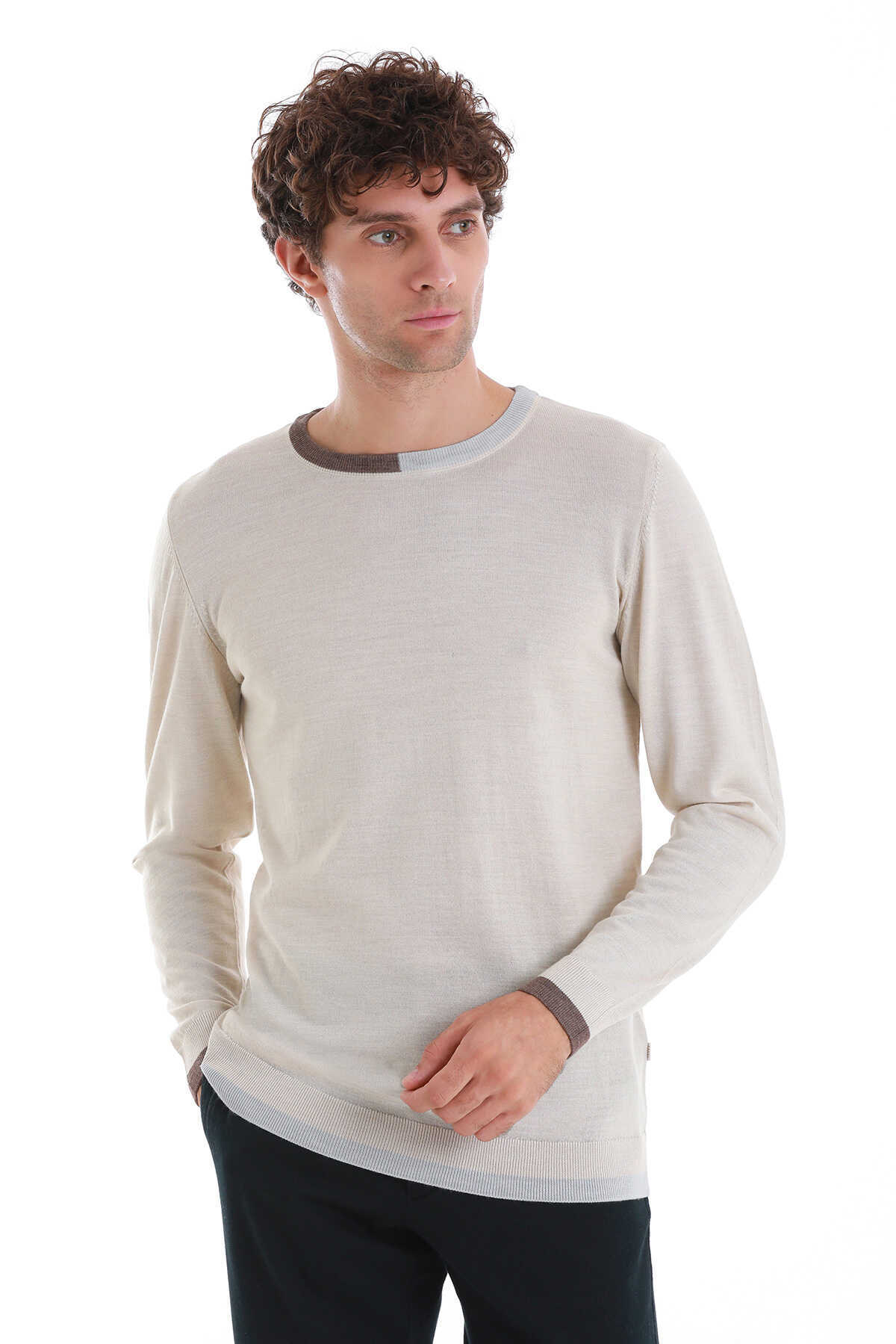 Bej Regular Fit Bisiklet Yaka Yünlü Triko Kazak