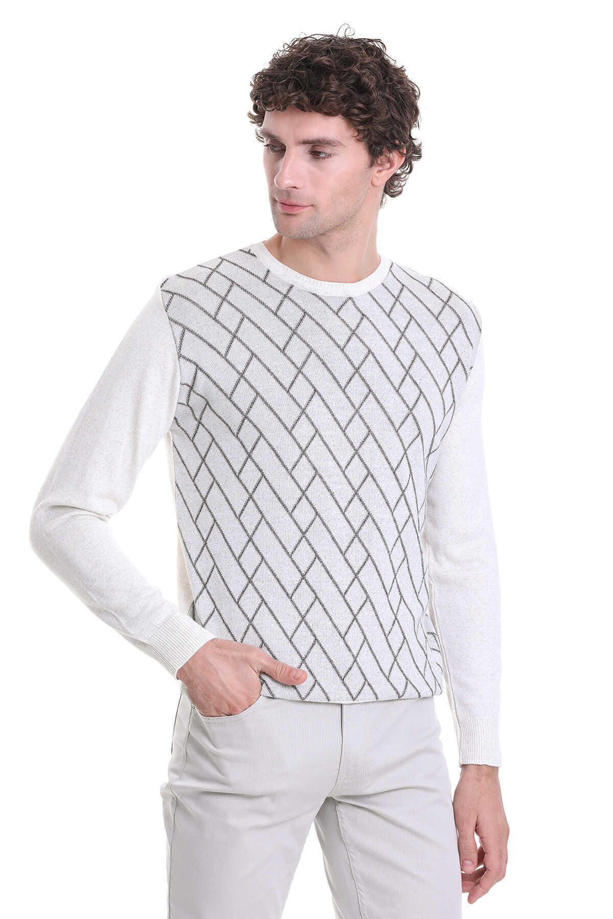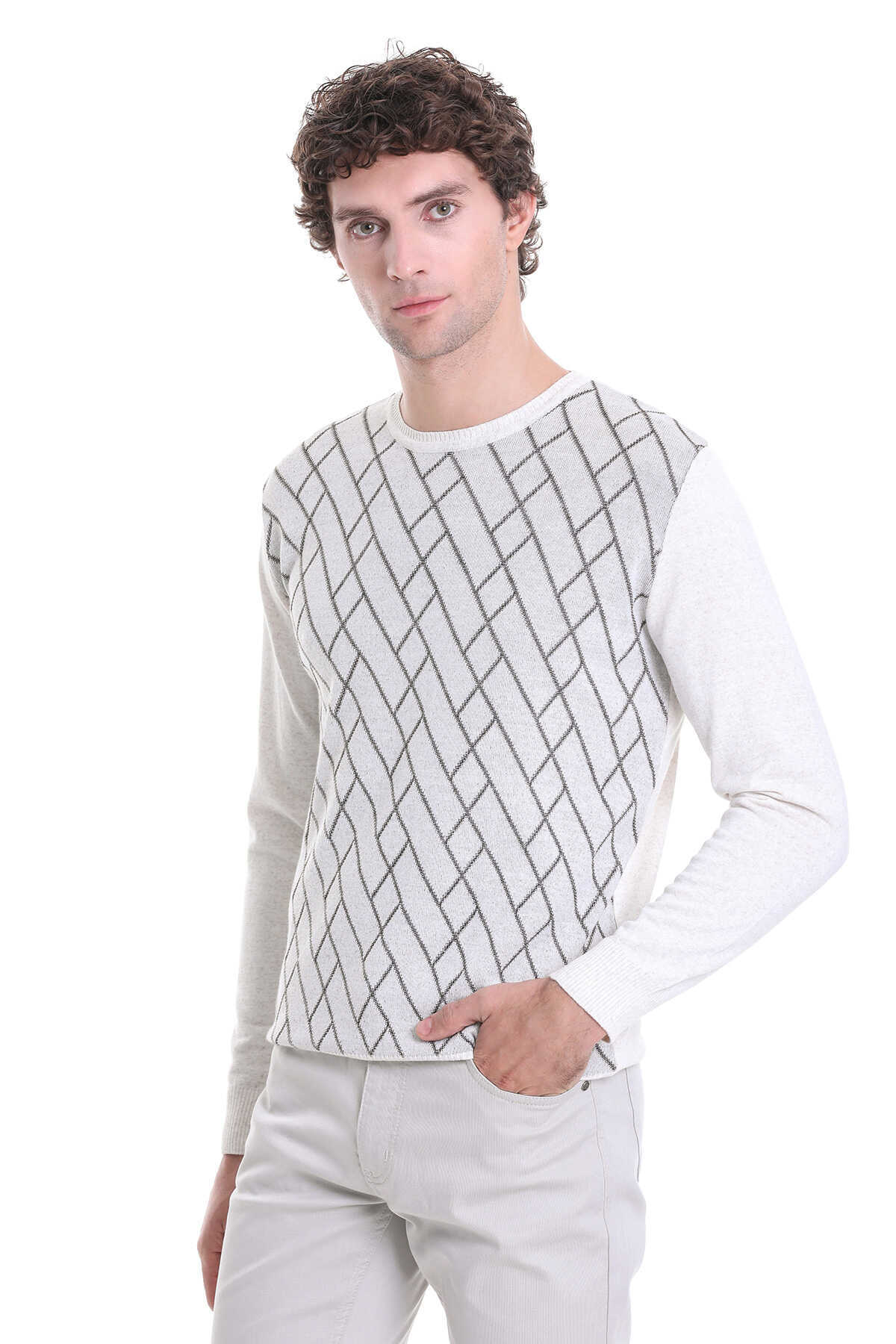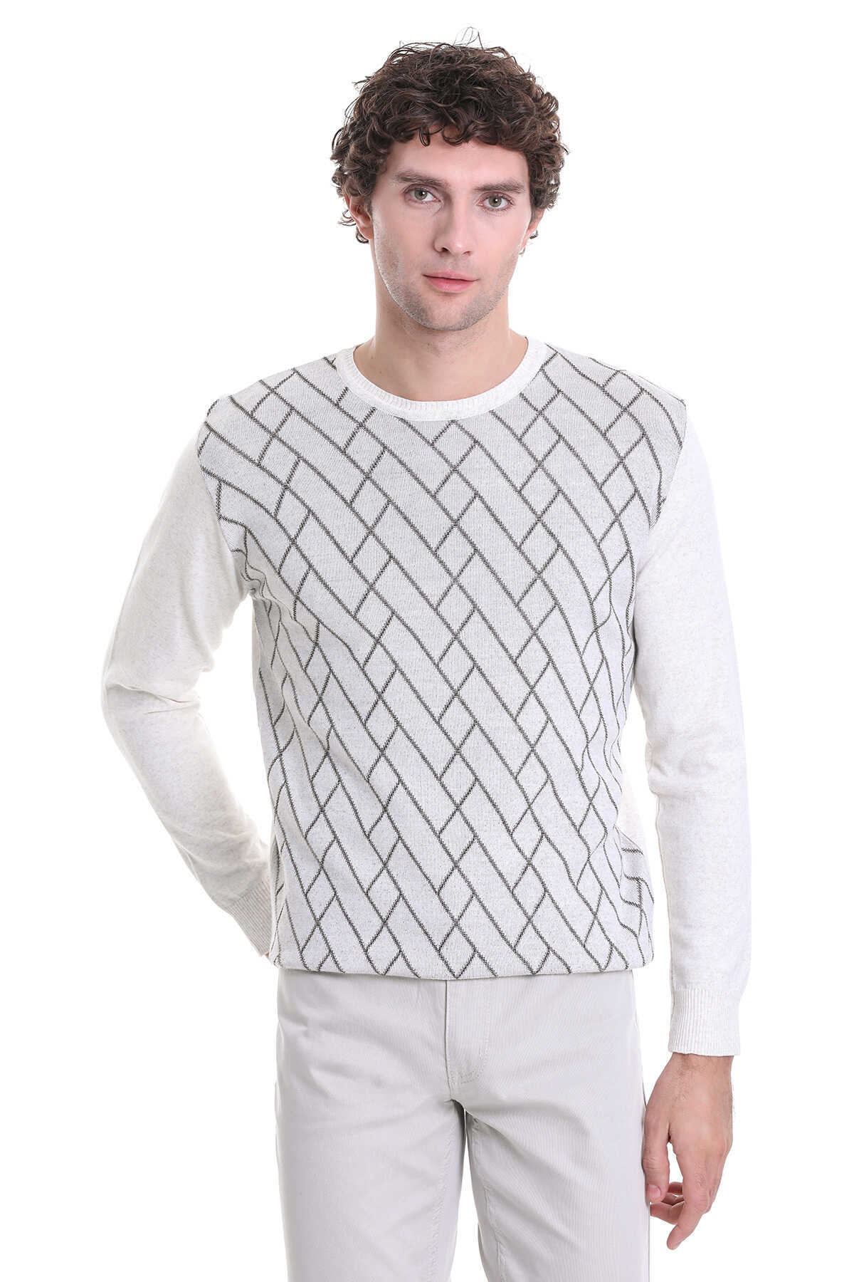 Bej Regular Fit Jakarlı Bisiklet Yaka Yünlü Triko Kazak
