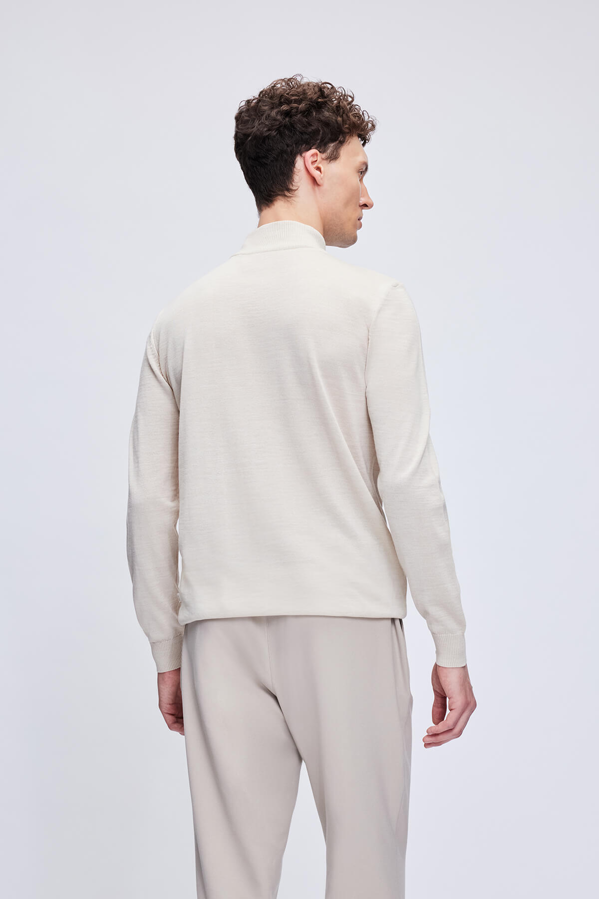 Bej Regular Fit Jakarlı Yarım Balıkçı Yaka Yünlü Triko Kazak - 5