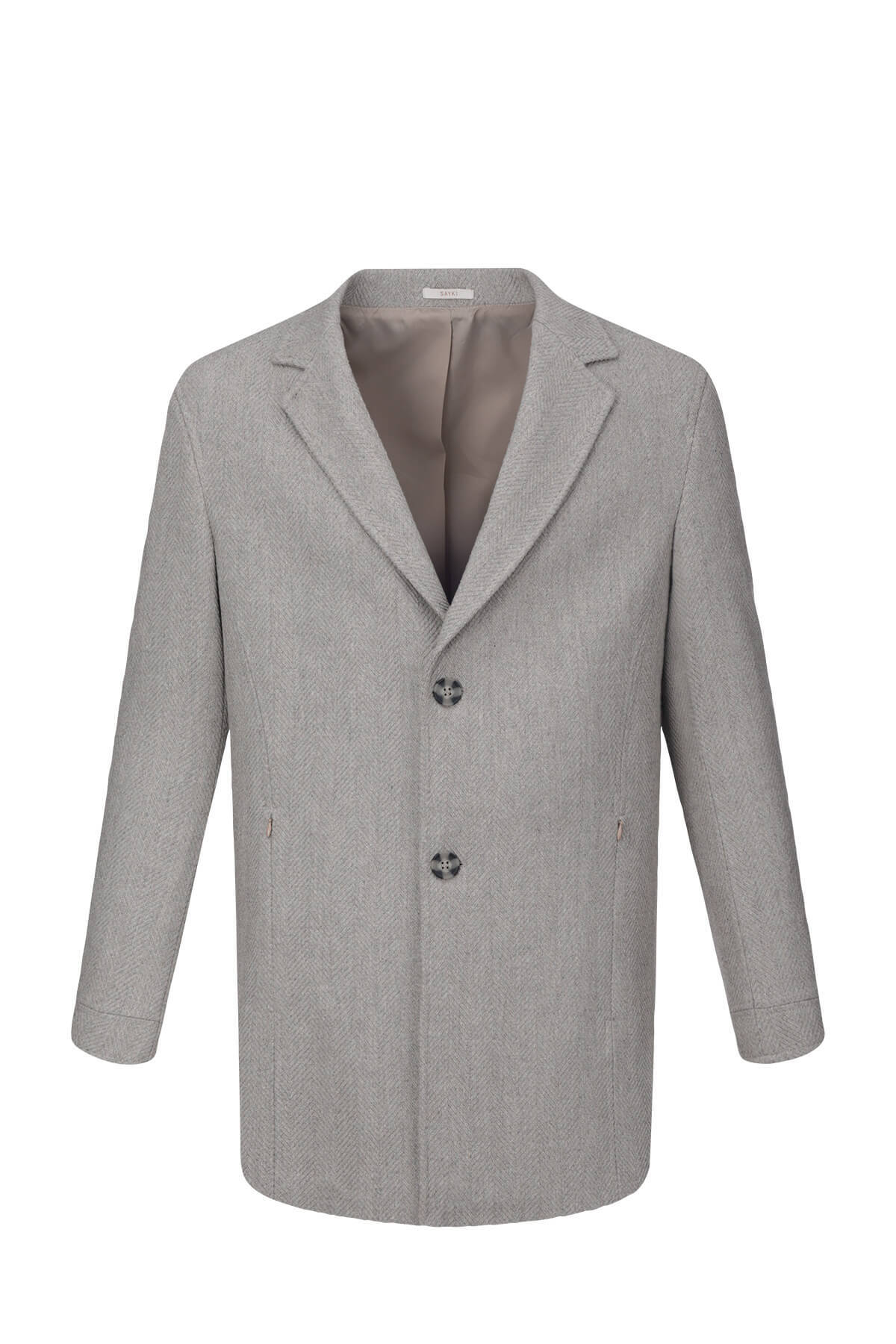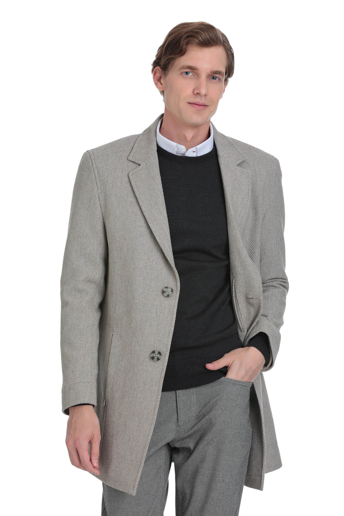 Bej Slim Fit Ceket Yaka Yünlü Kaşe Palto