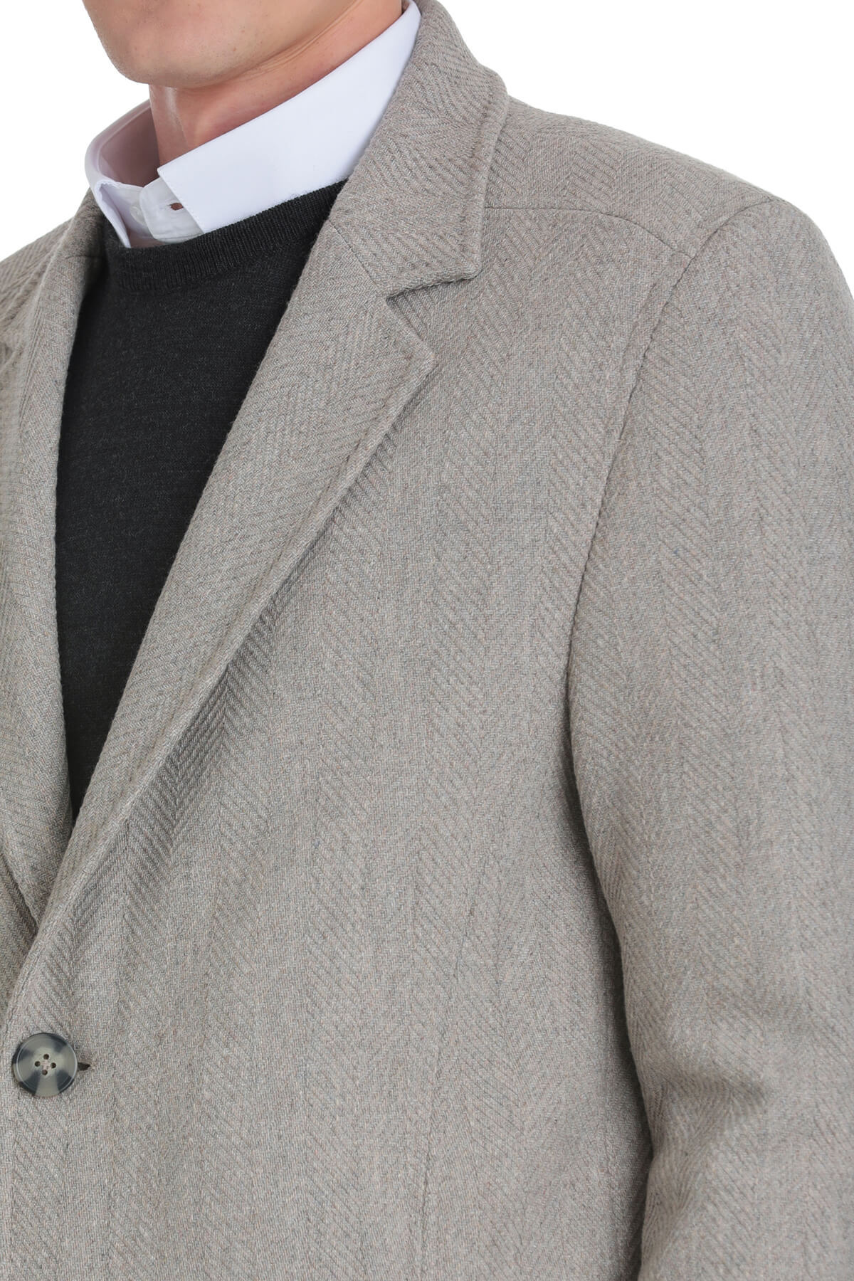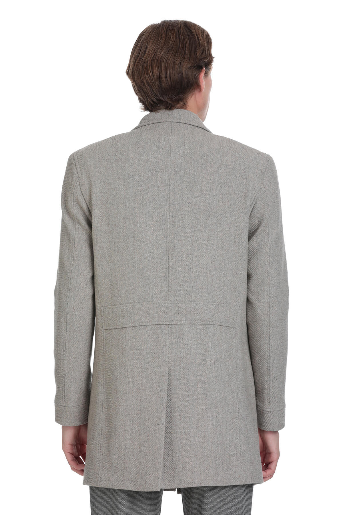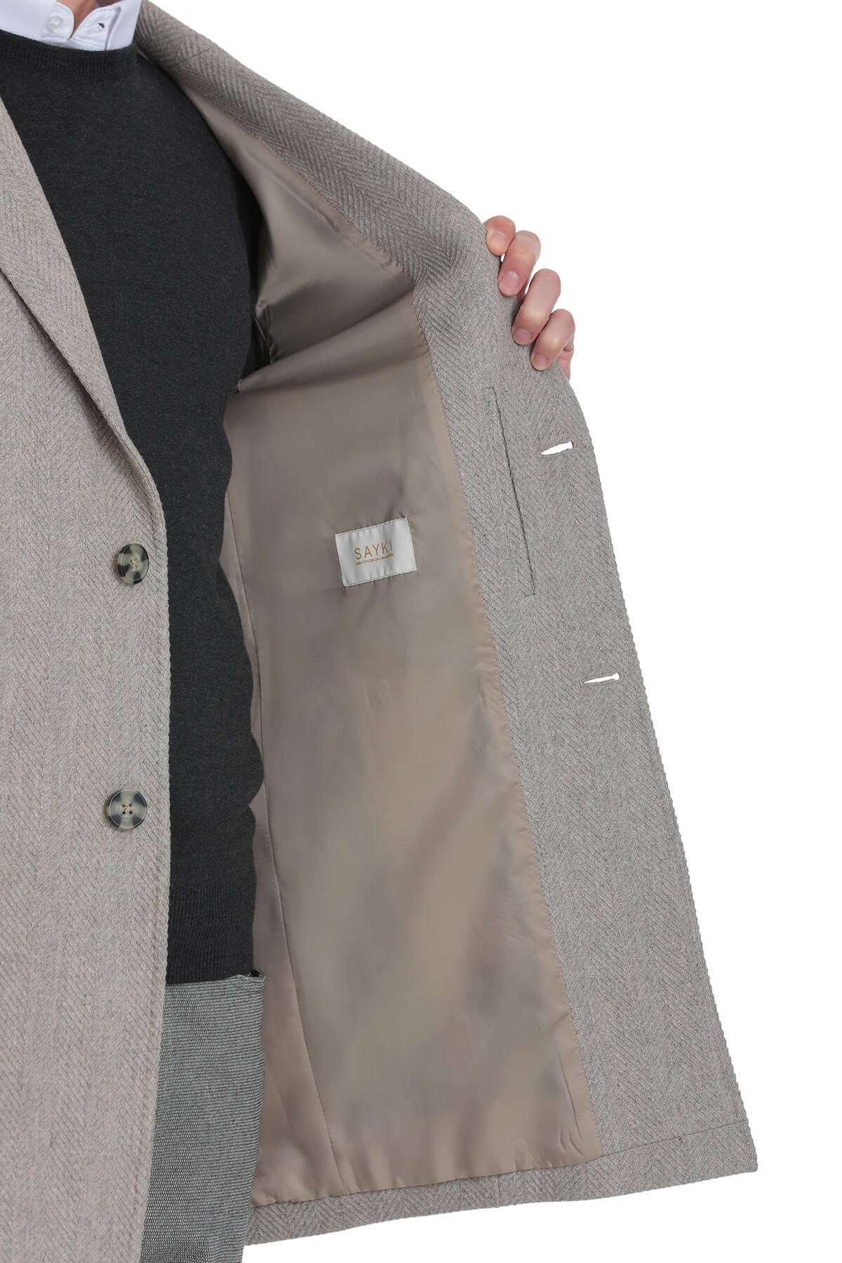 Bej Slim Fit Ceket Yaka Yünlü Kaşe Palto - 10