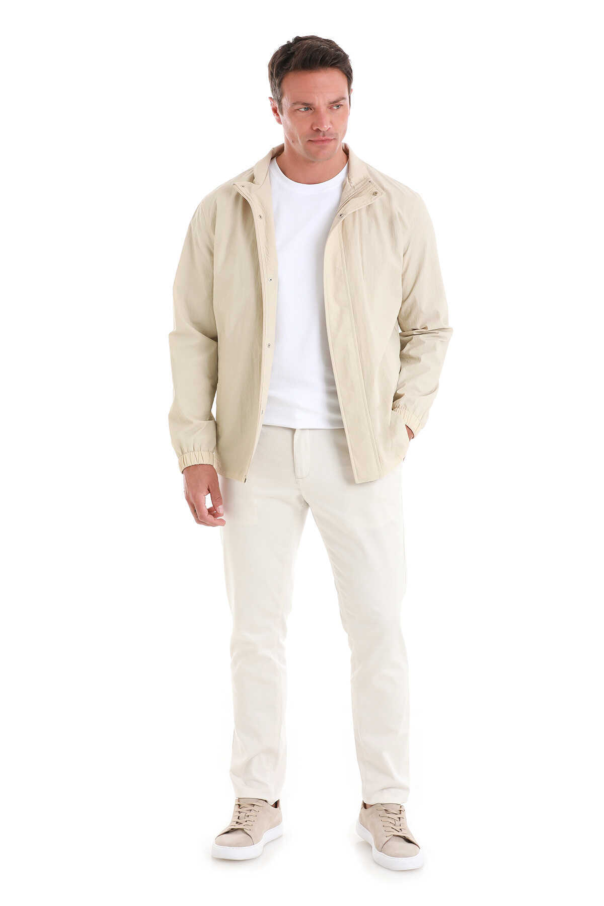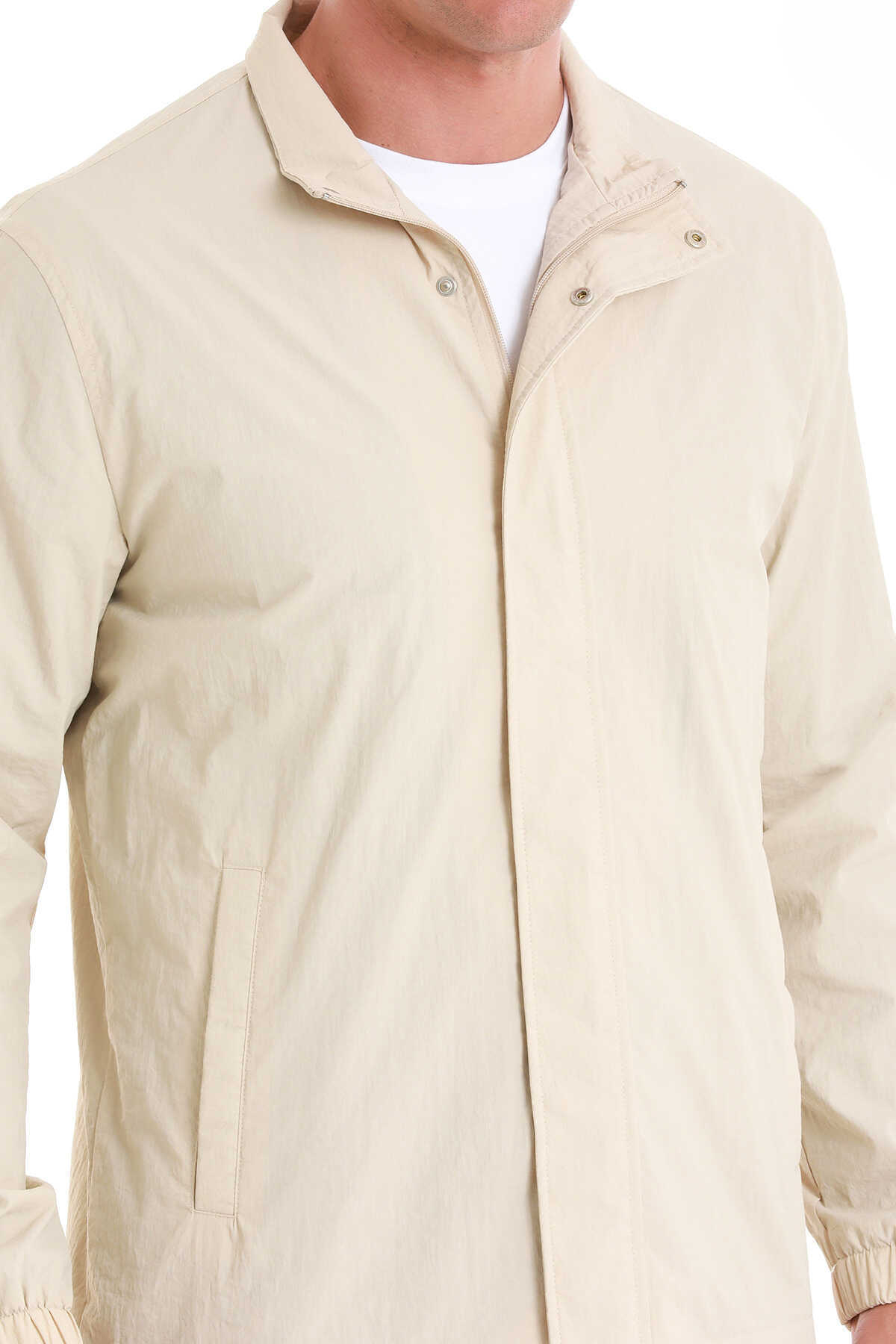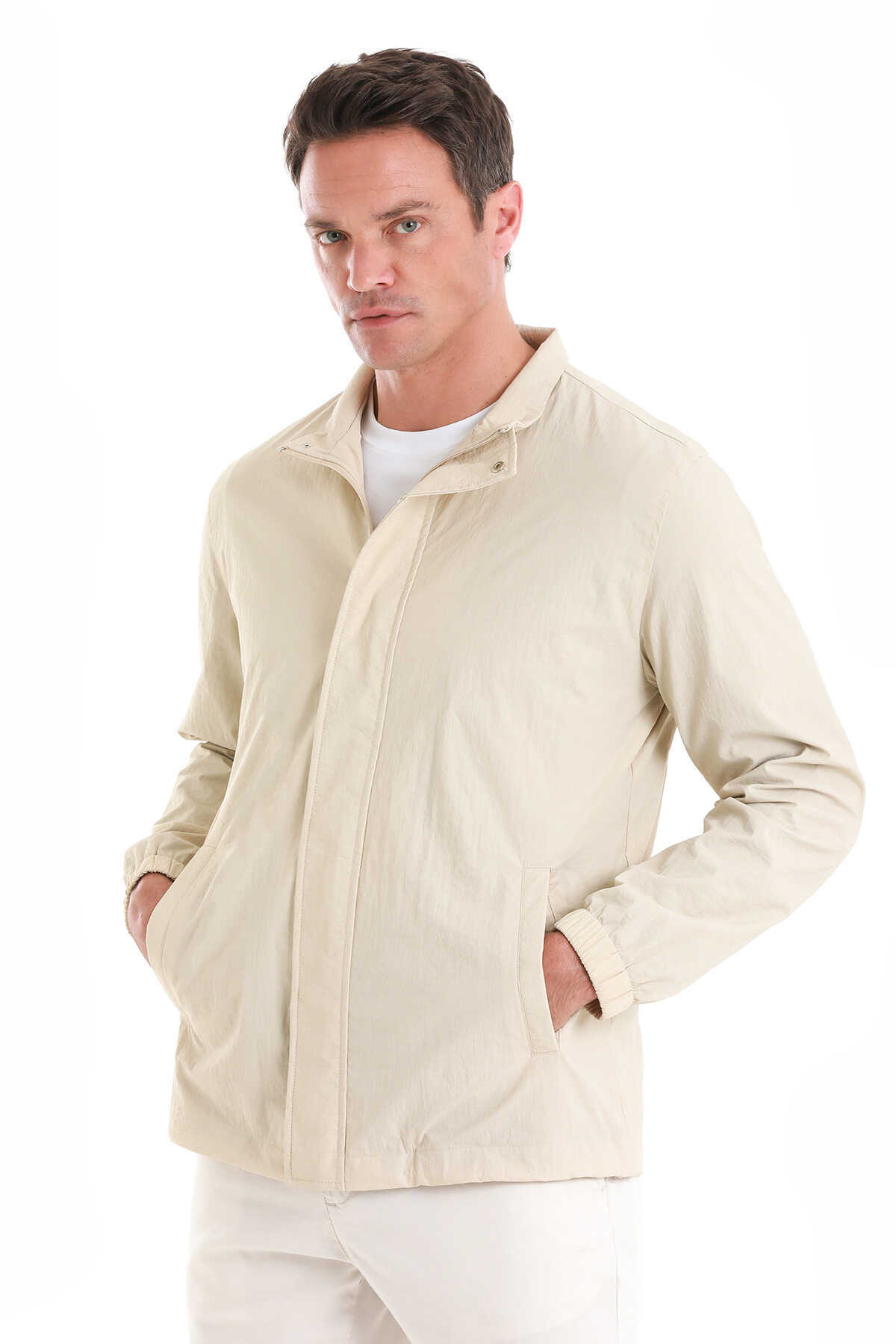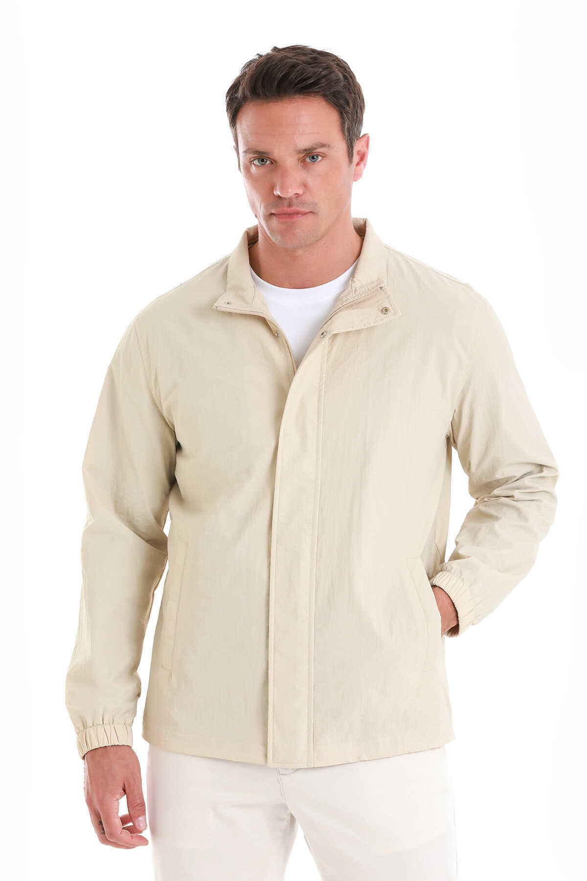 Bej Slim Fit Düz Dik Yaka Mevsimlik Mont - 8